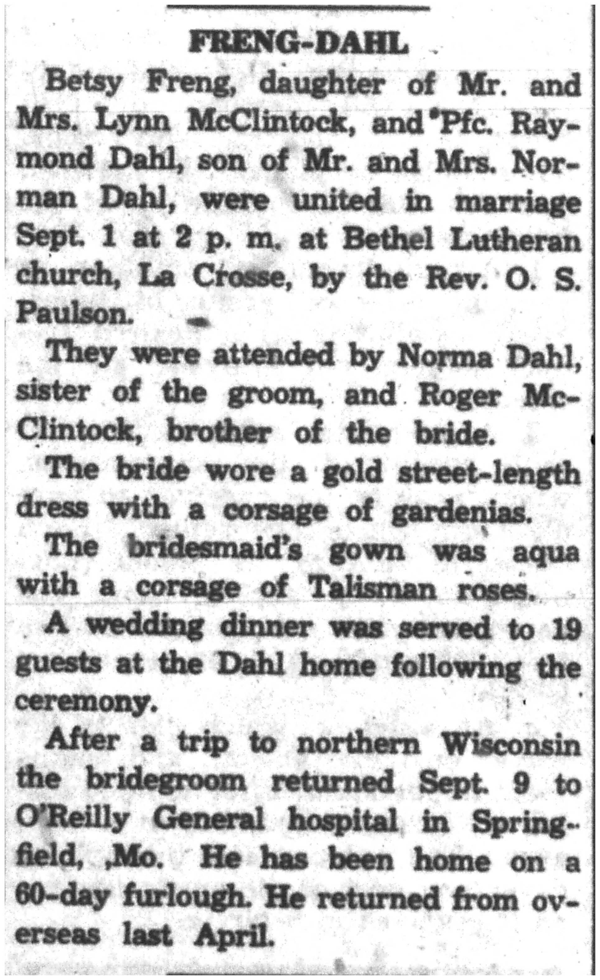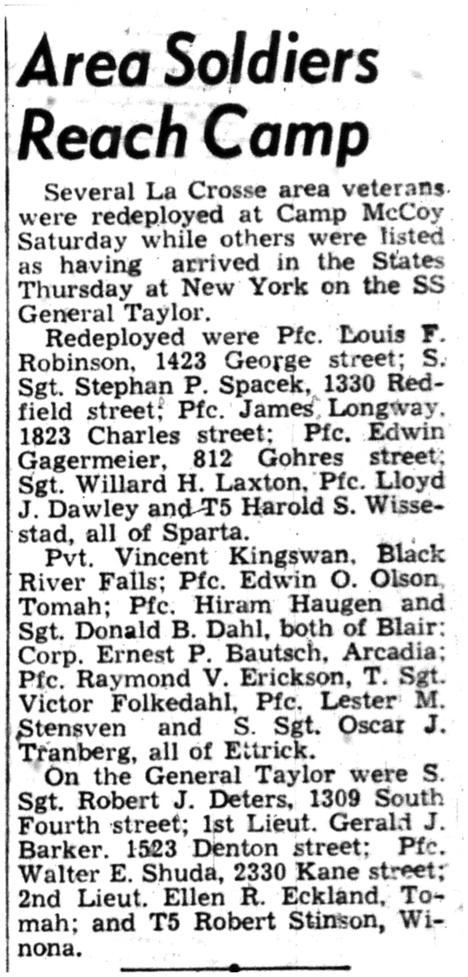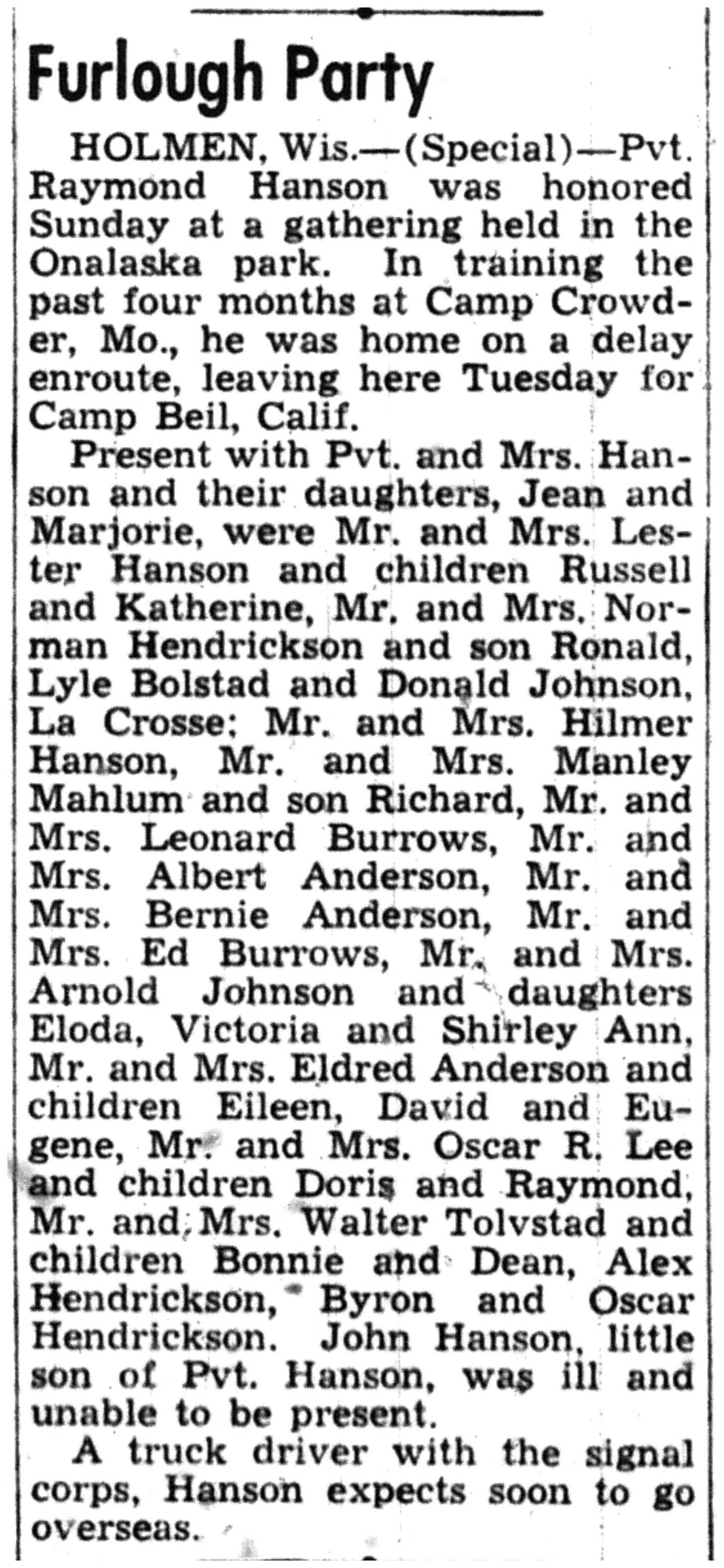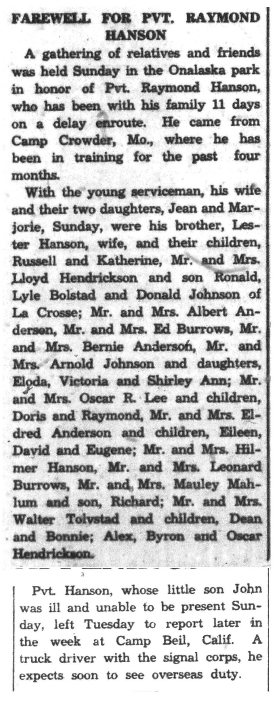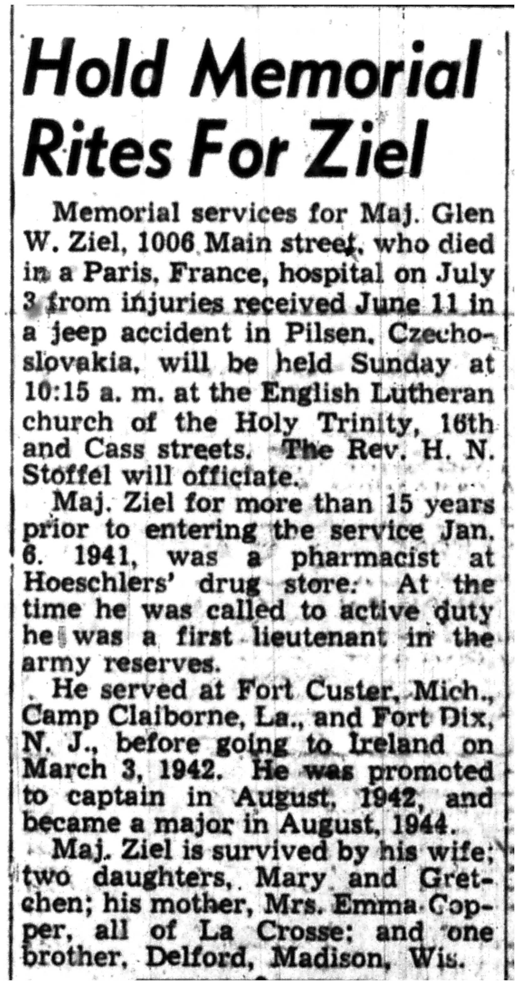 | 1945-9-7 | La Crosse Tribune p8 | |