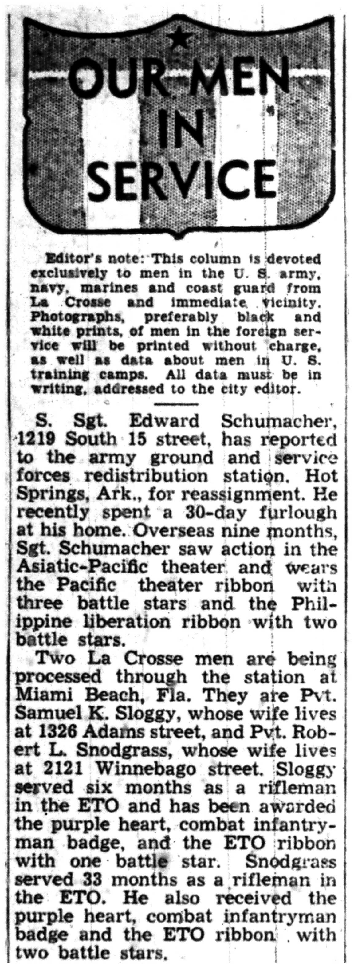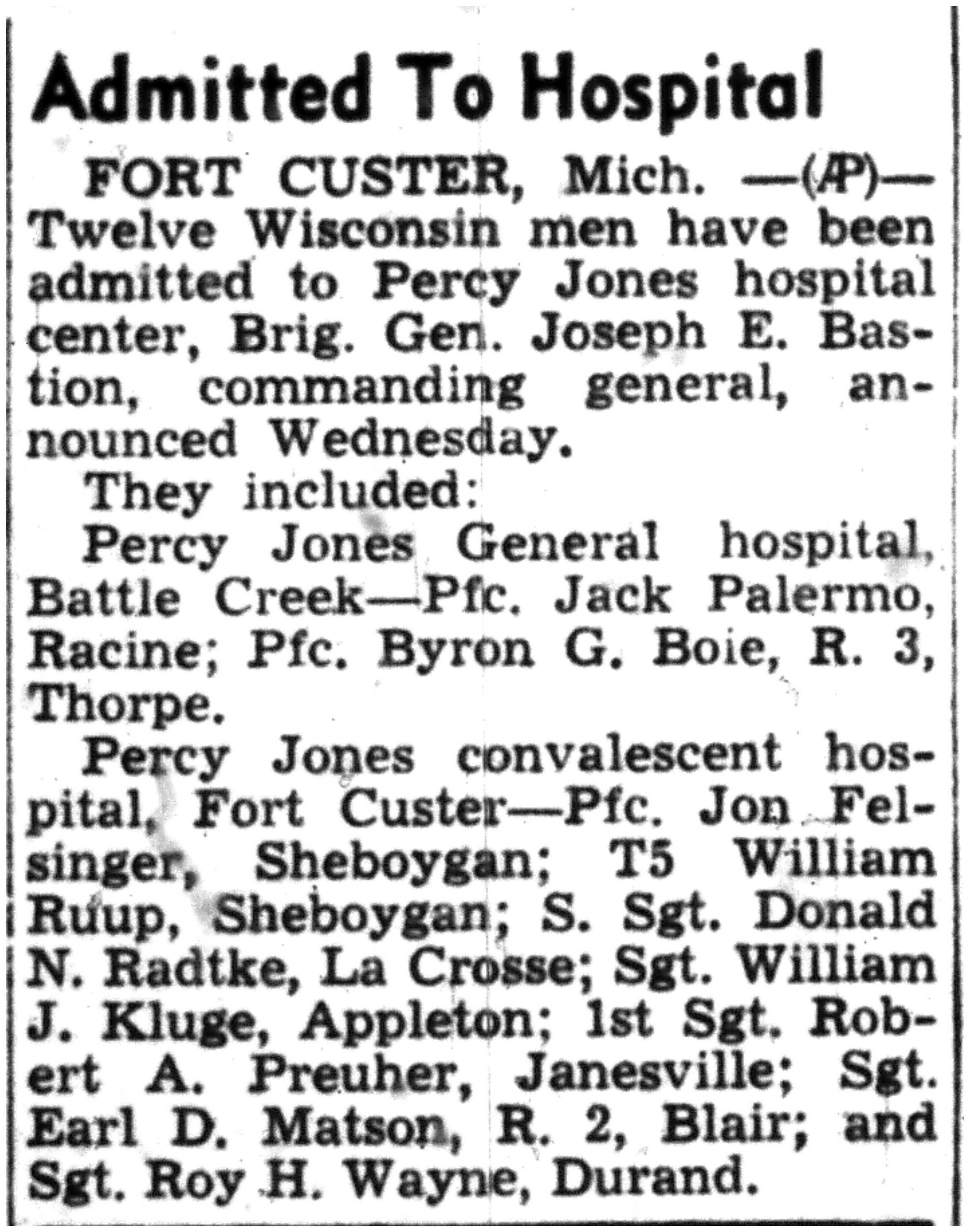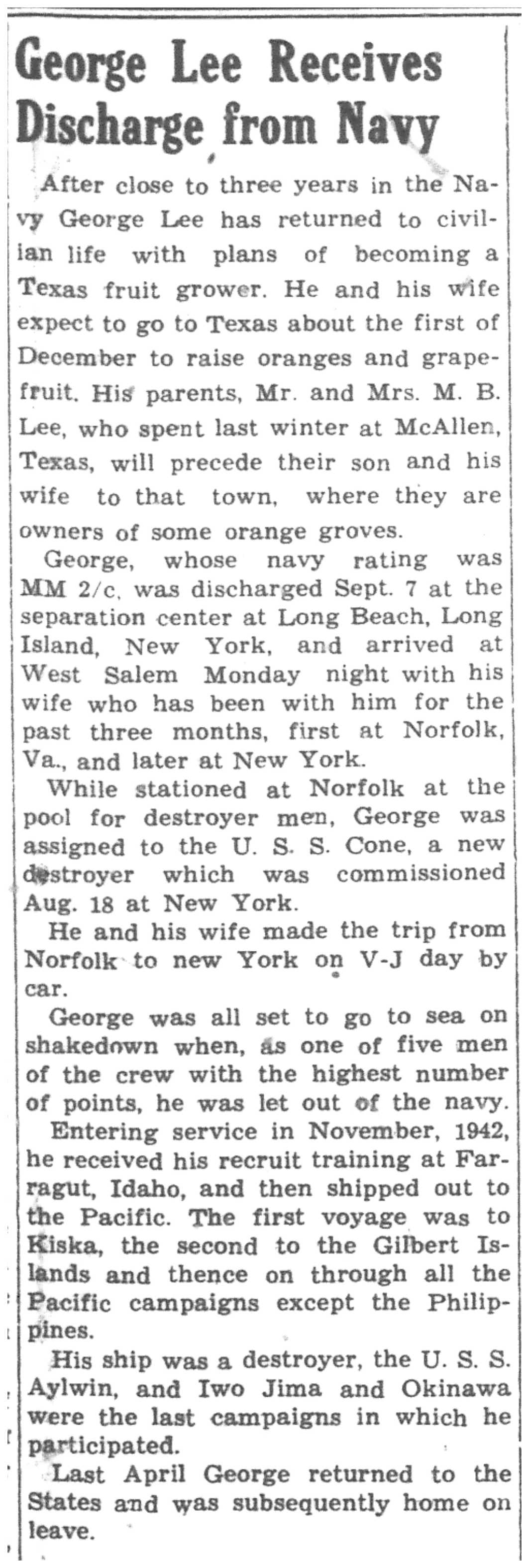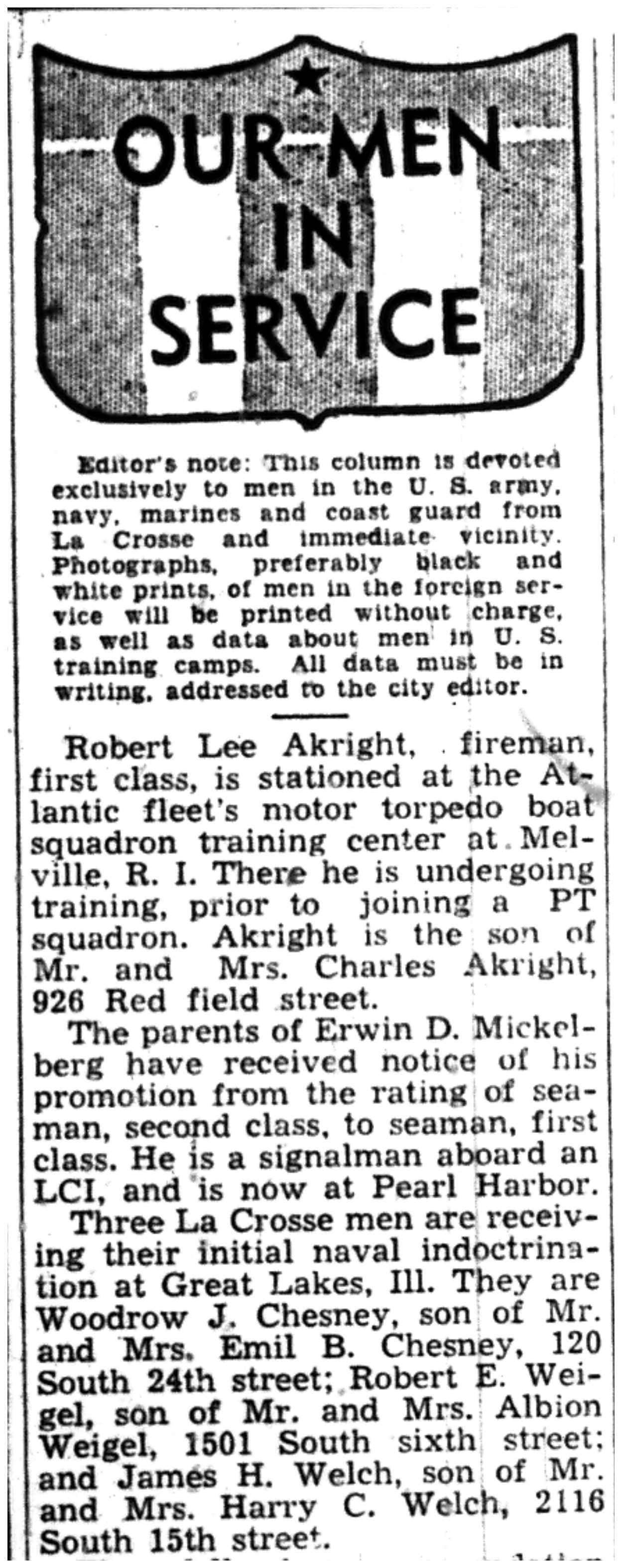 | 1945-9-7 | La Crosse Tribune p8 | |