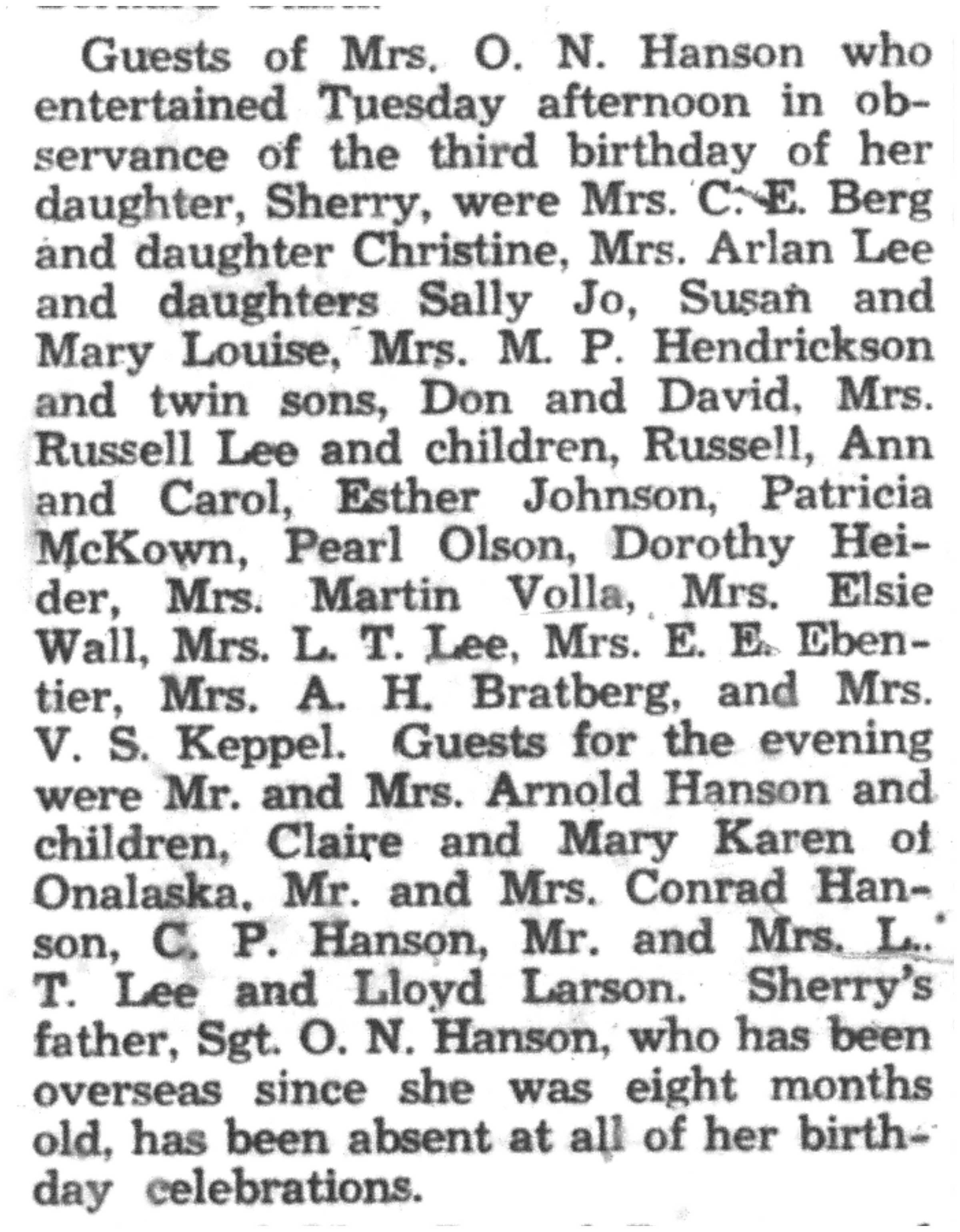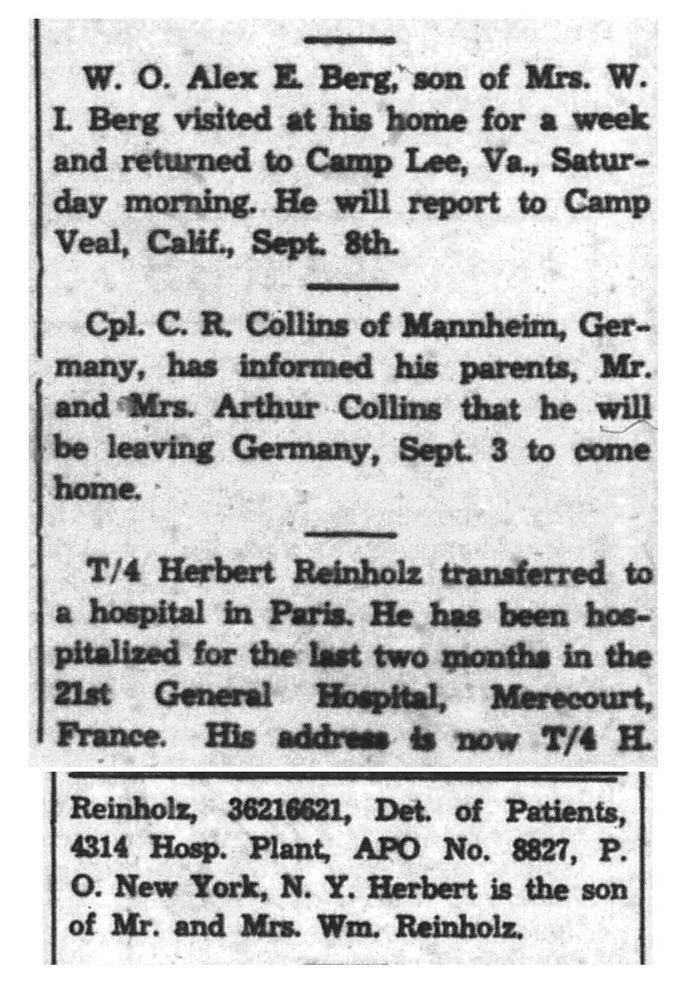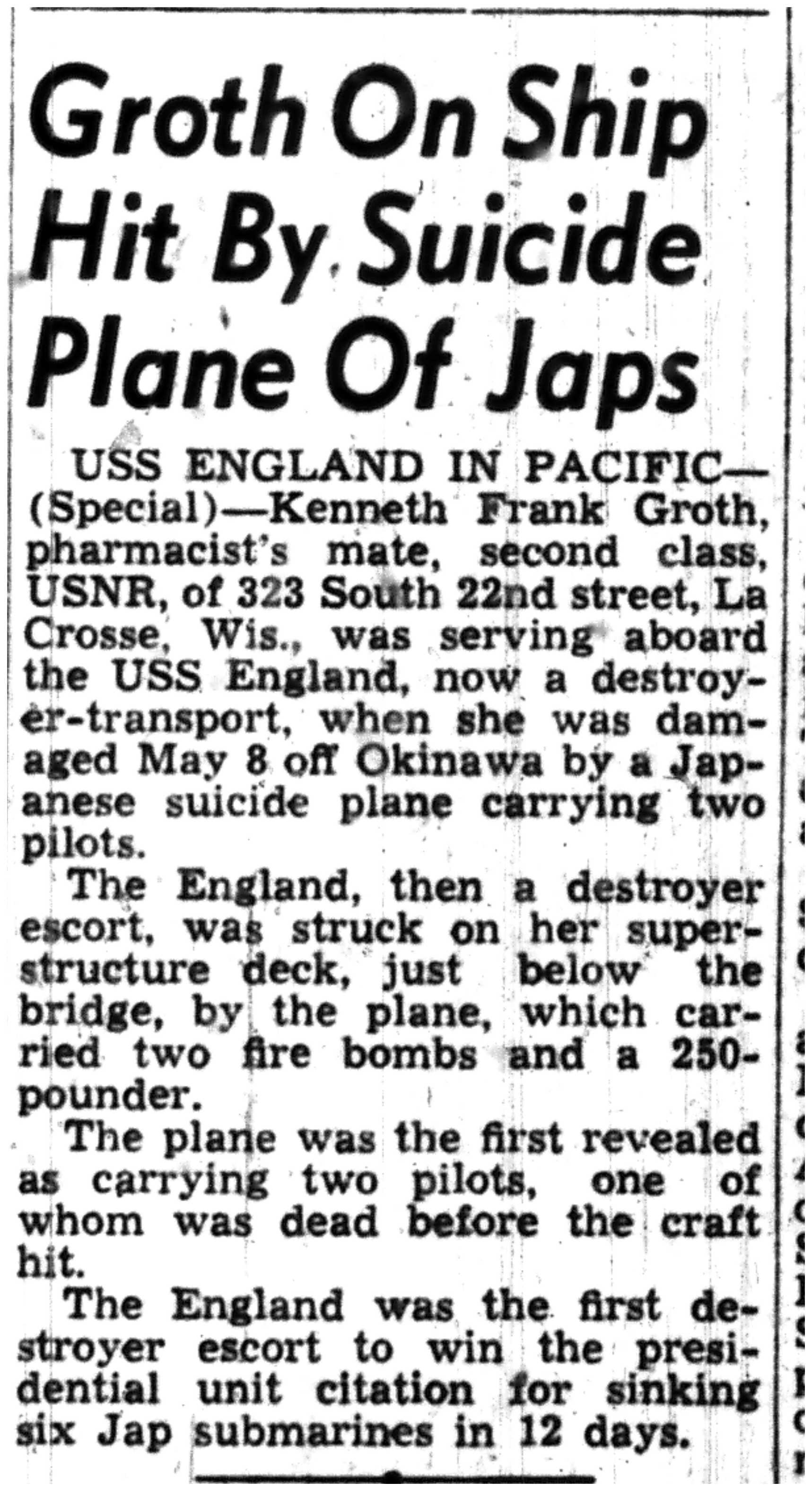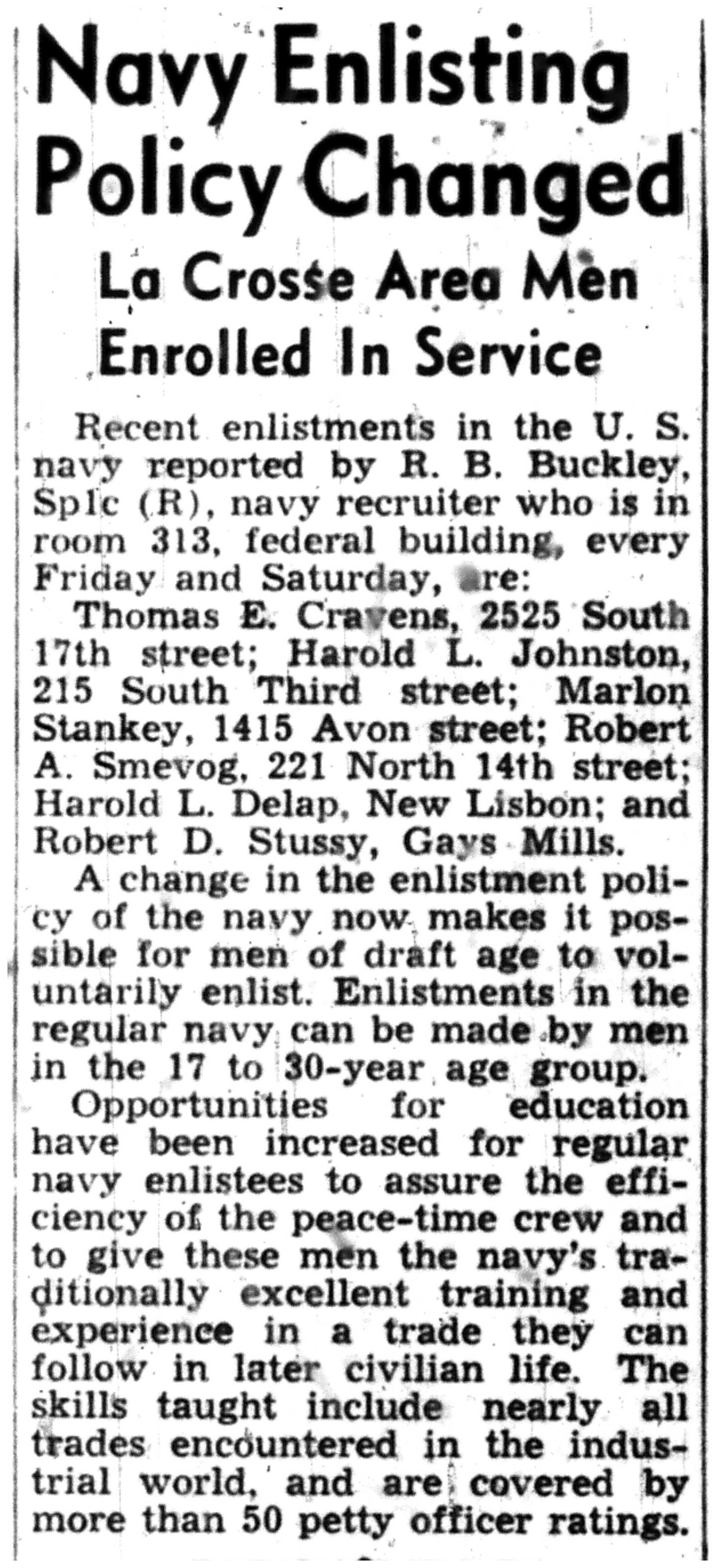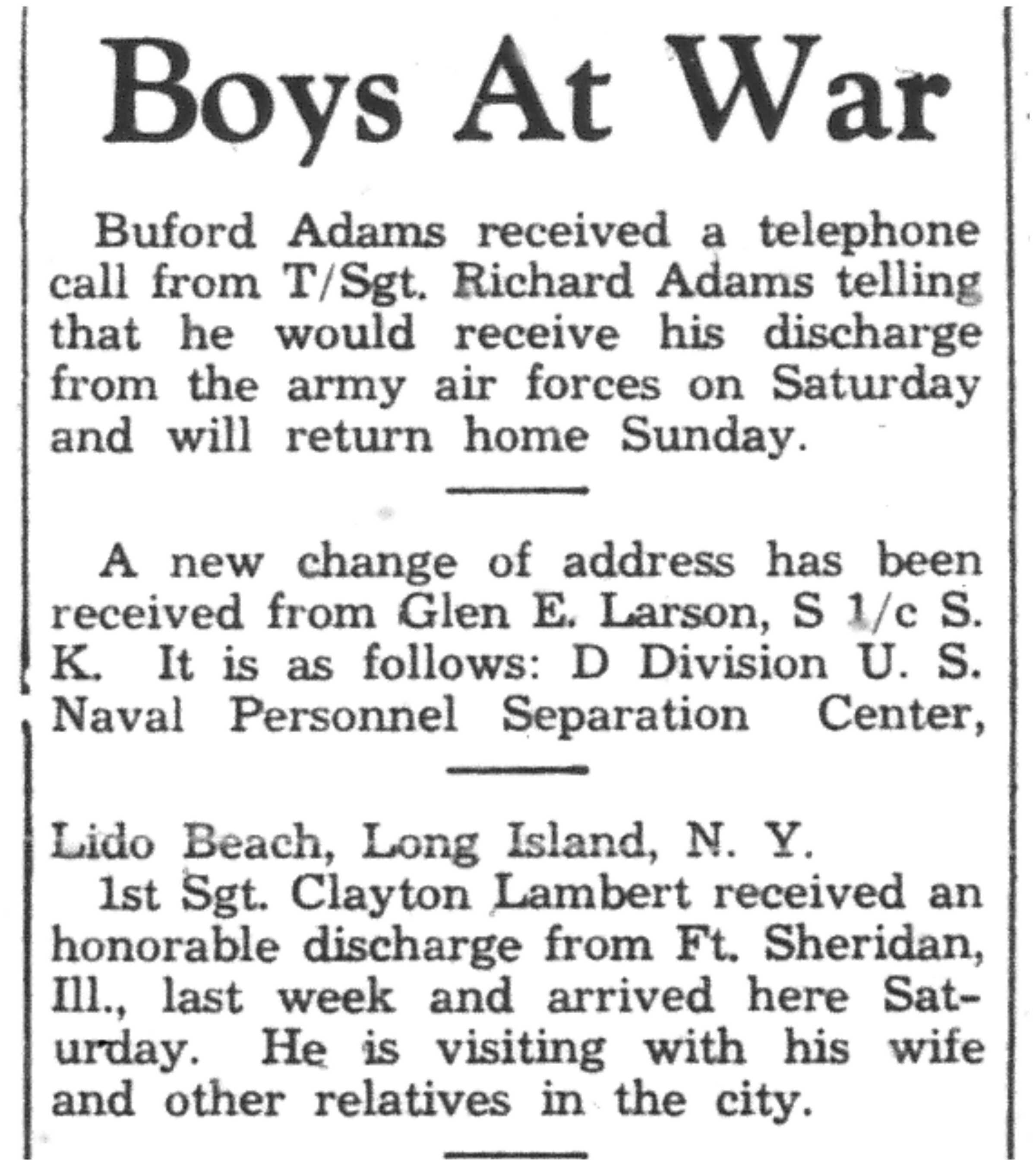 | 1945-9-7 | La Crosse Tribune p8 | |