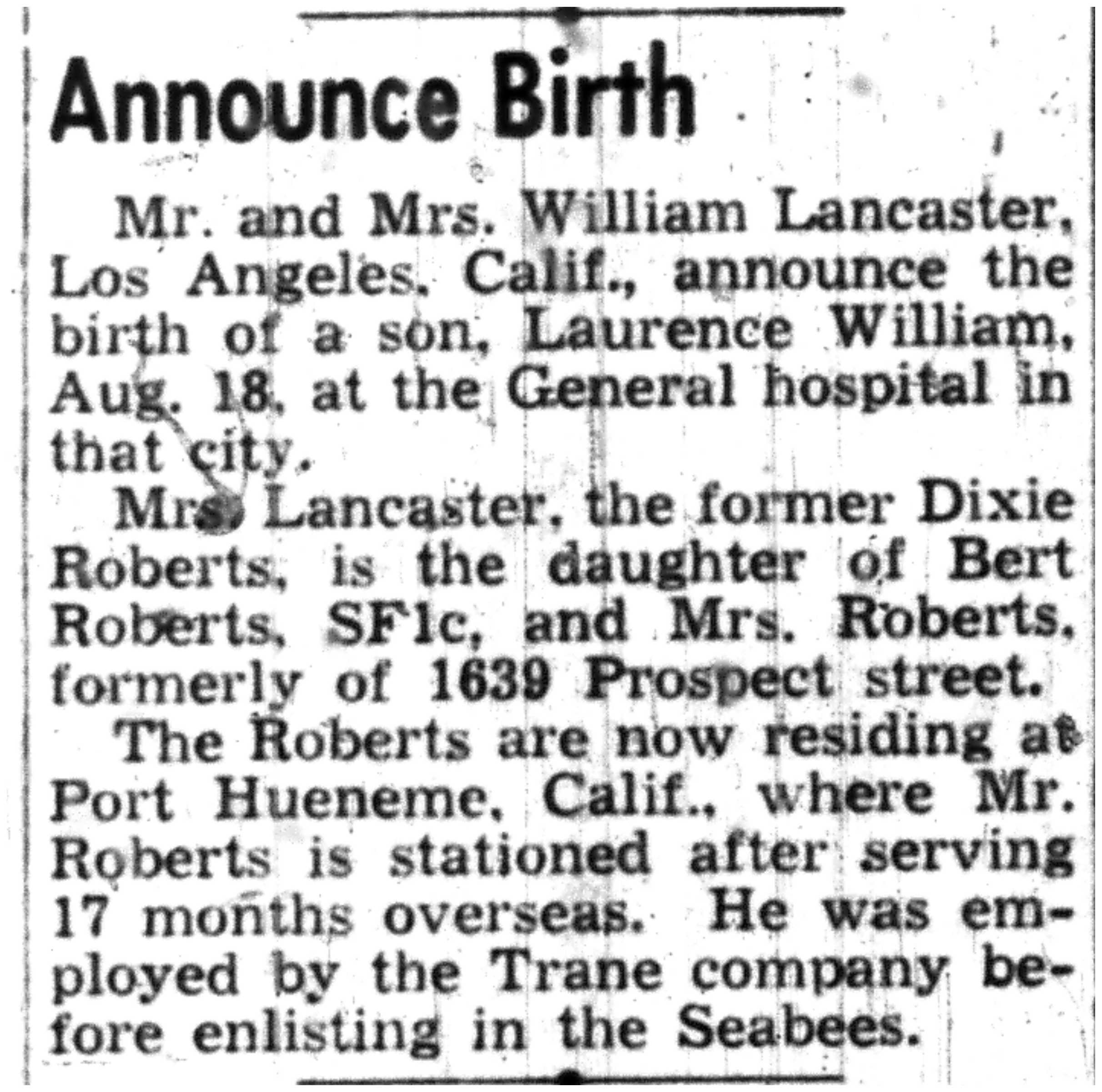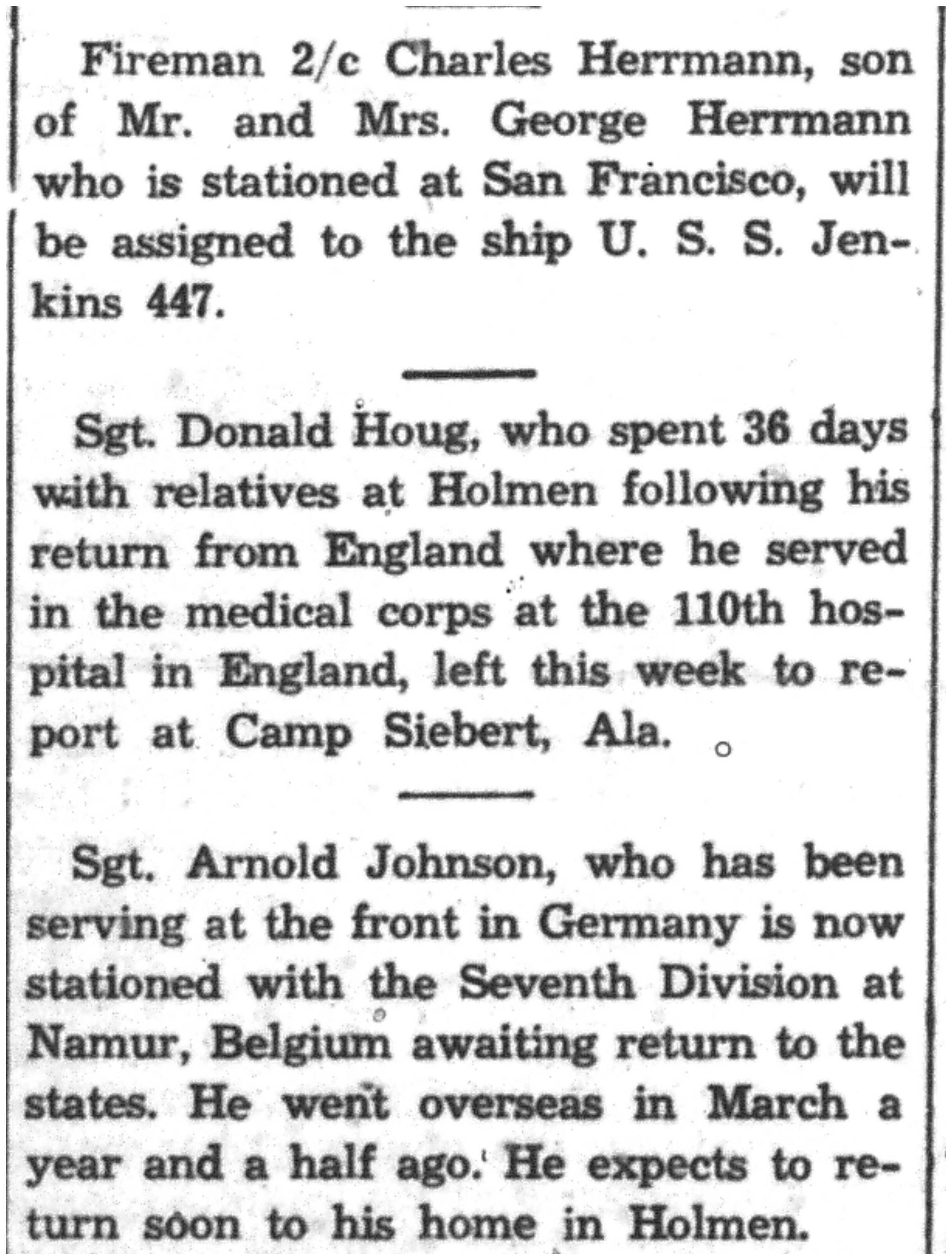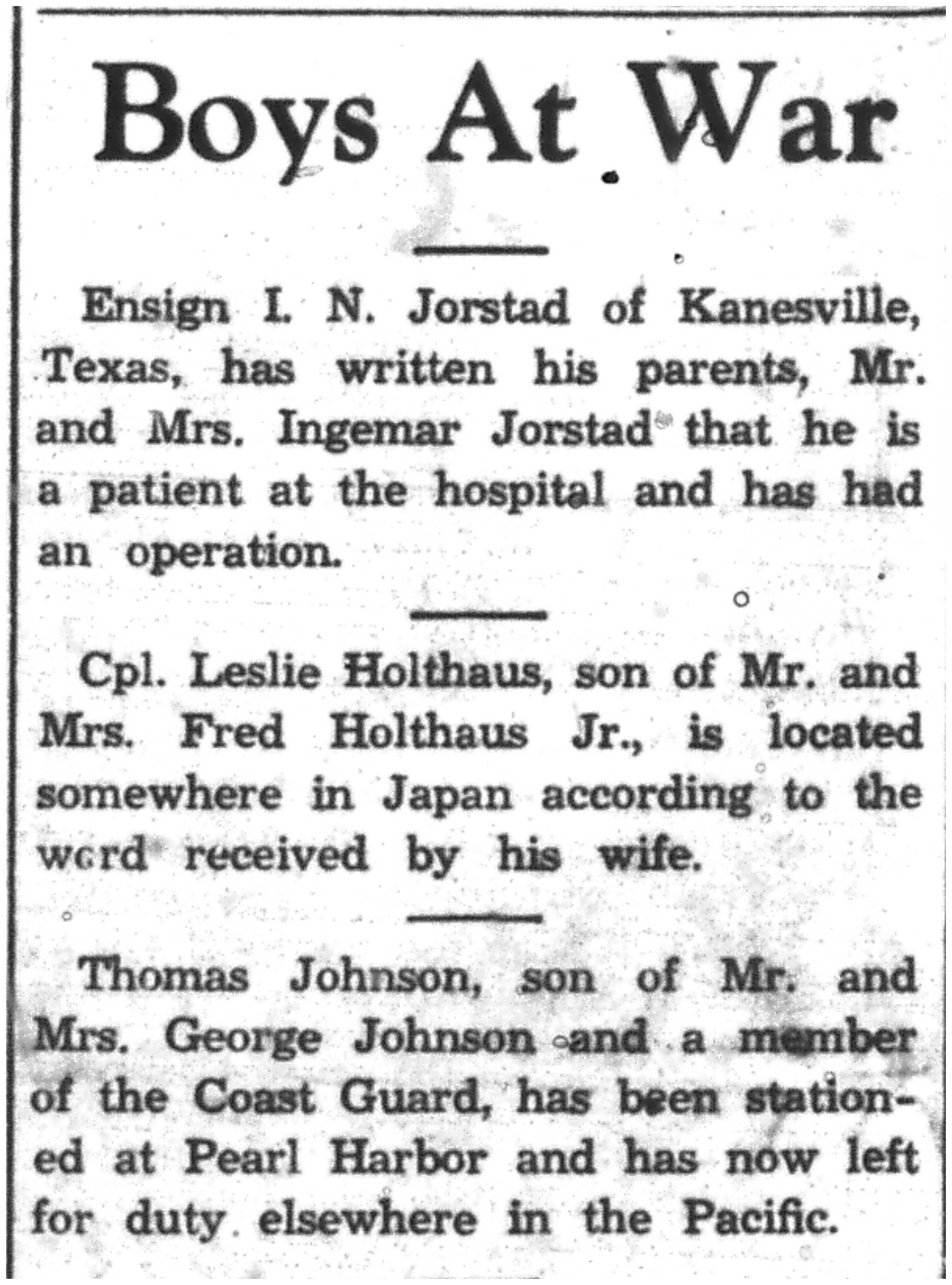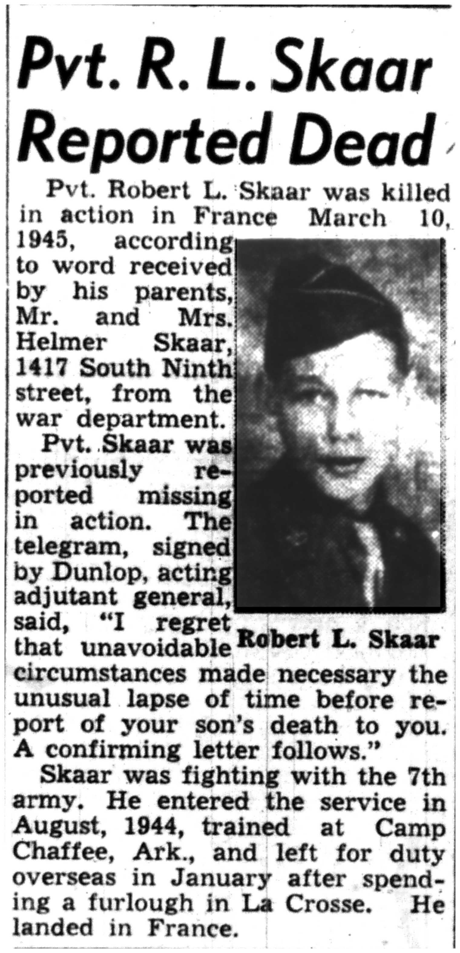 | 1945-9-7 | La Crosse Tribune p8 | |
