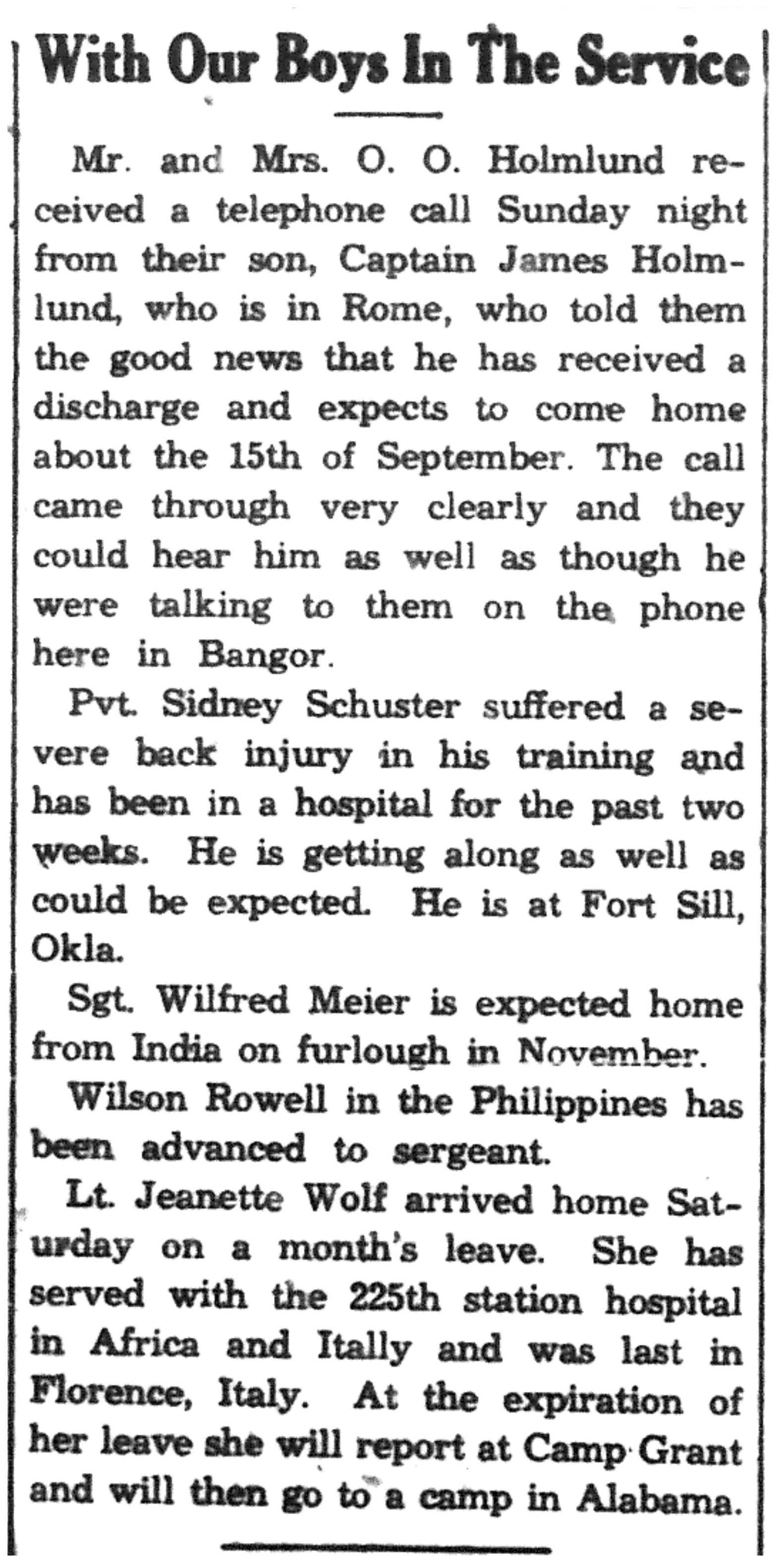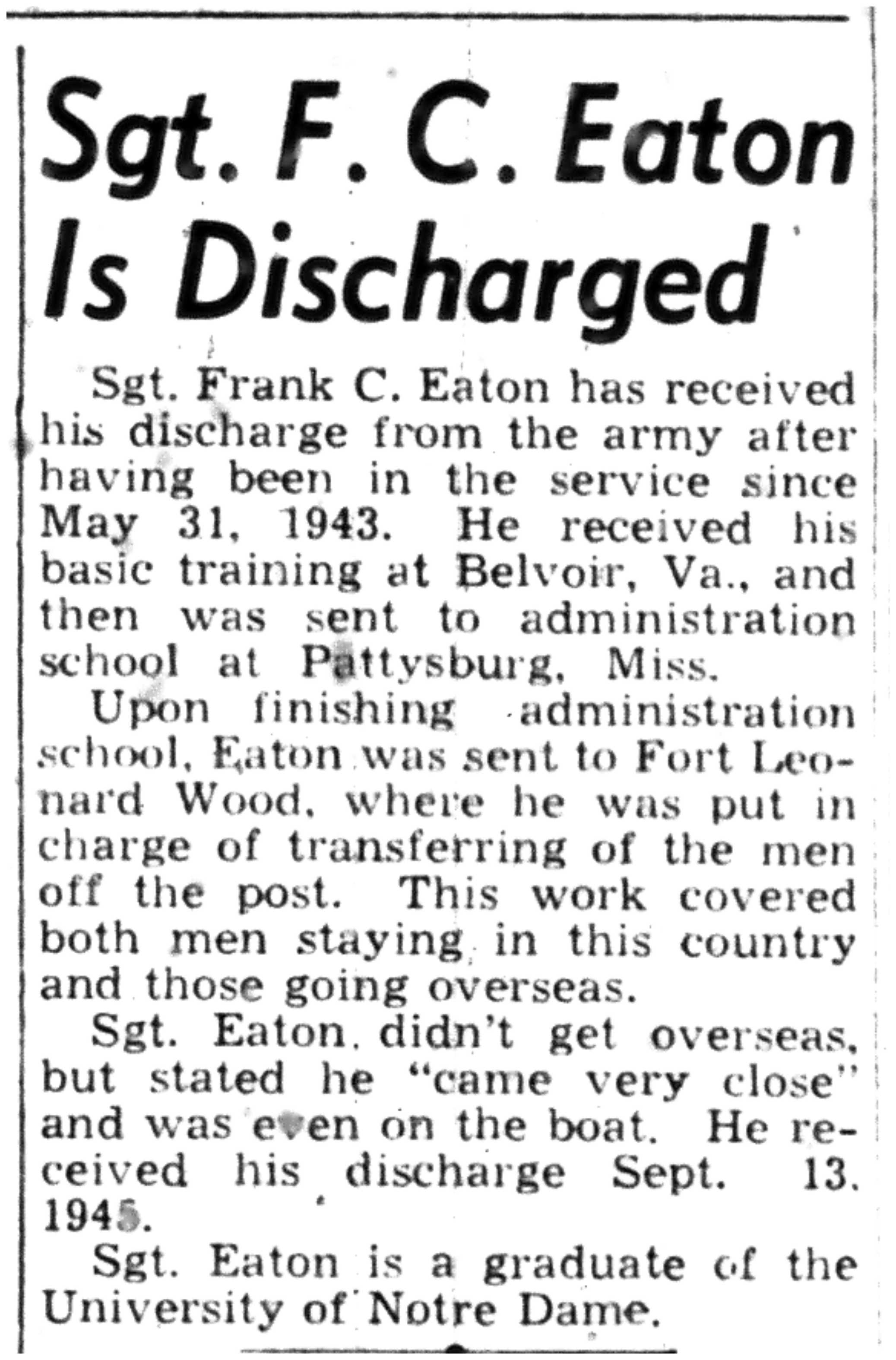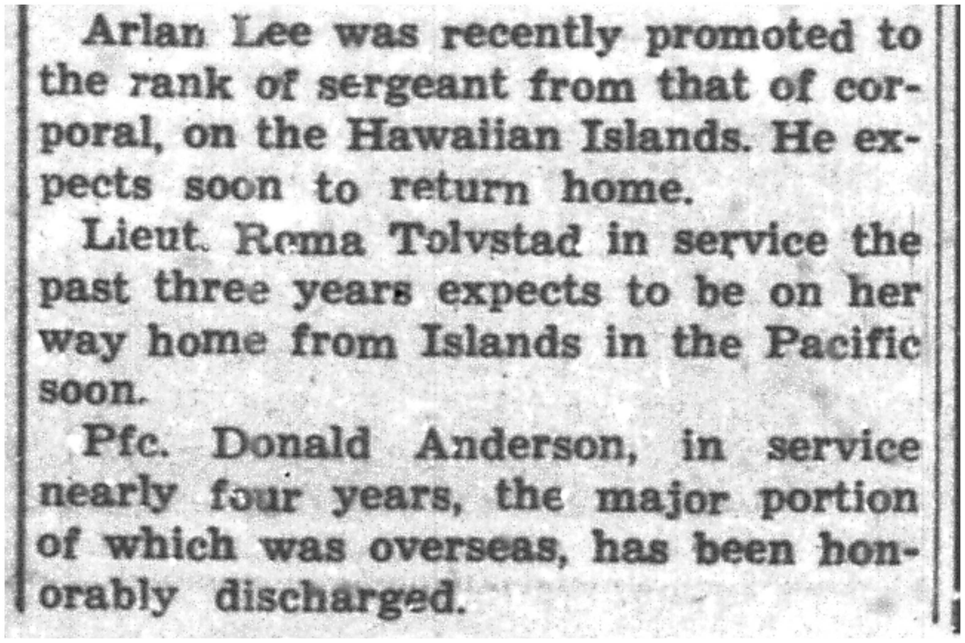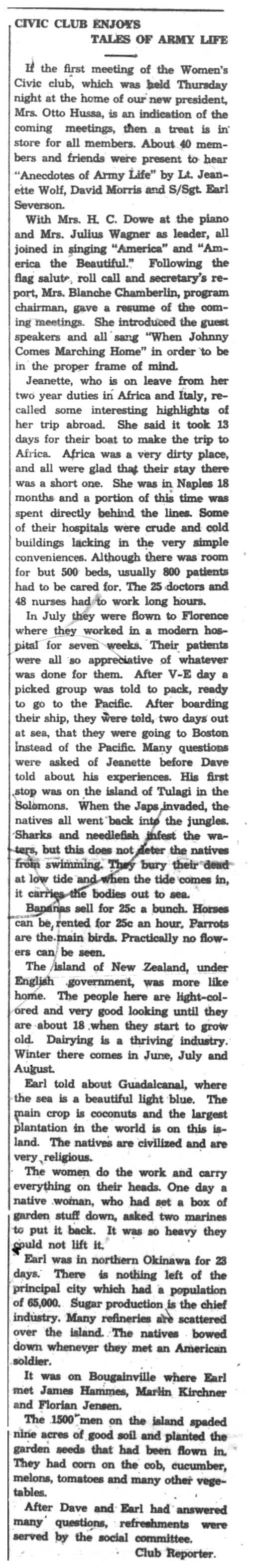 | 1945-9-6 | Non-Pareil Journal p5 | |