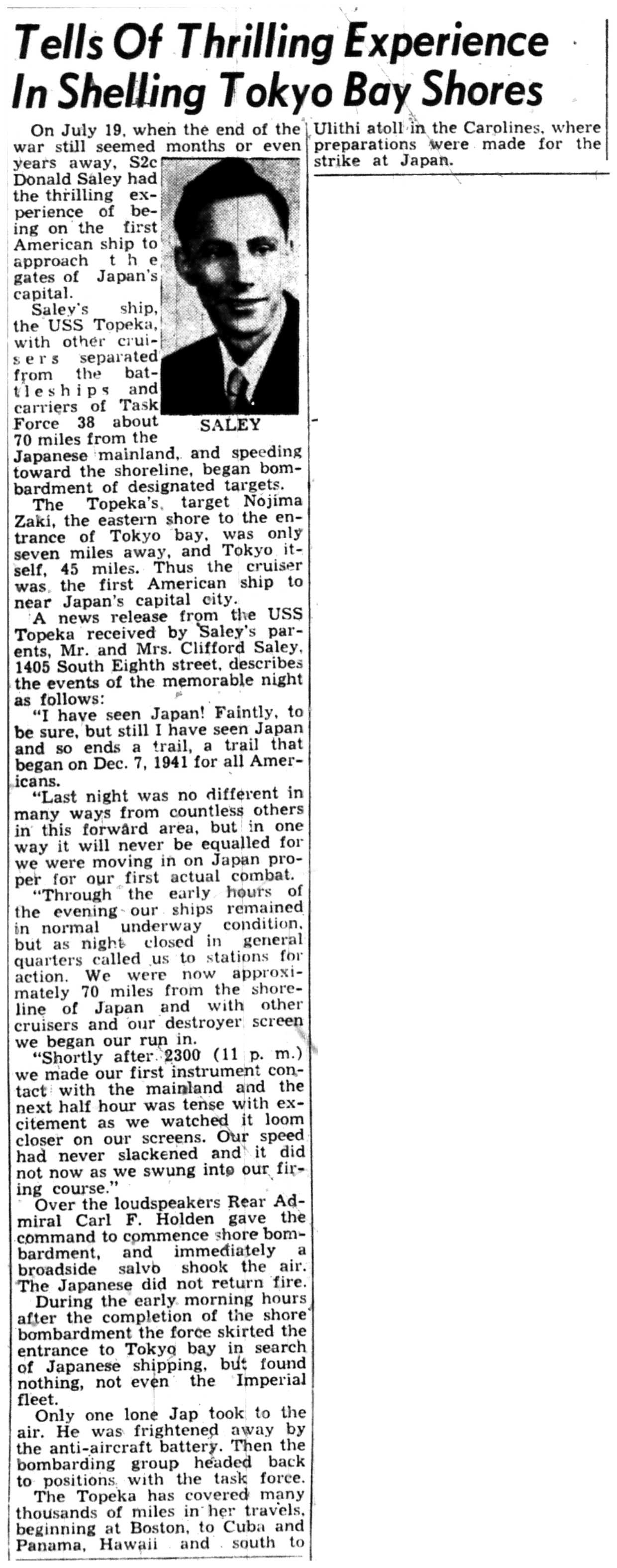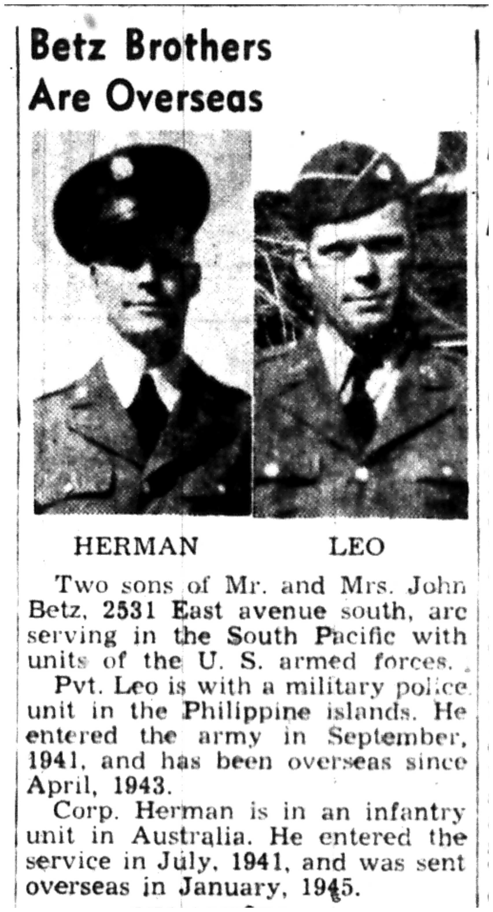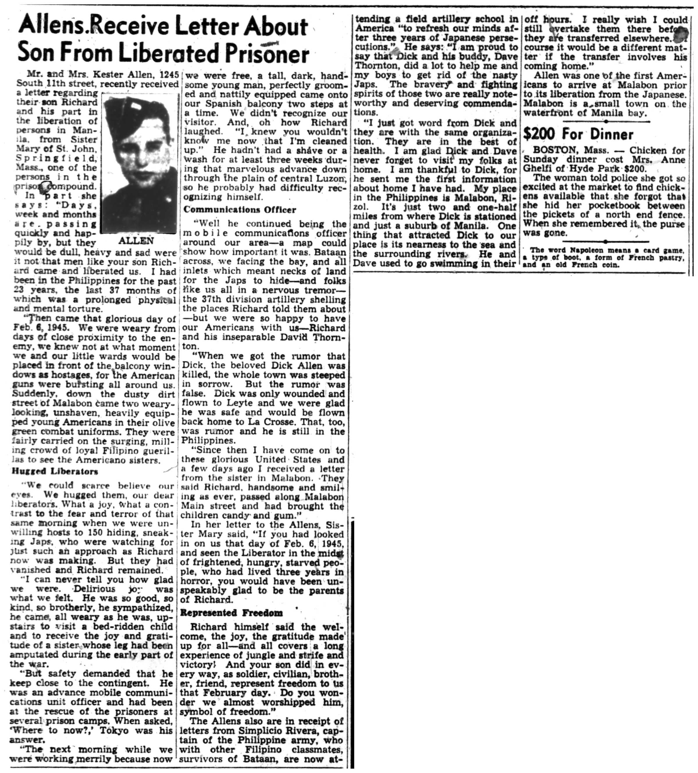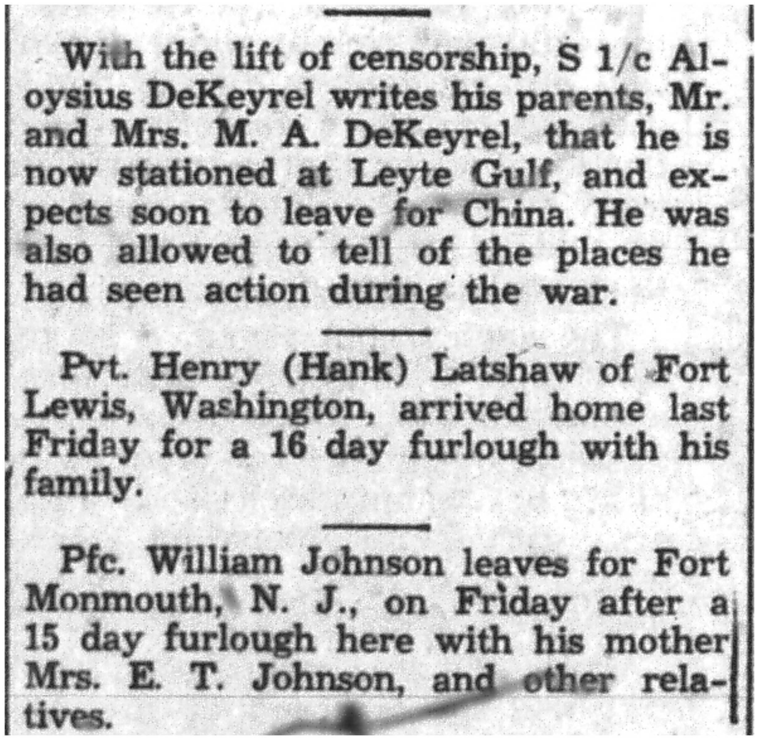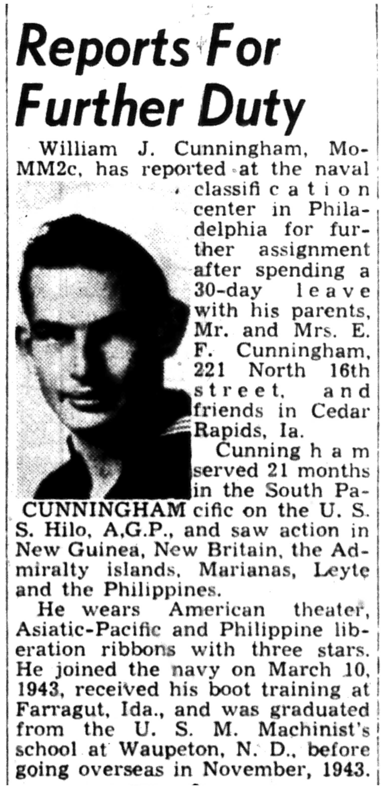 | 1945-9-6 | Non-Pareil Journal p5 | |