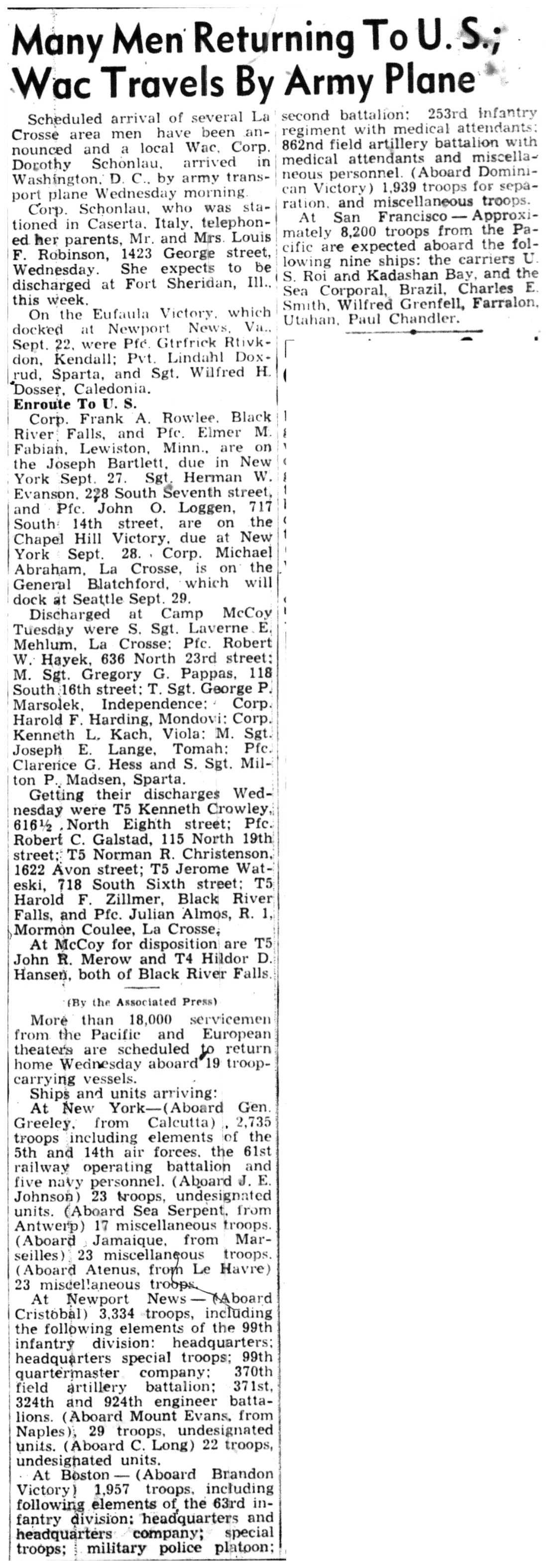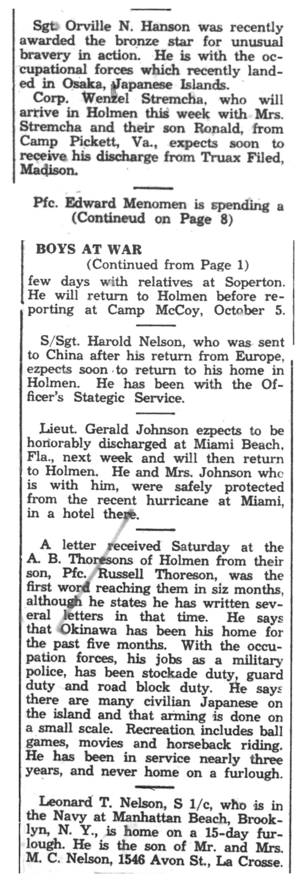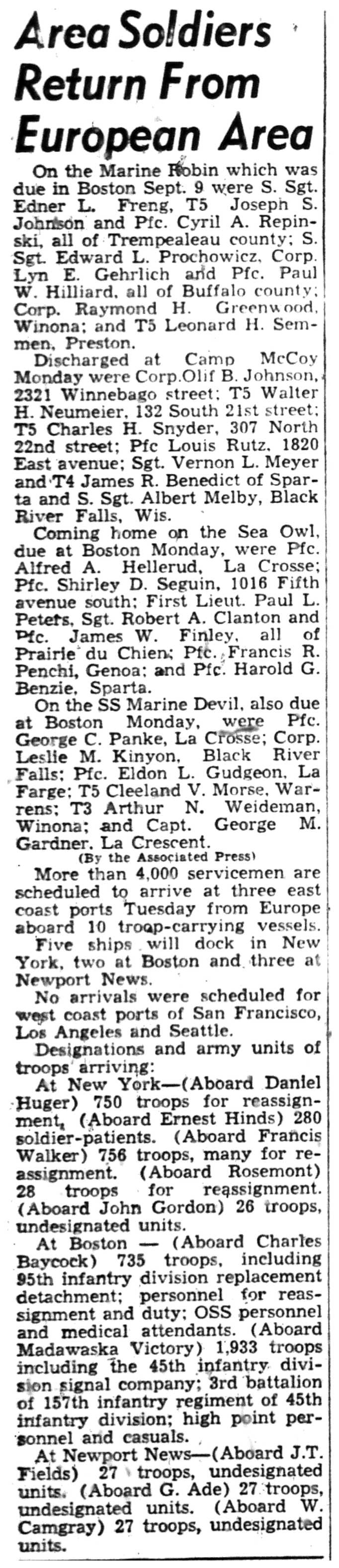 | 1945-9-2 | La Crosse Tribune p5 |