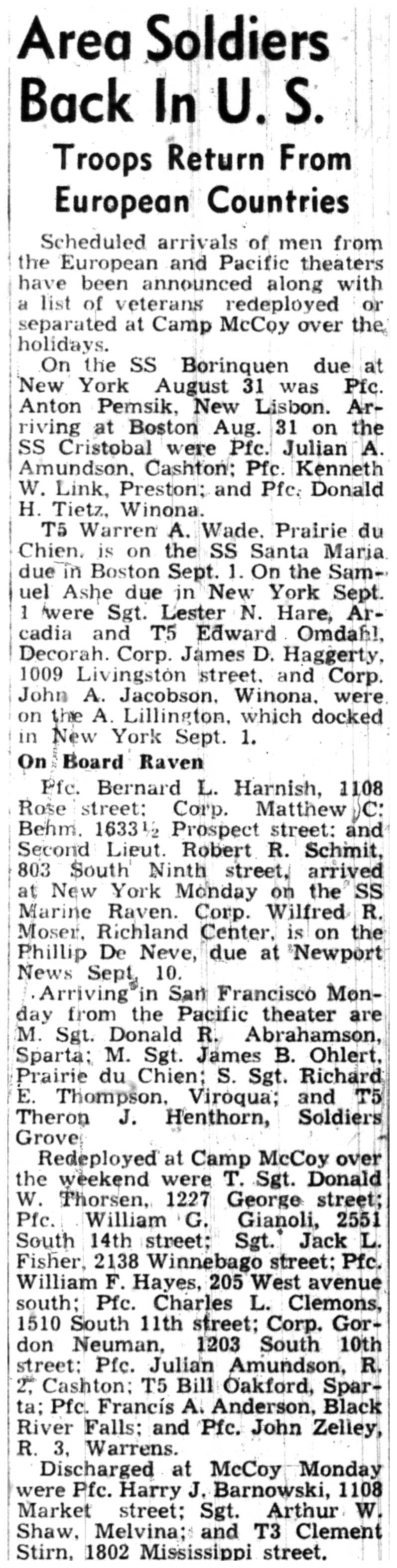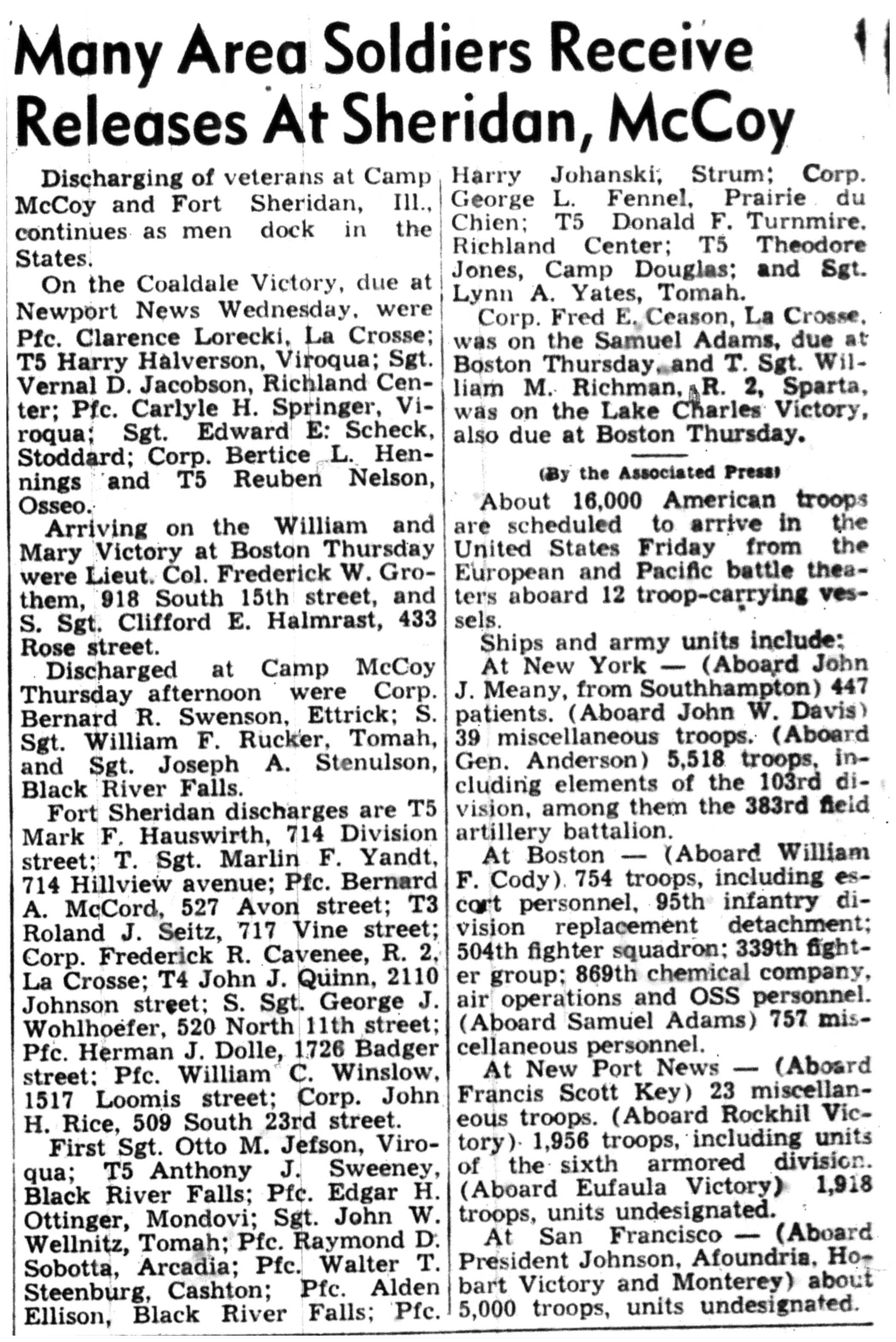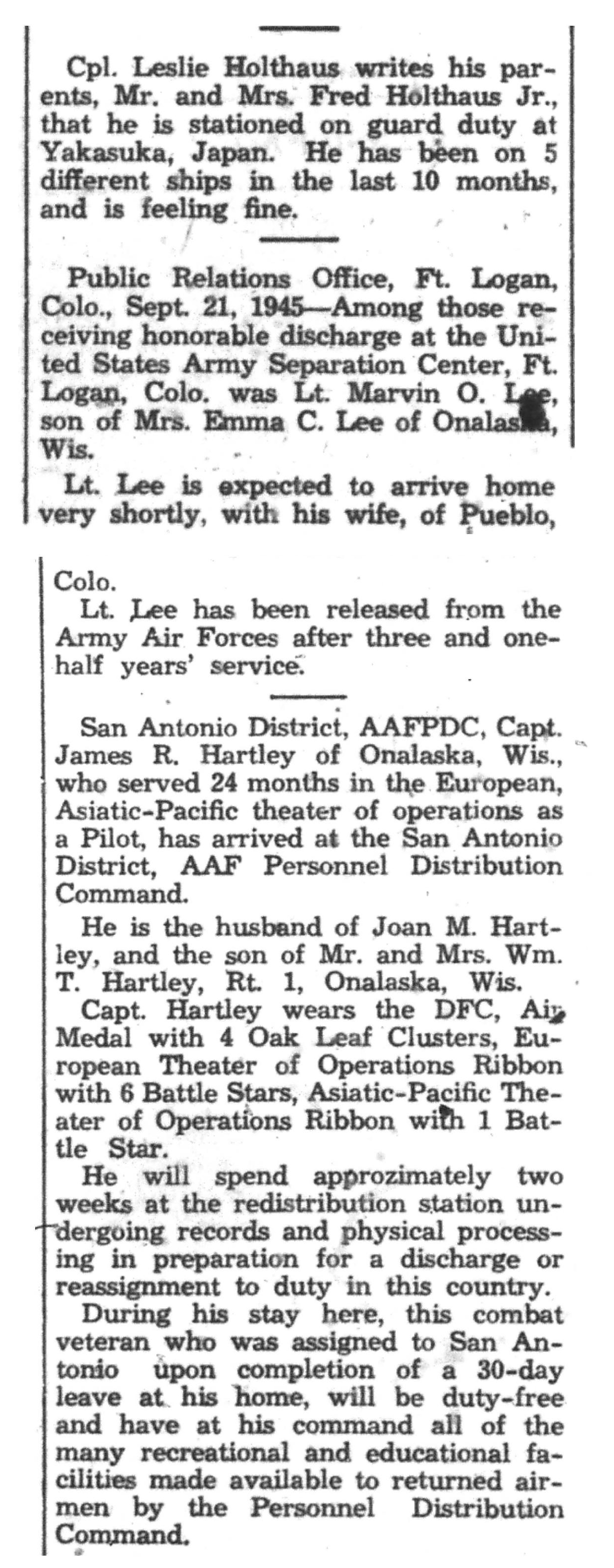 | 1945-9-2 | La Crosse Tribune p5 |