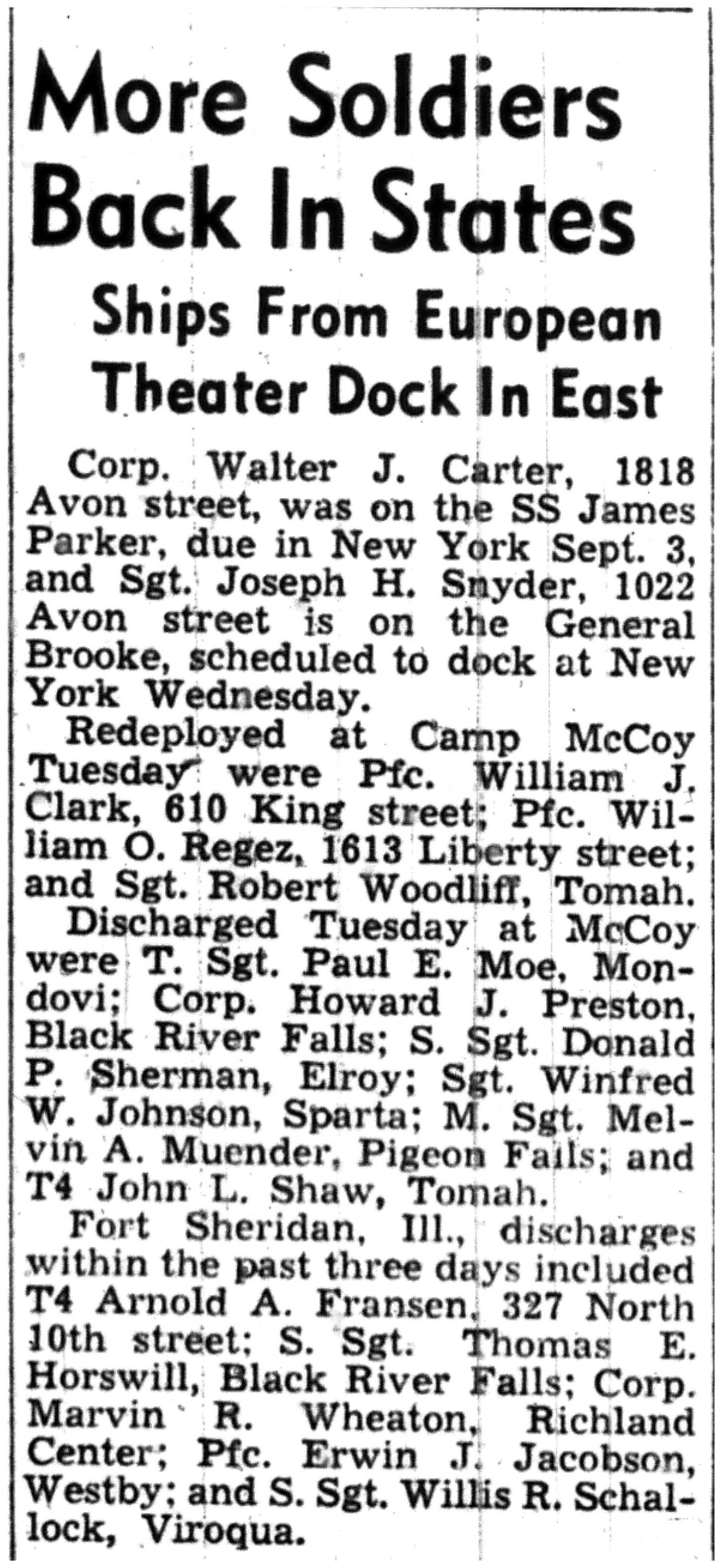 | 1945-9-2 | La Crosse Tribune p4 | |