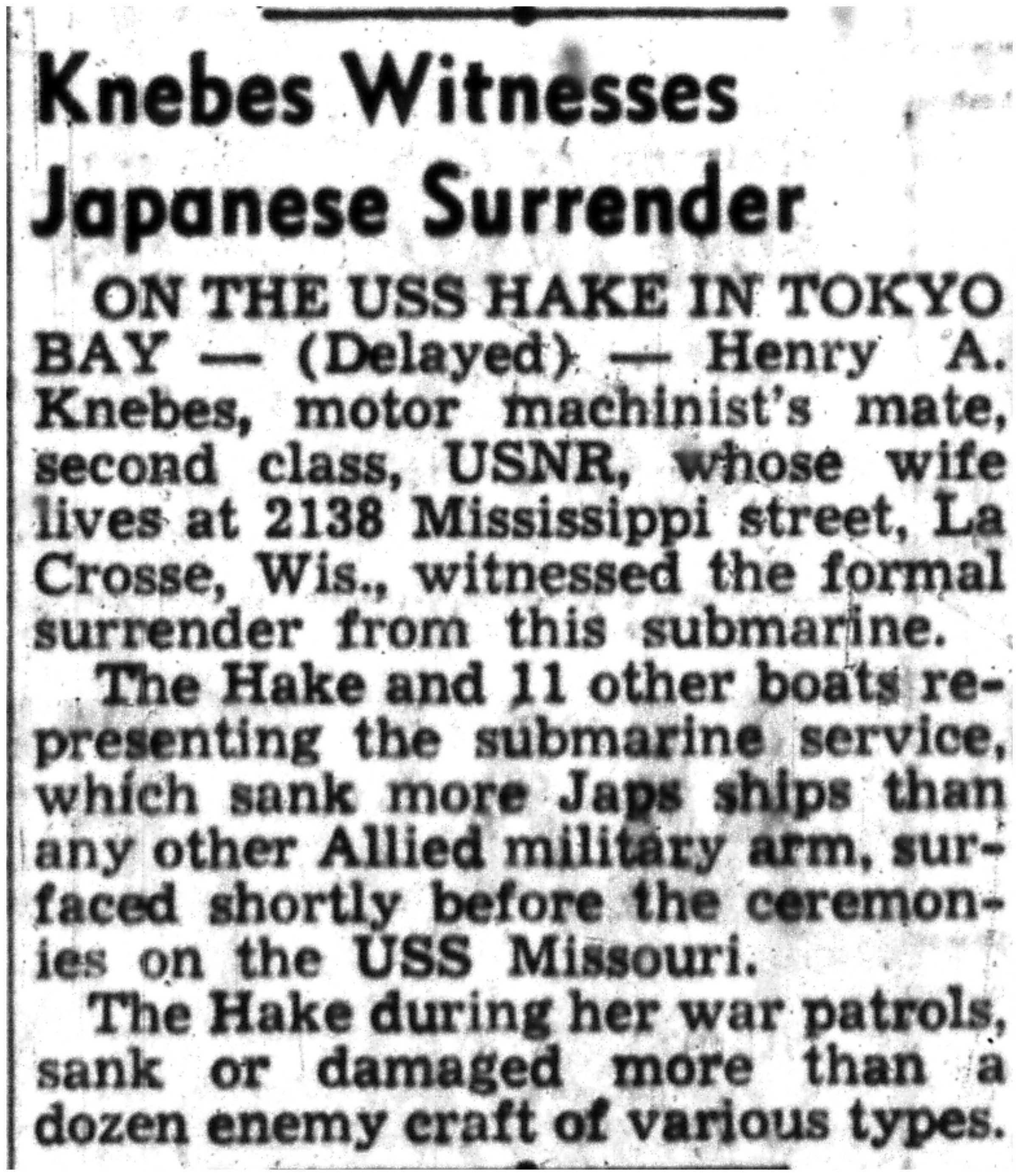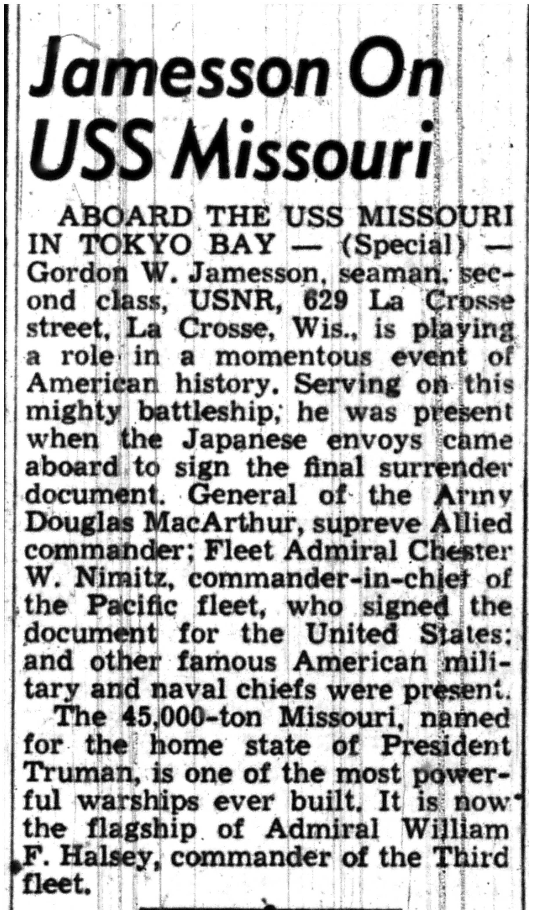 | 1945-9-8 | La Crosse Tribune p1 |