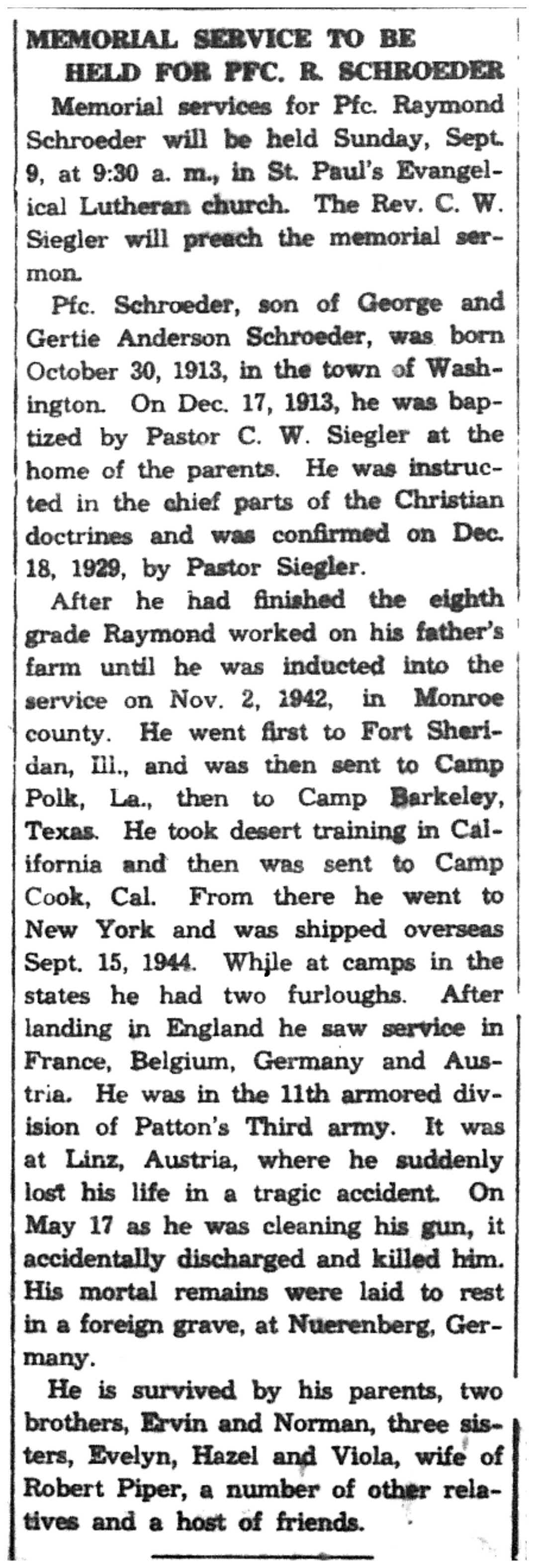 | 1945-9-6 | La Crosse County Record p8 | |
