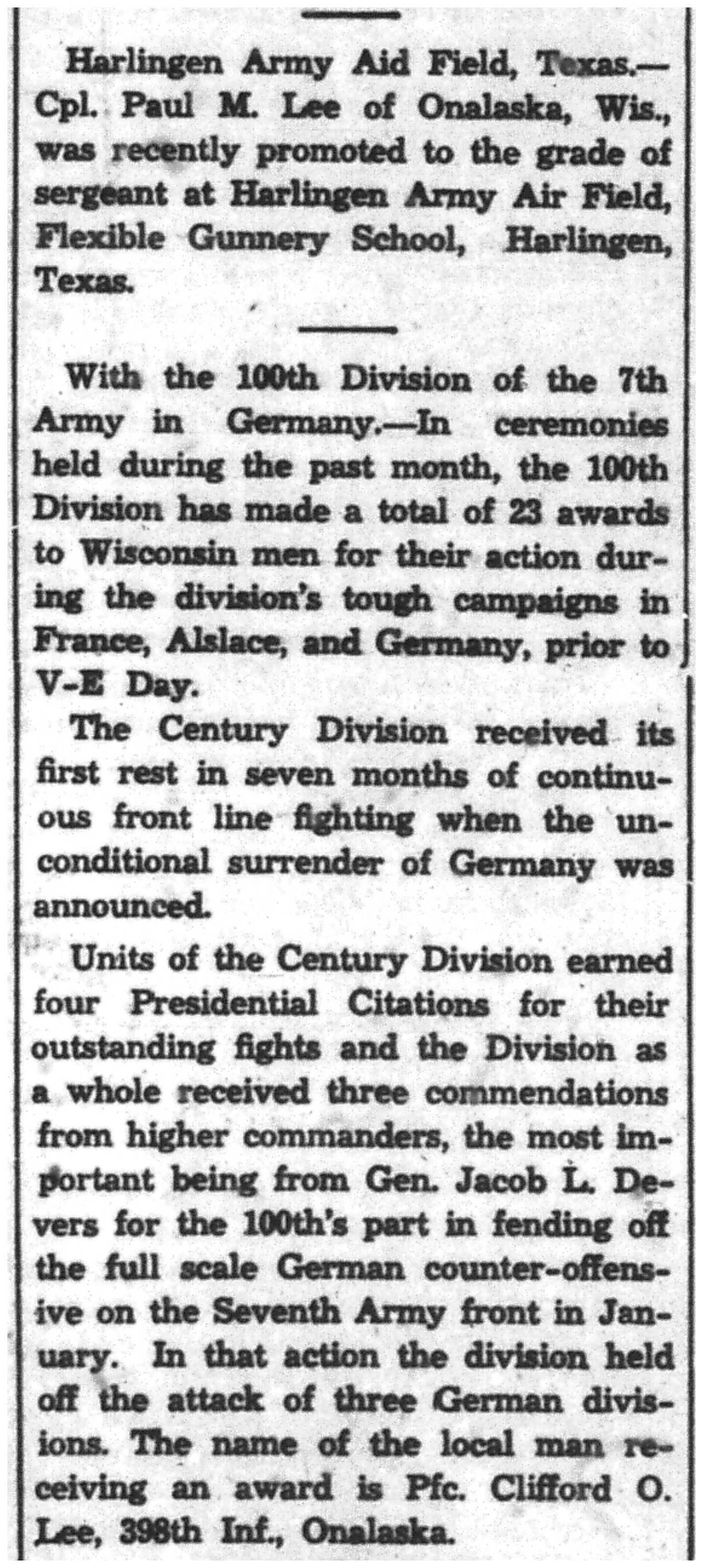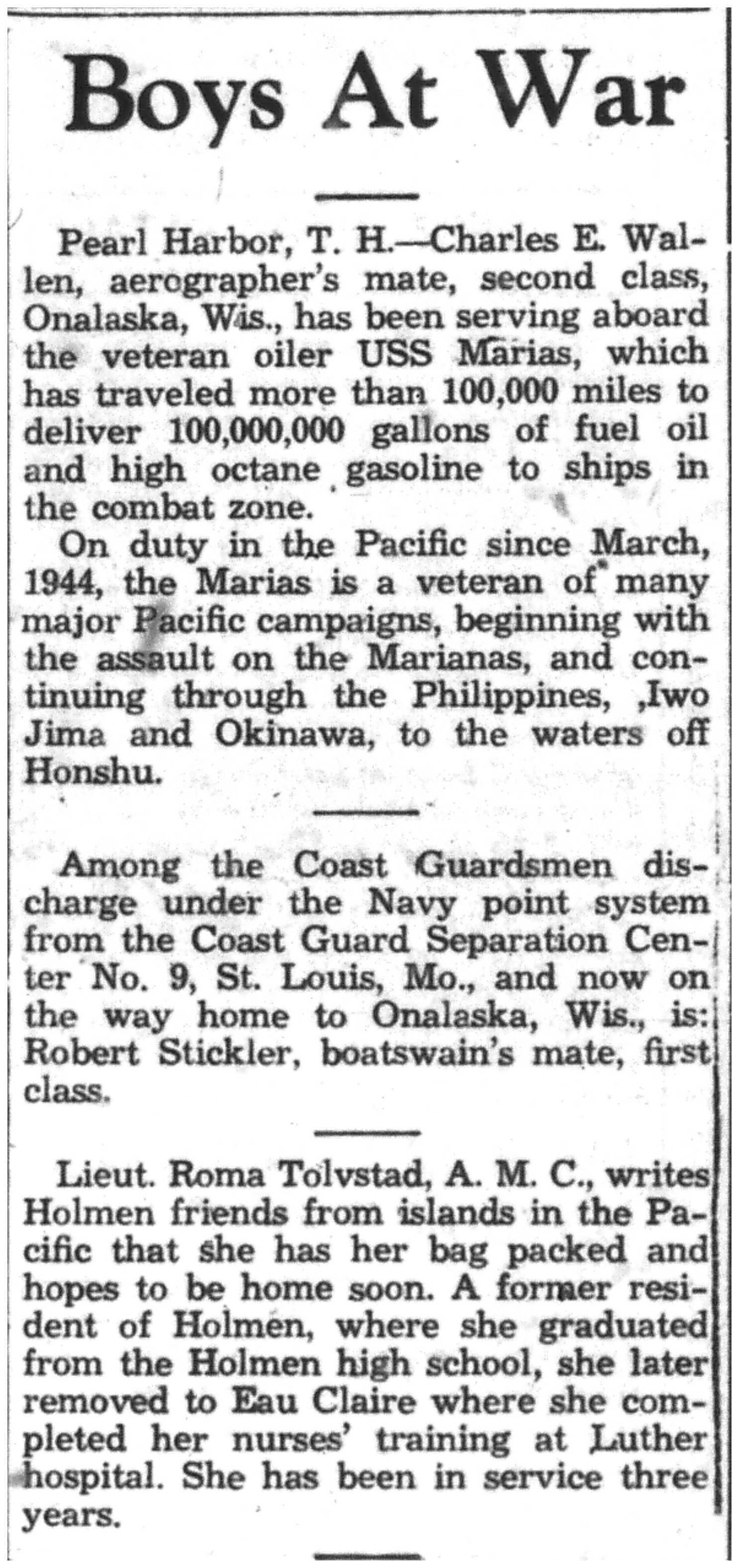 | 1945-9-7 | La Crosse Tribune p8 |