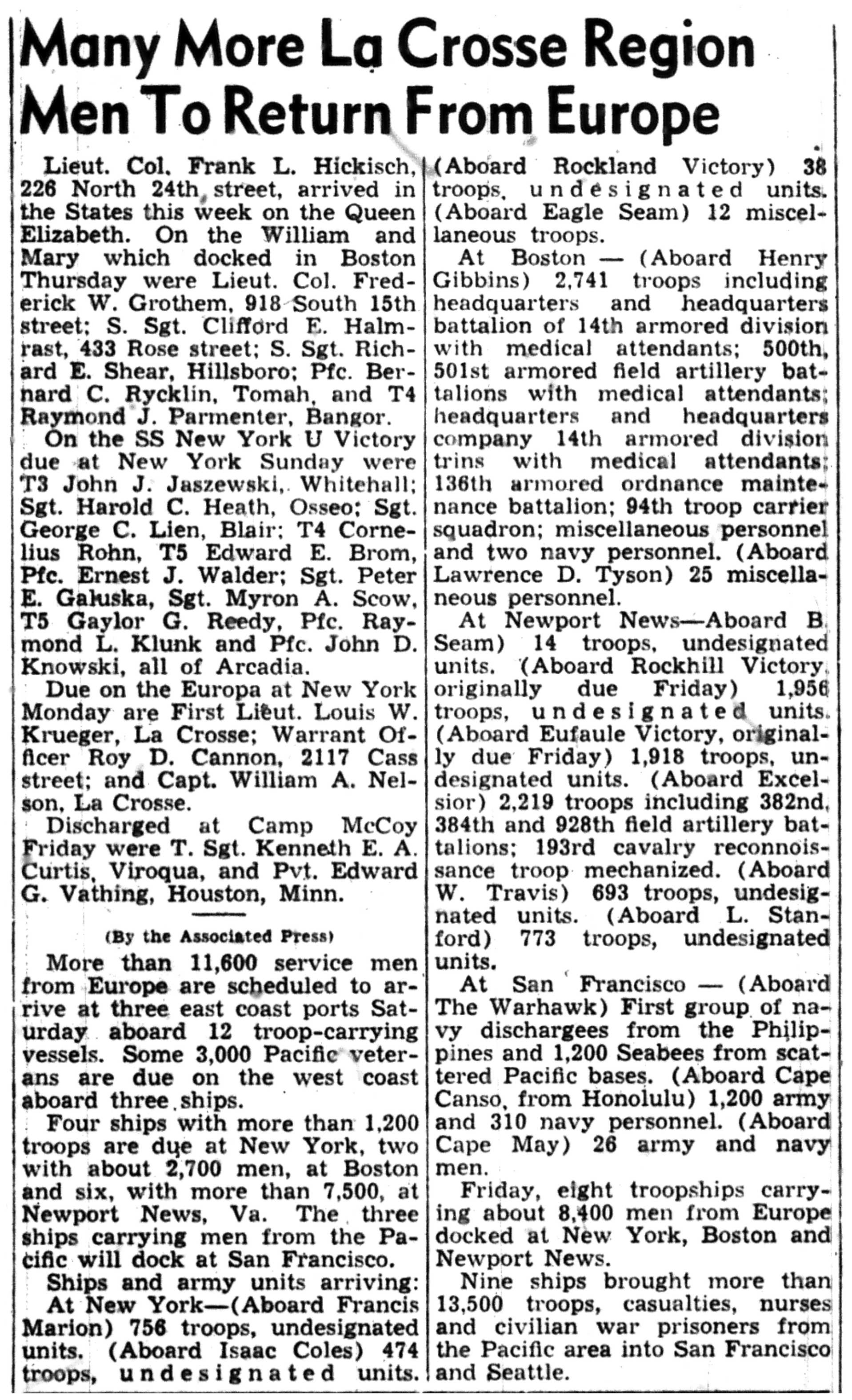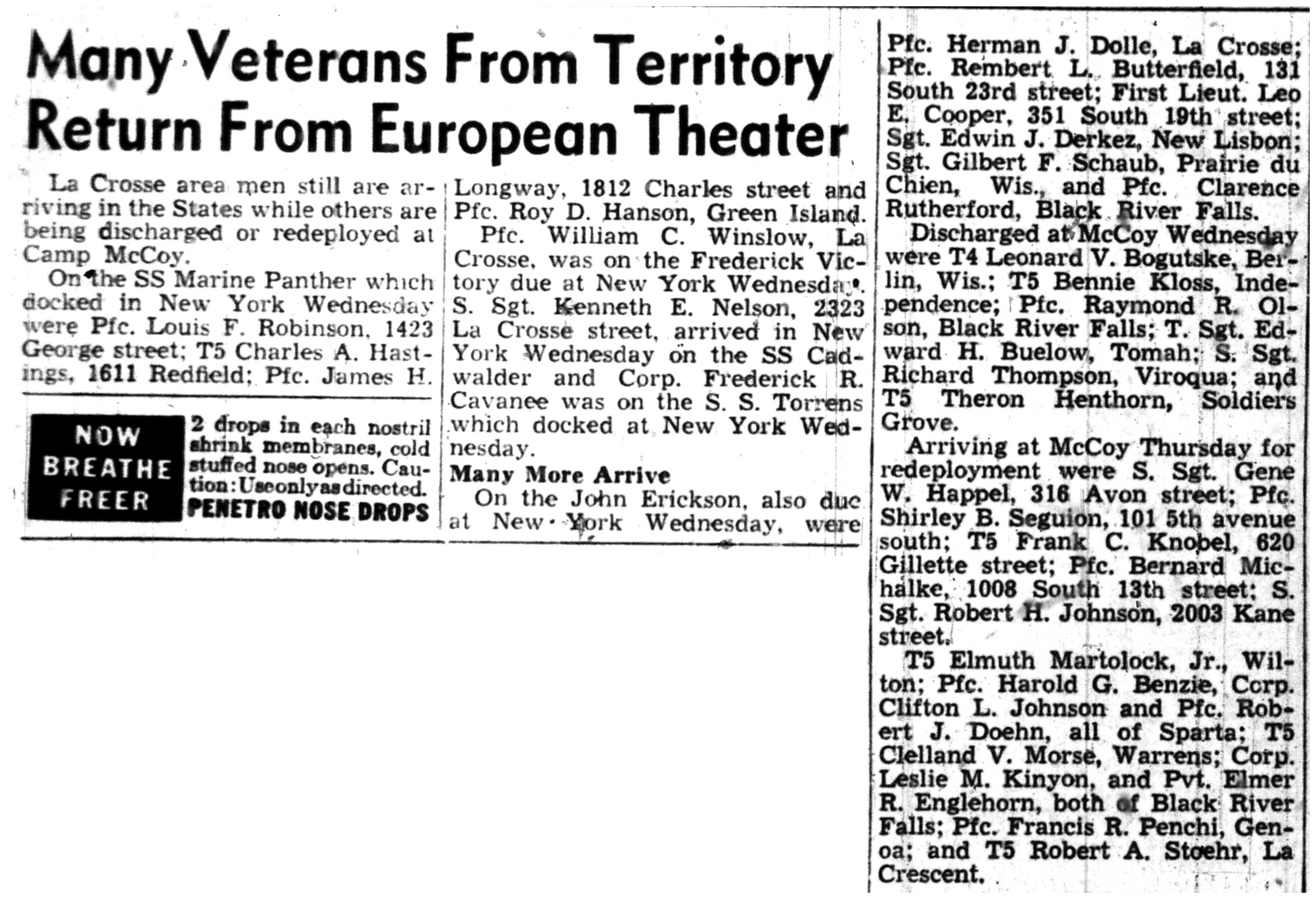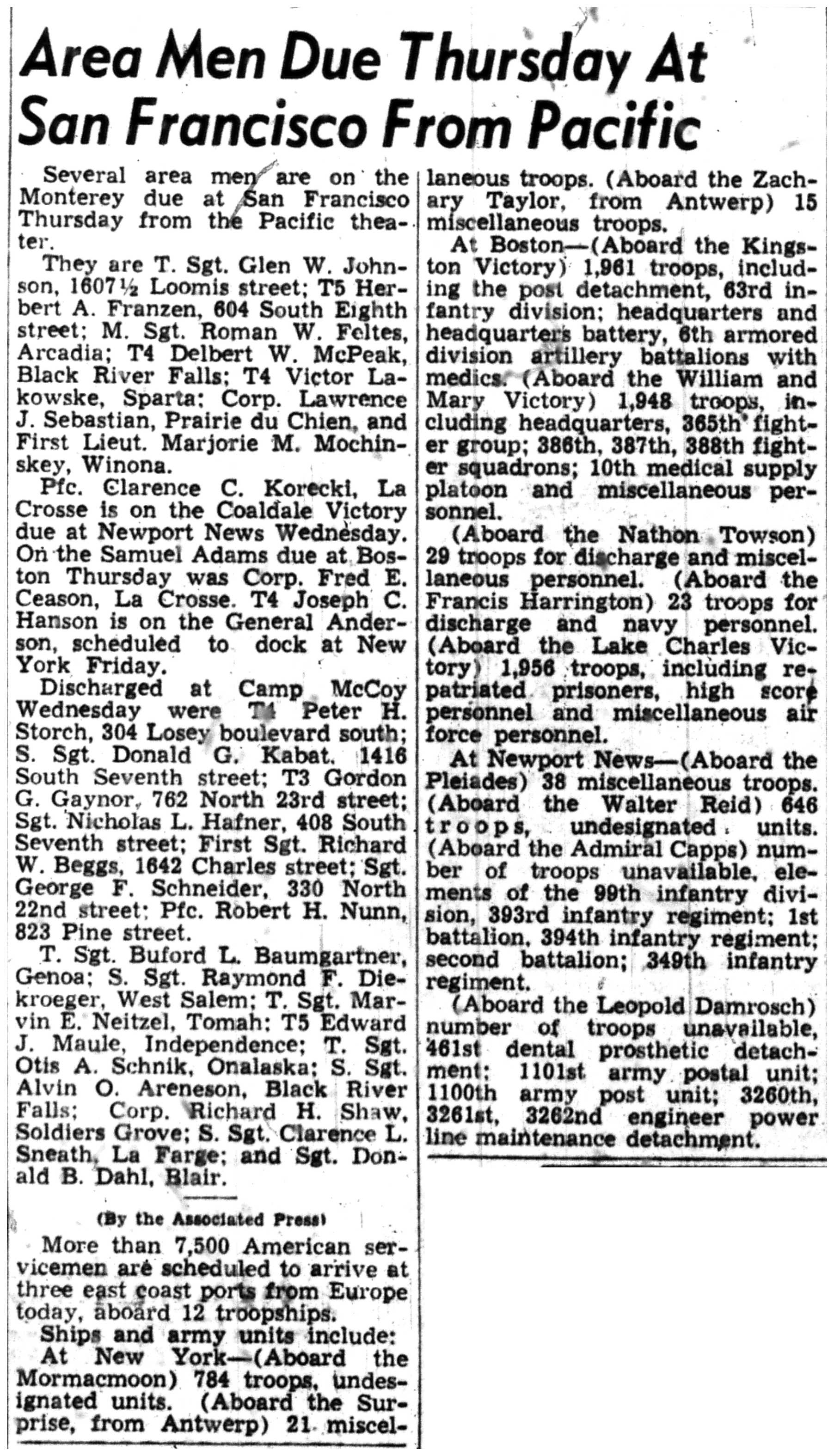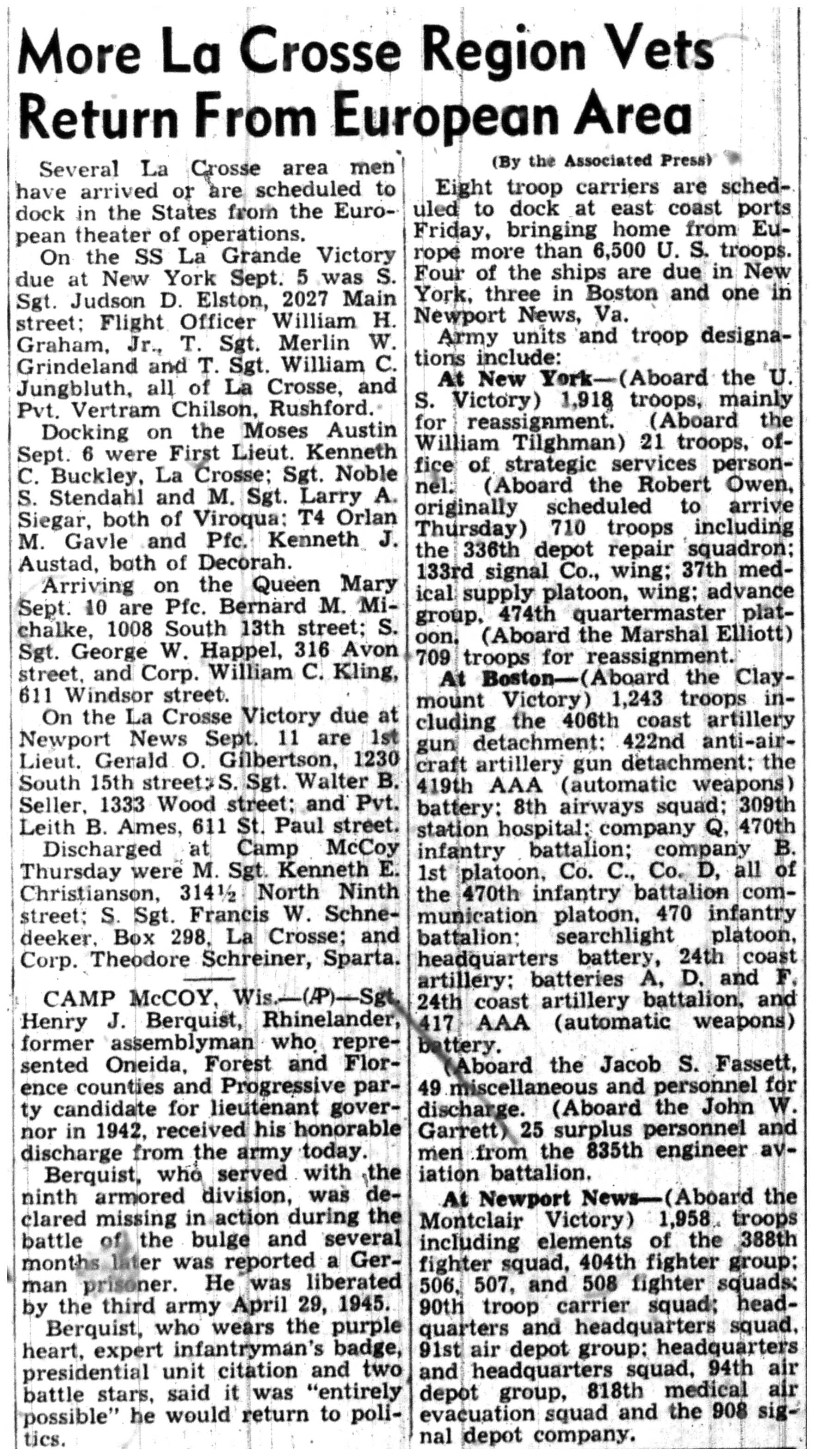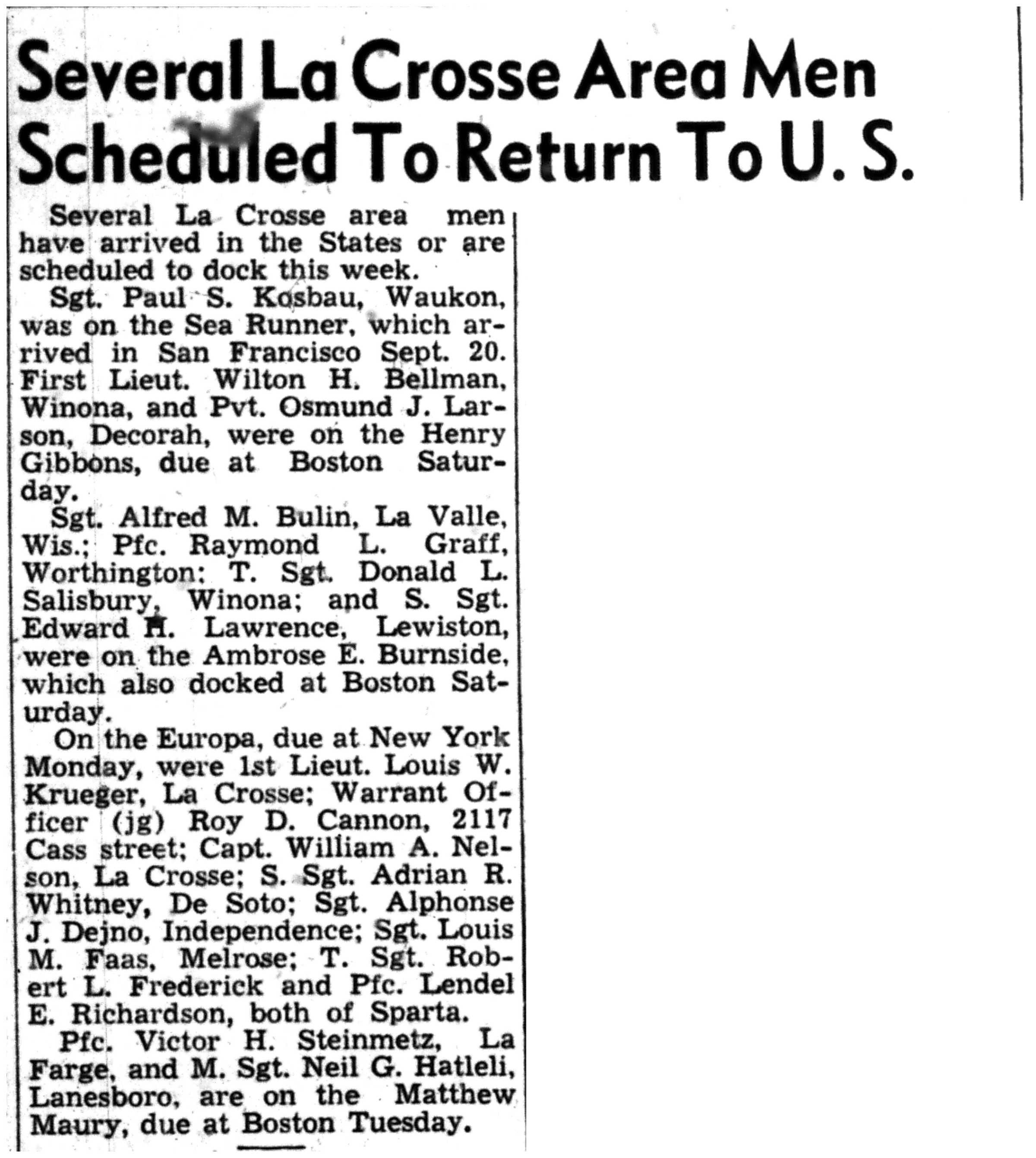 | 1945-9-5 | La Crosse Tribune p3 |
