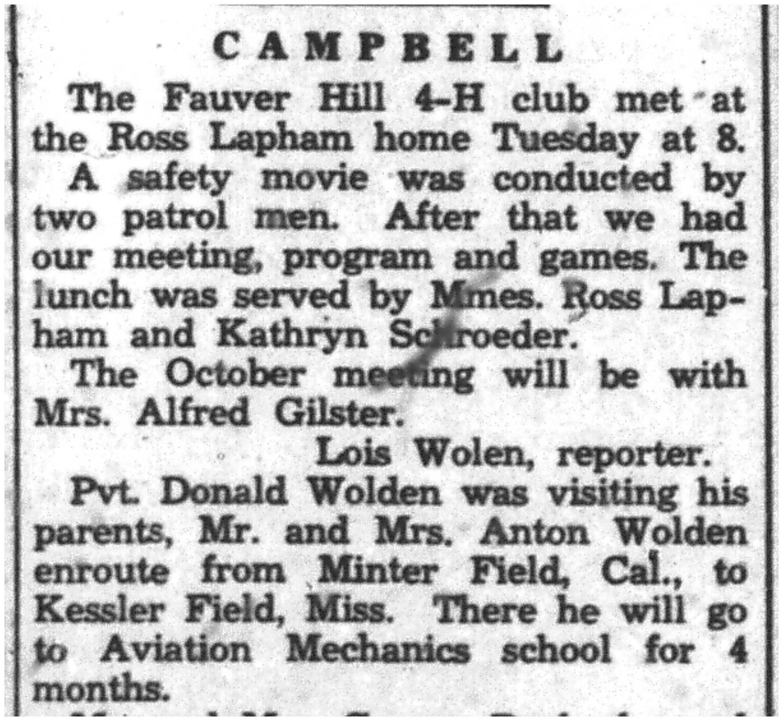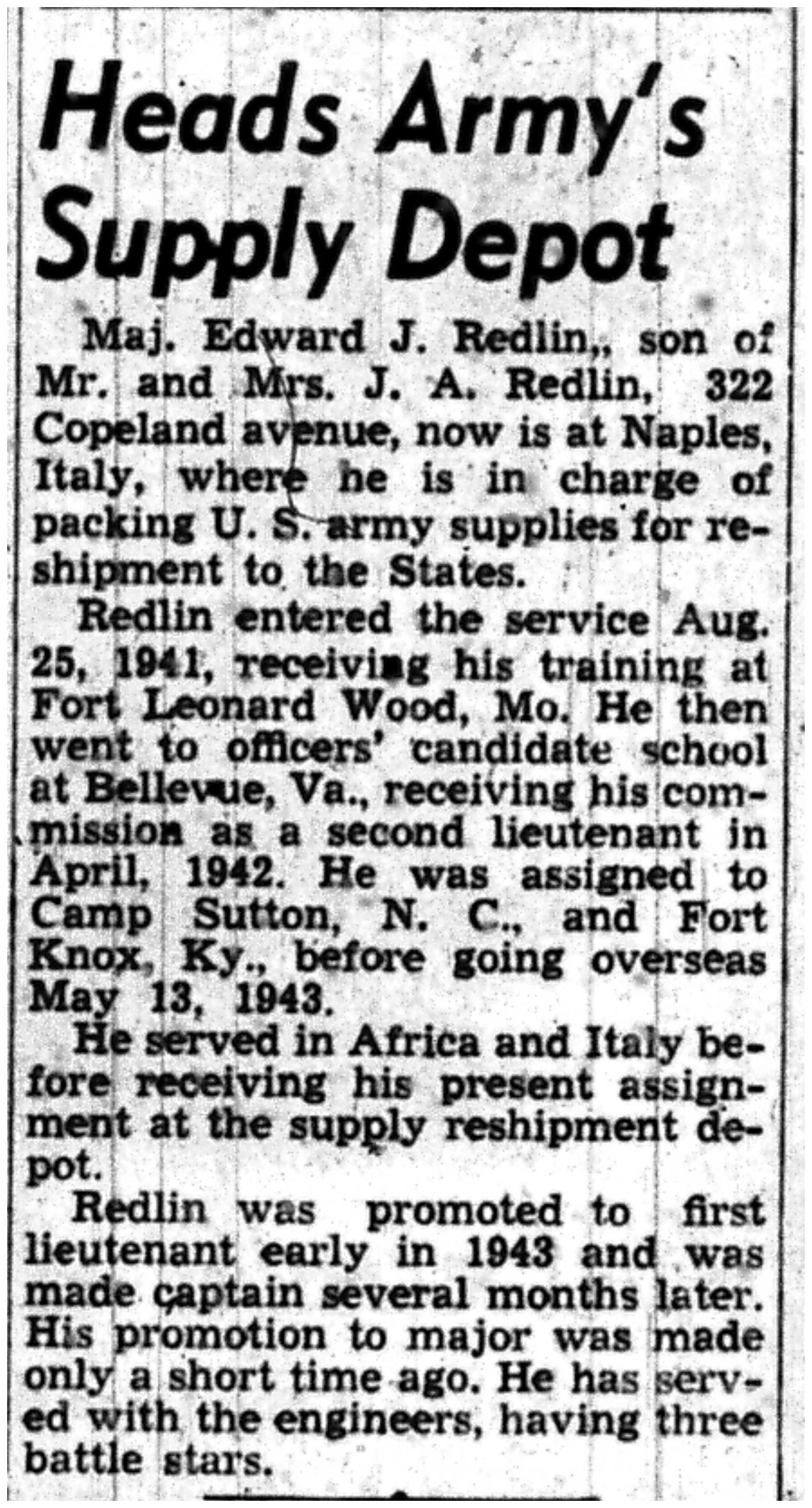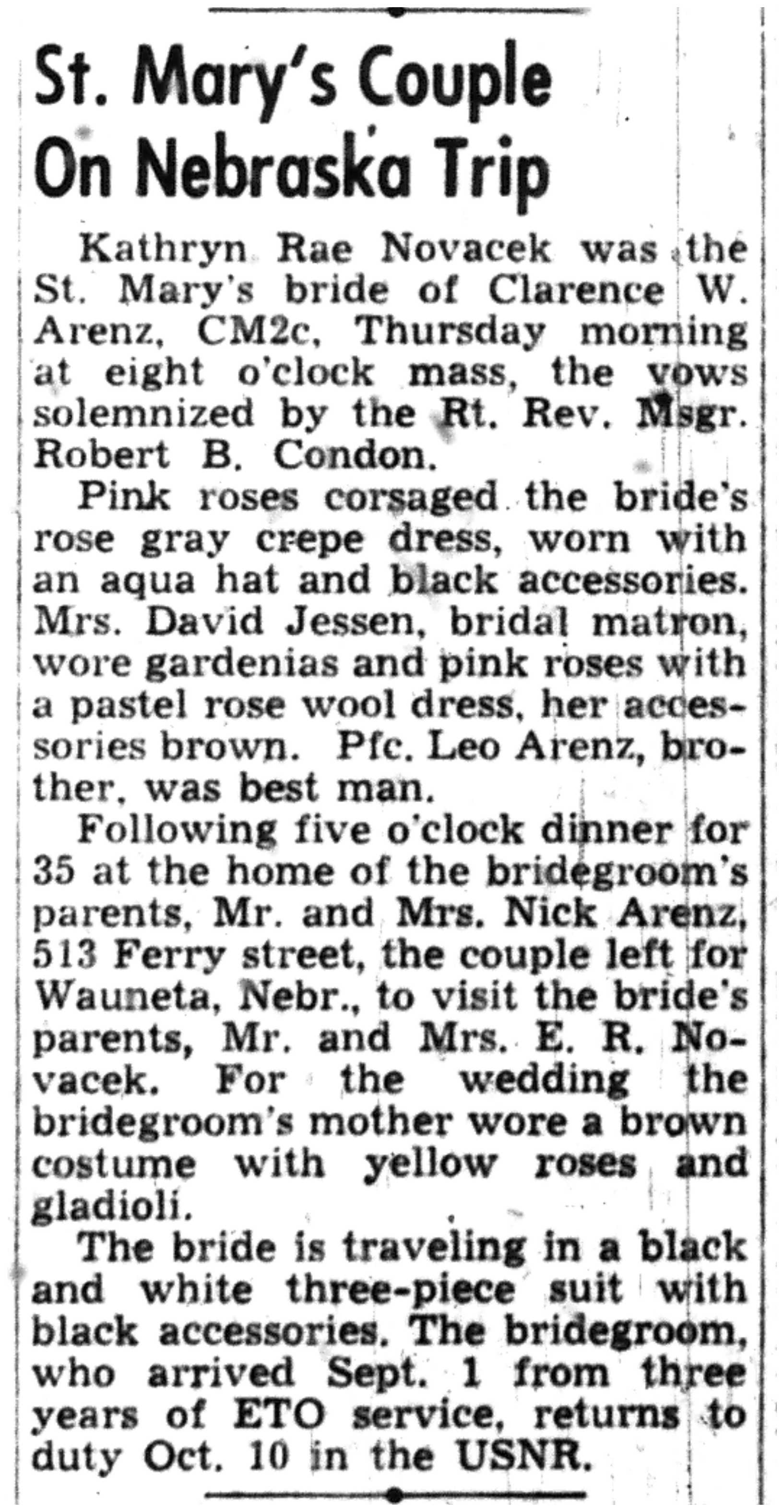 | 1945-9-13 | Non-Pareil Journal p8 | |