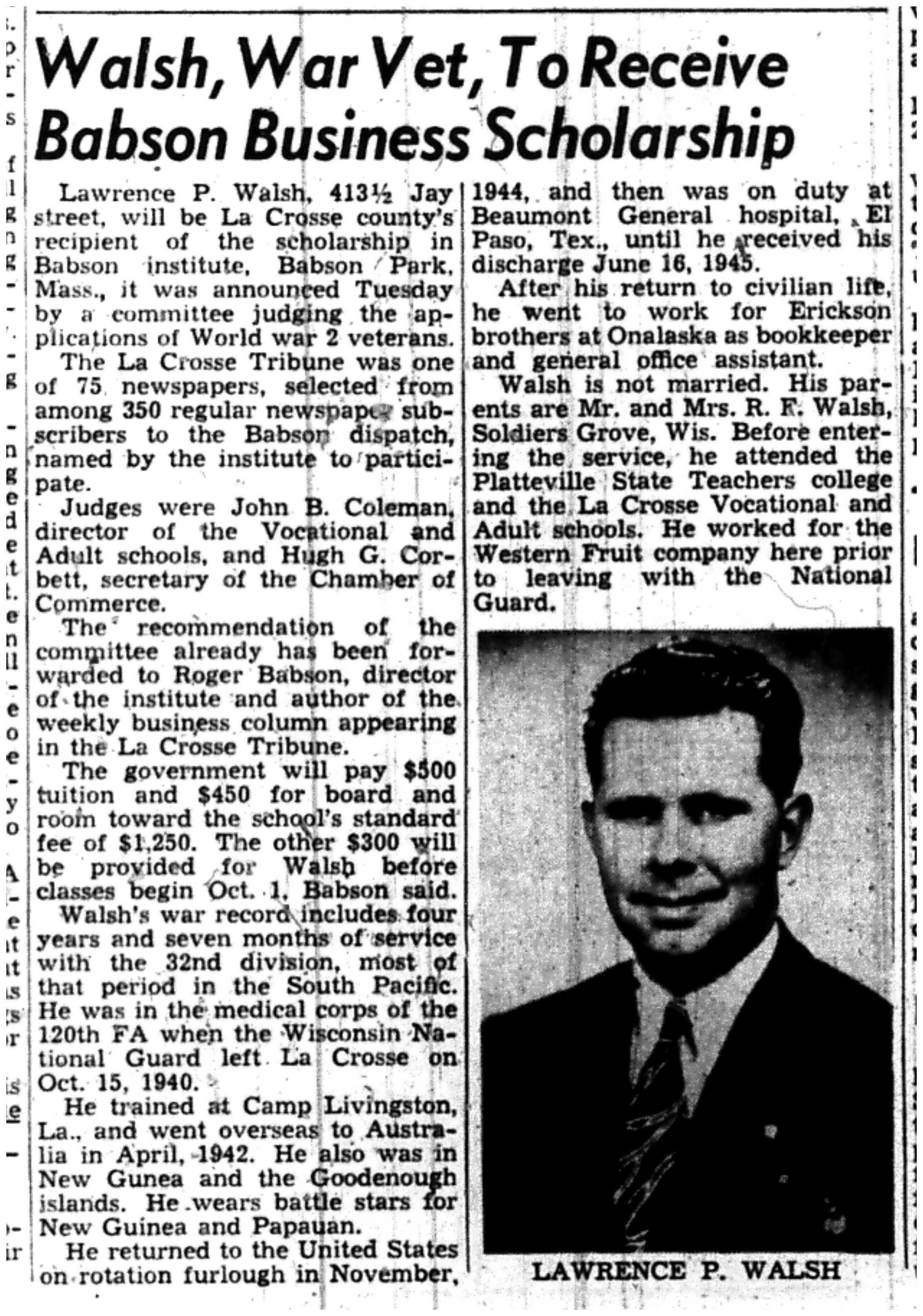 | 1945-9-6 | La Crosse Tribune p14 | |