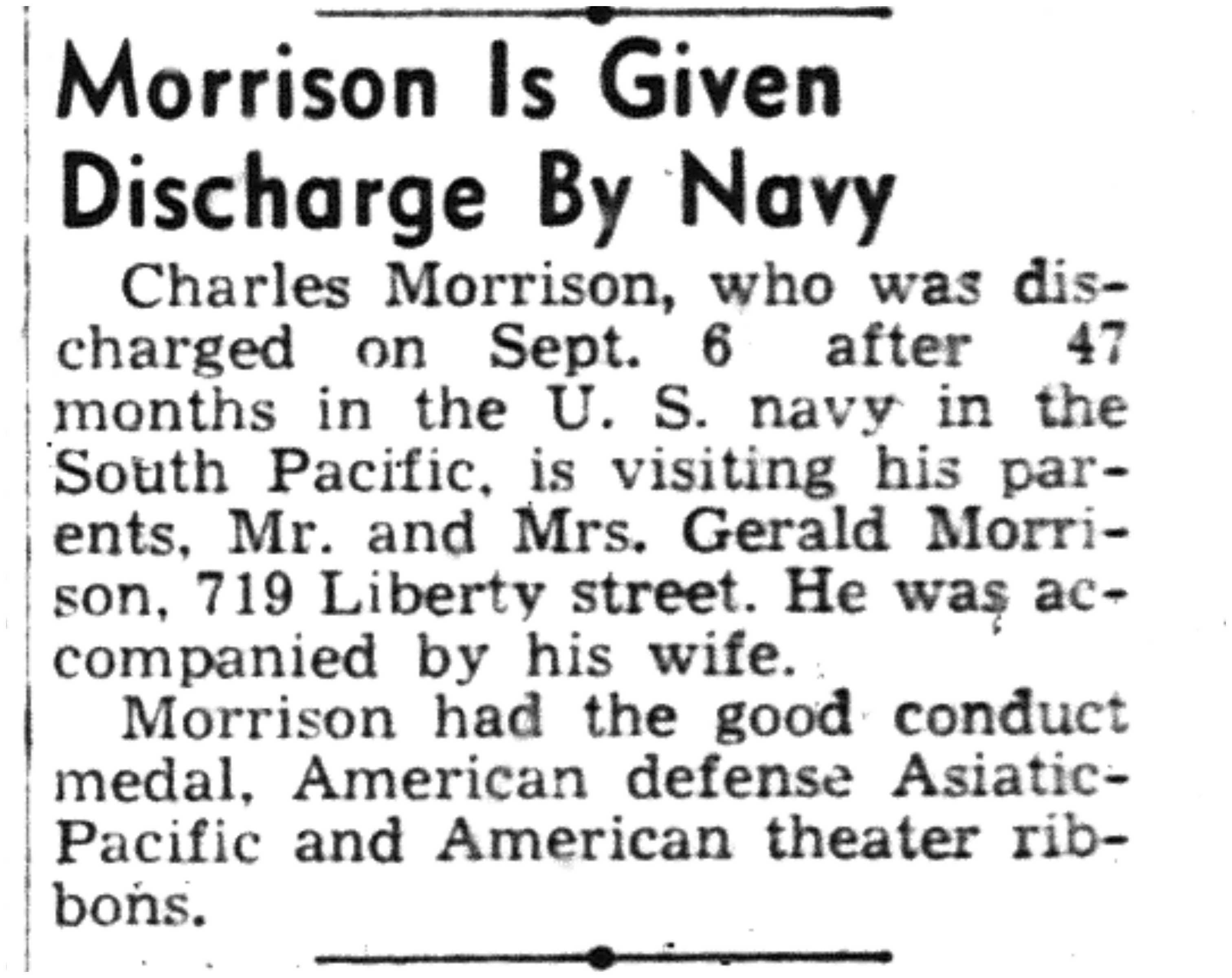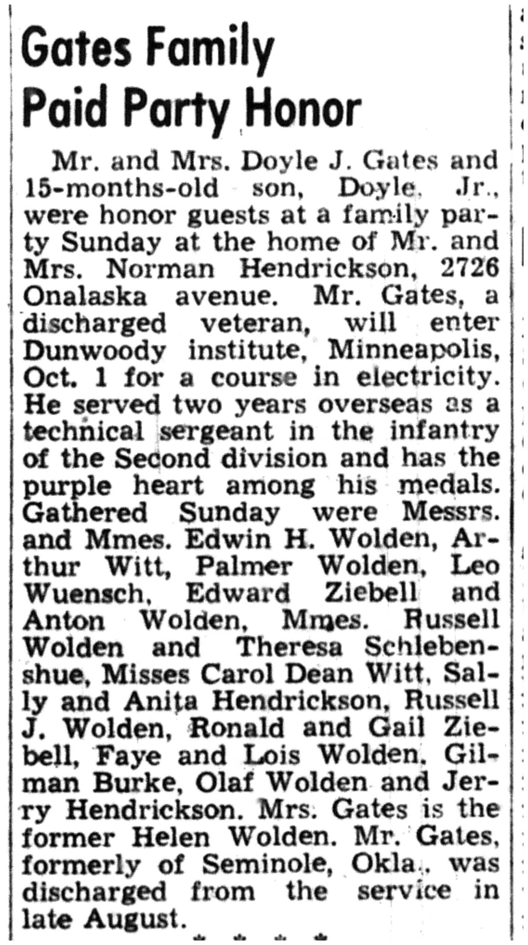 | 1945-9-6 | La Crosse Tribune p15 | |