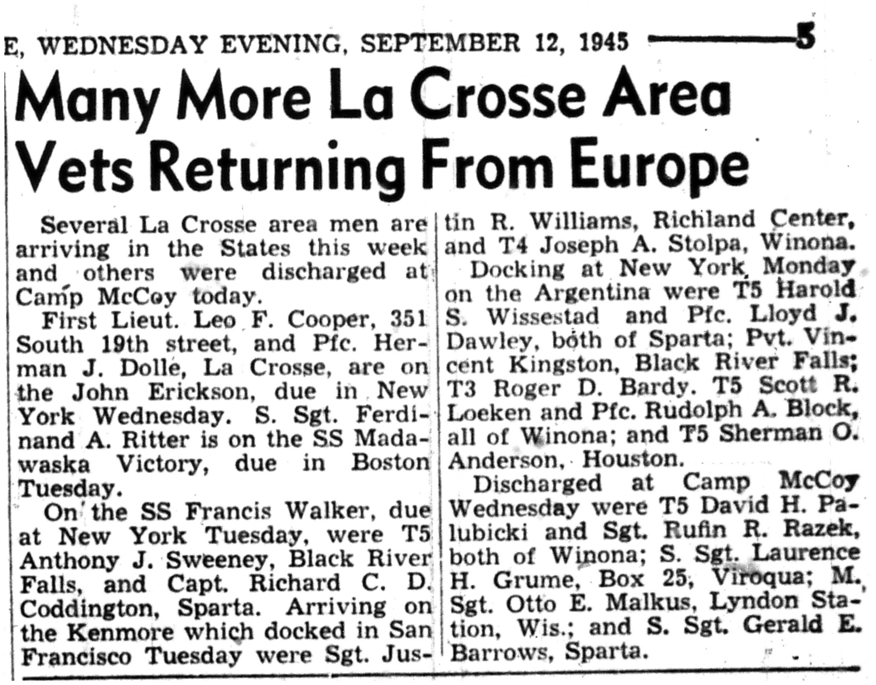 | 1945-9-5 | La Crosse Tribune p5 |