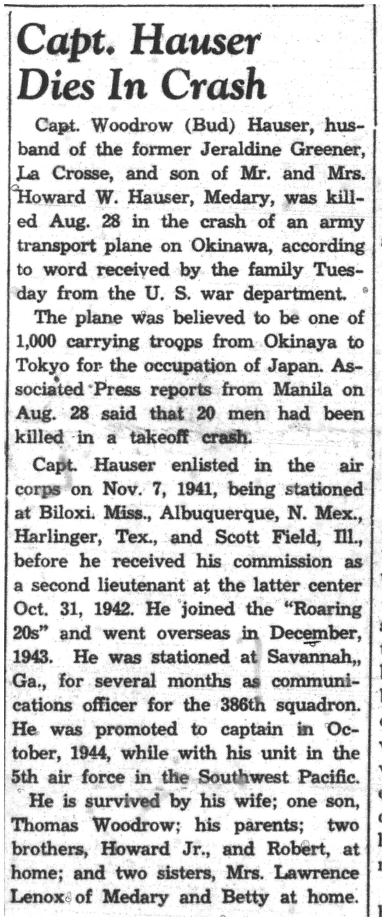 | 1945-9-27 | La Crosse Tribune p15 |