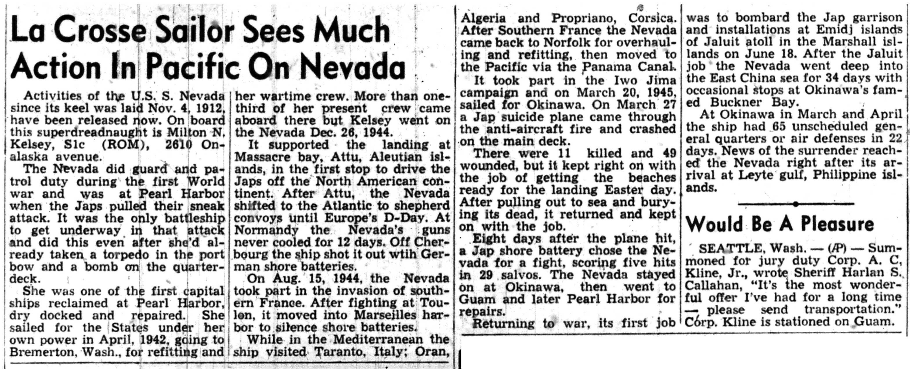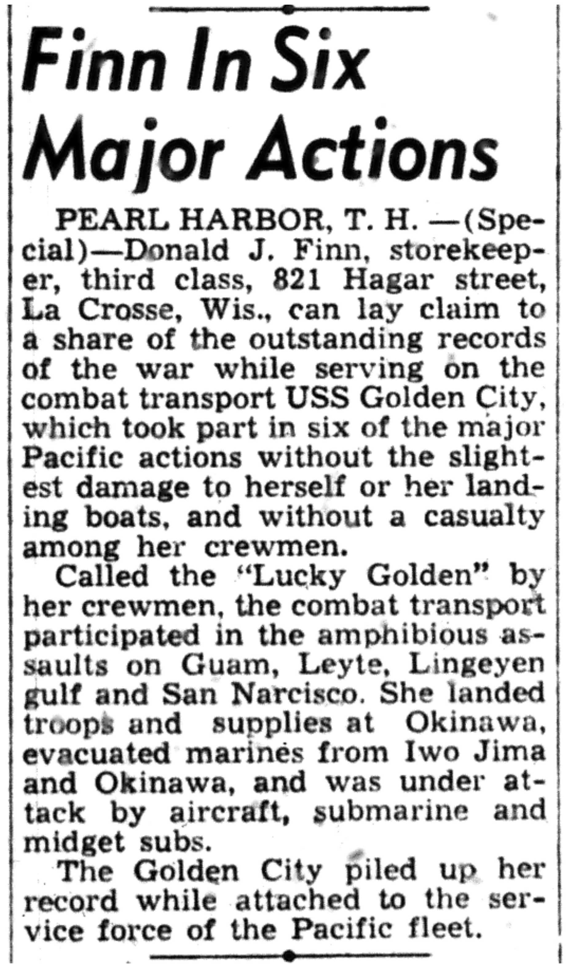 | 1945-9-6 | La Crosse Tribune p11 | |