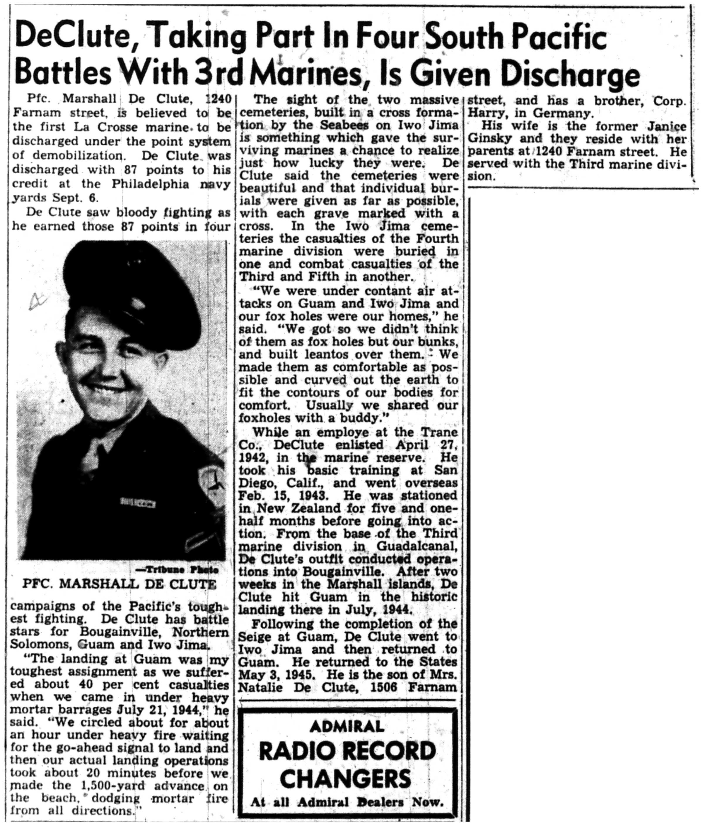 | 1945-9-9 | La Crosse Tribune p11 |