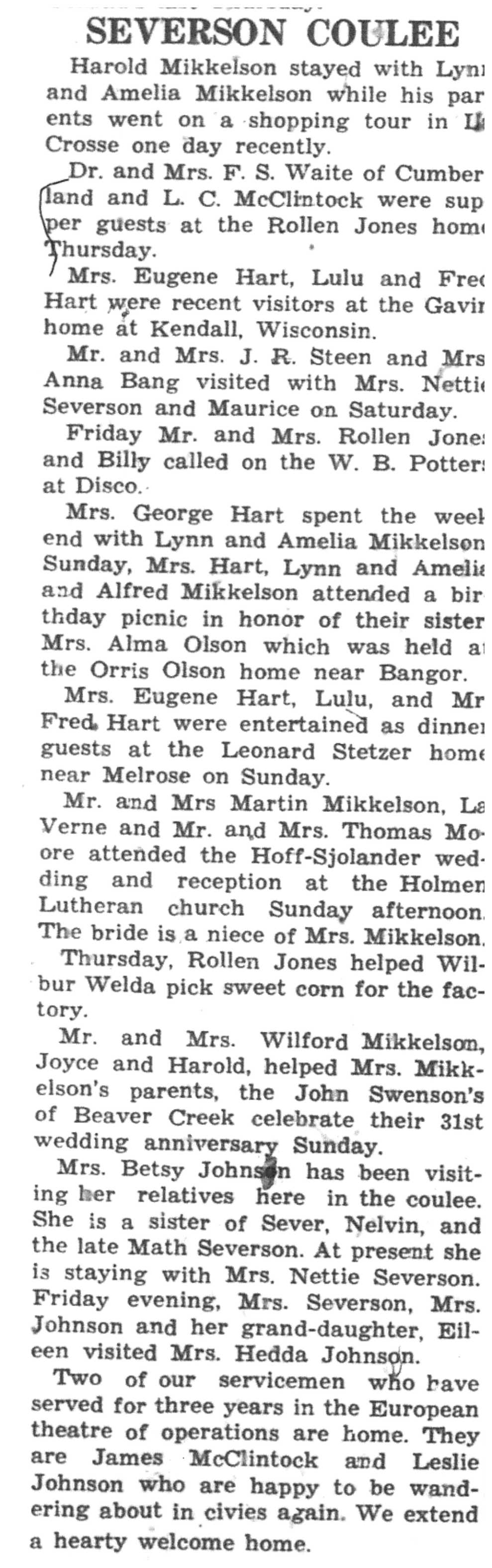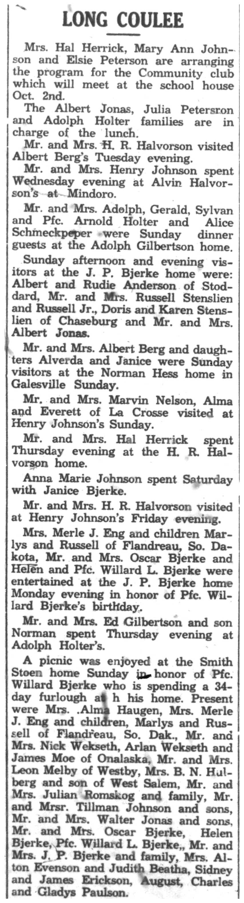 | 1945-9-20 | La Crosse County Record p8 | |