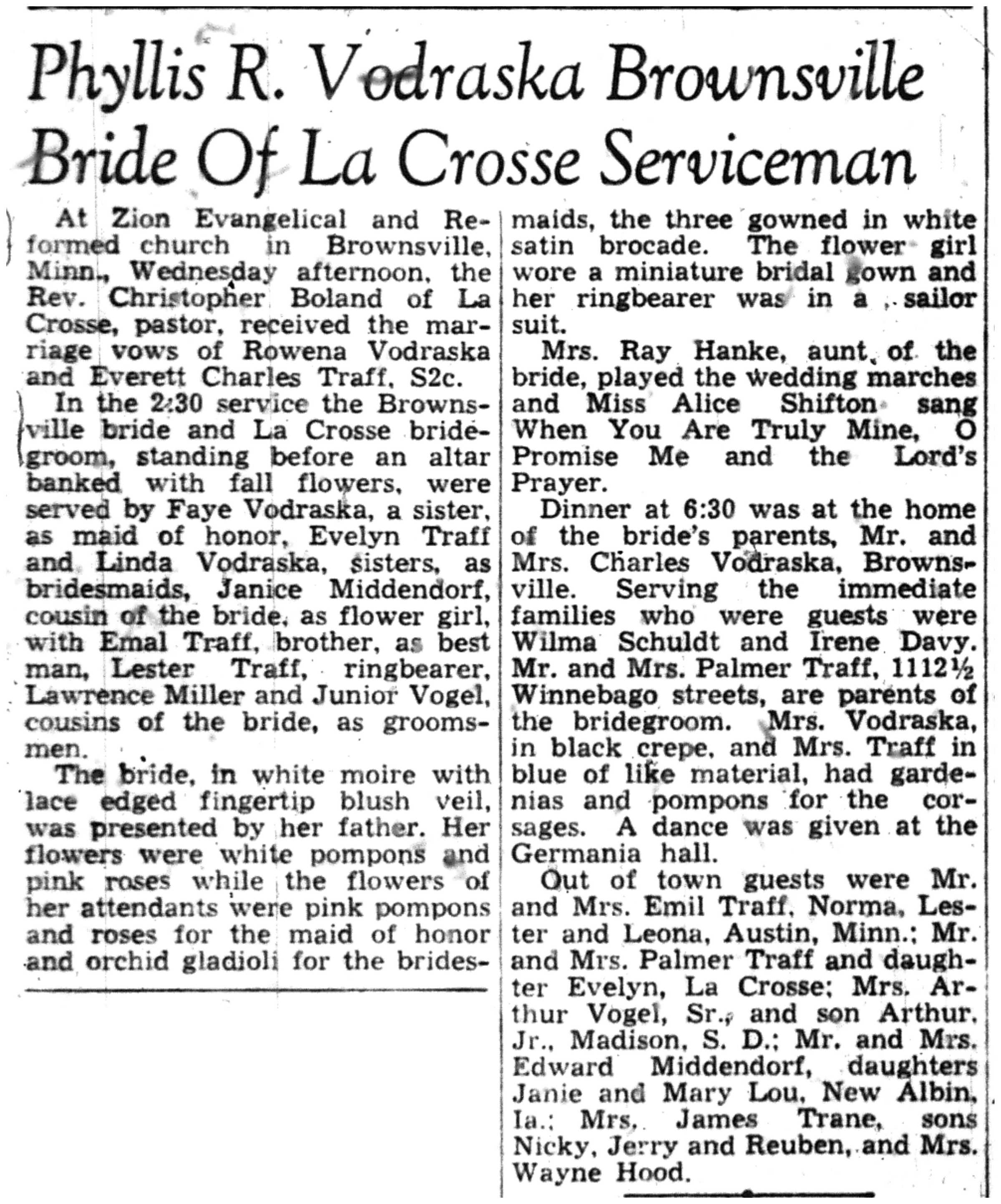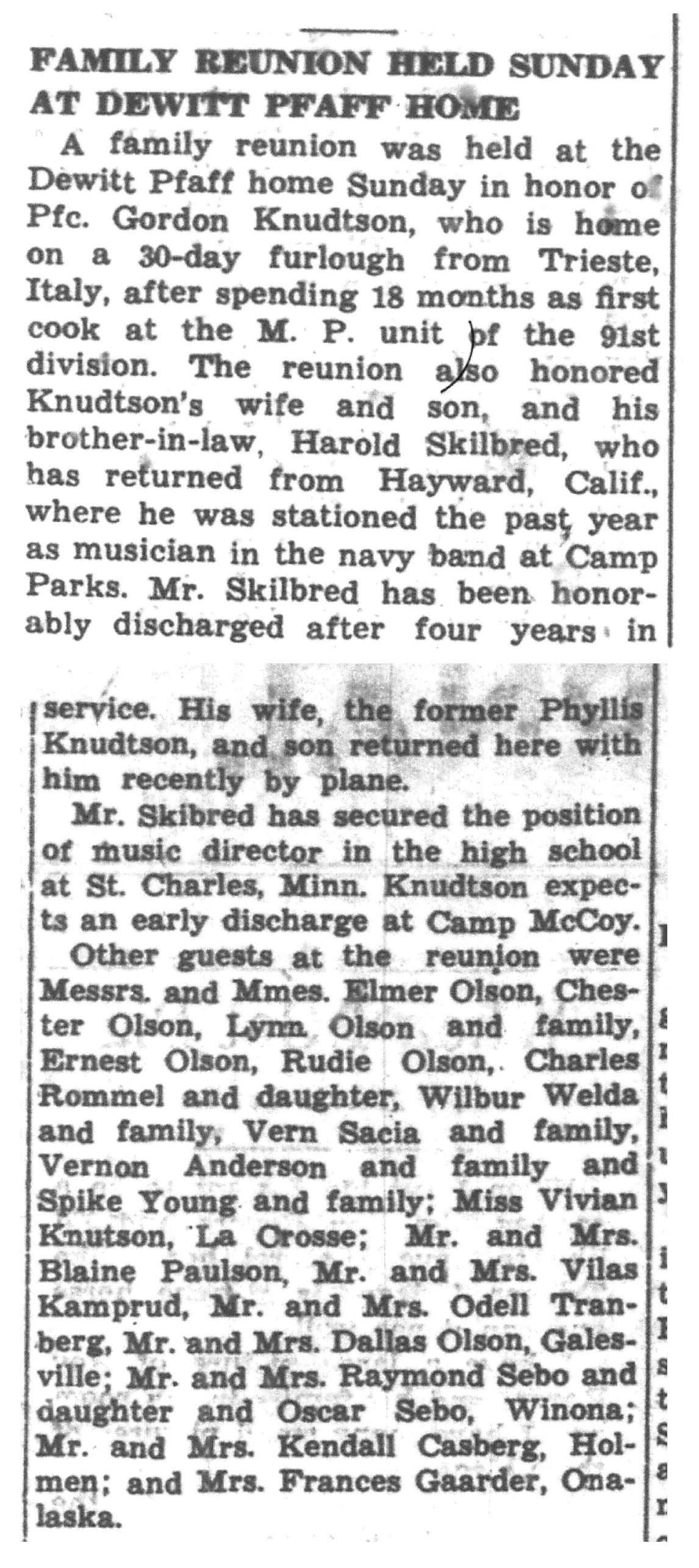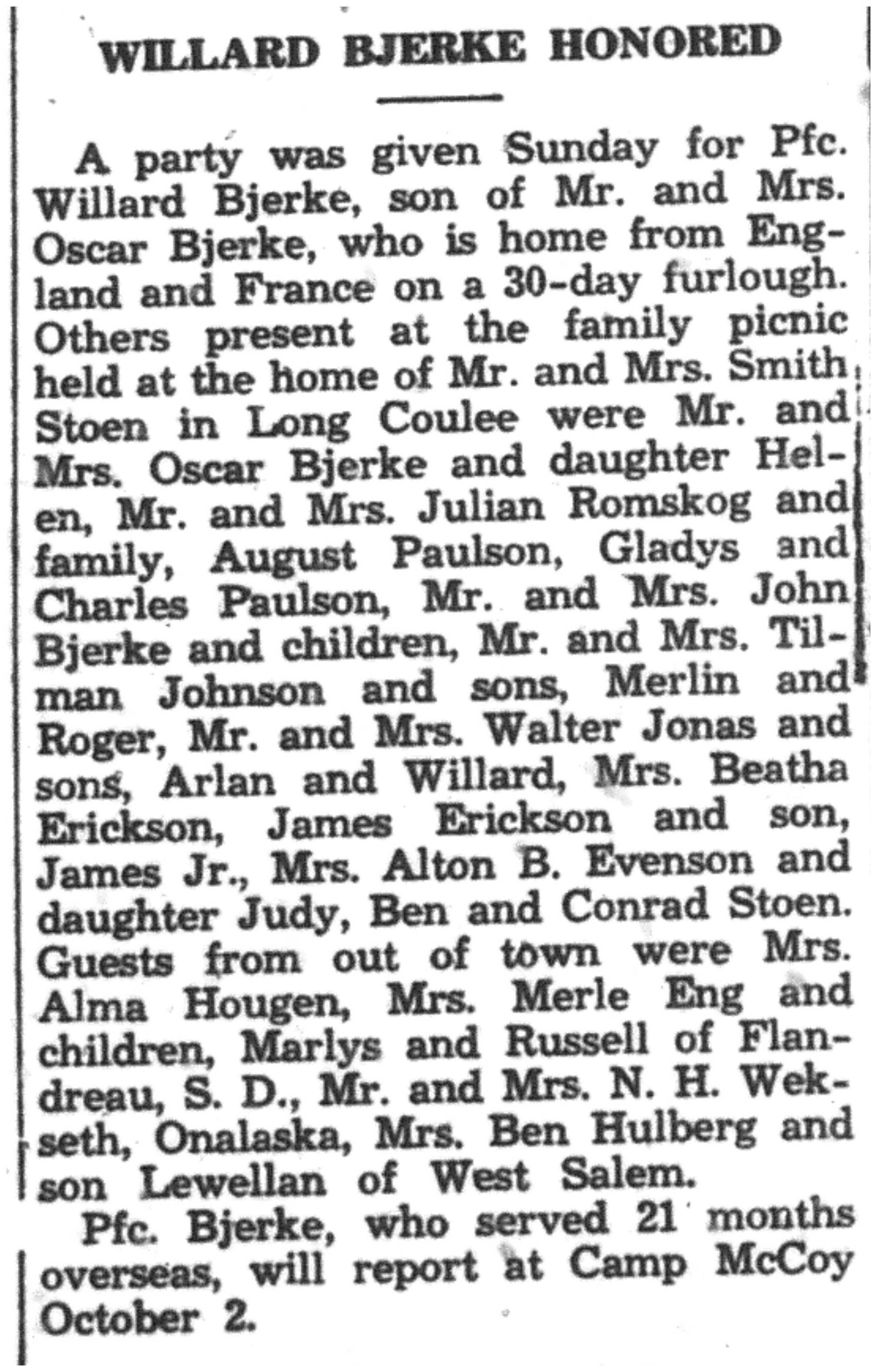 | 1945-9-6 | La Crosse County Record p4 | |