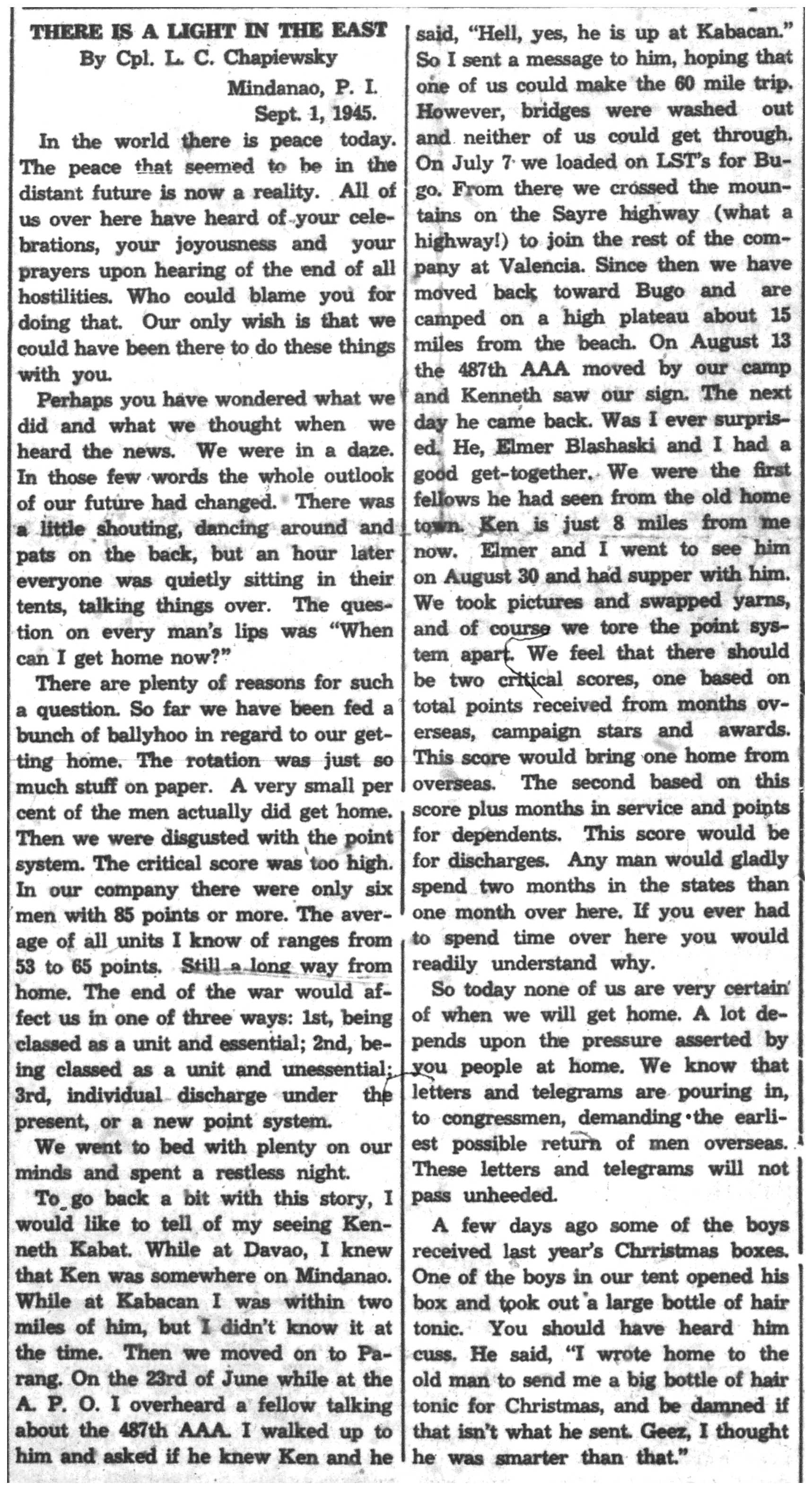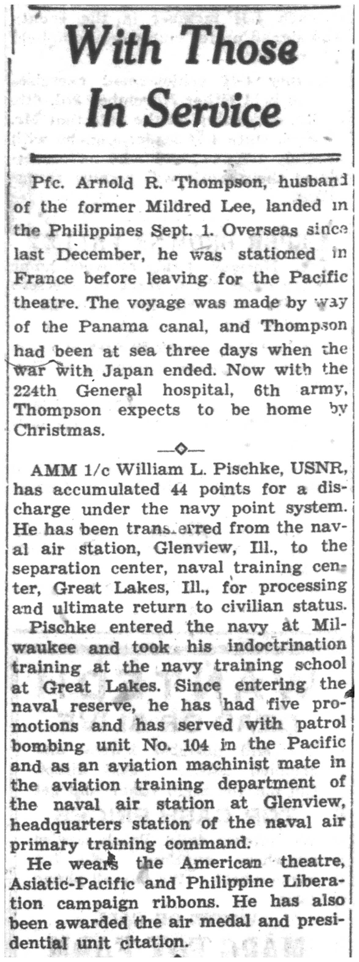 In the Service: September 1945
