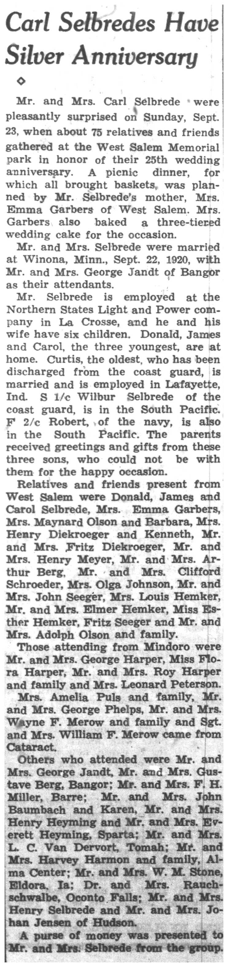 | 1945-9-20 | La Crosse County Record p5 | |