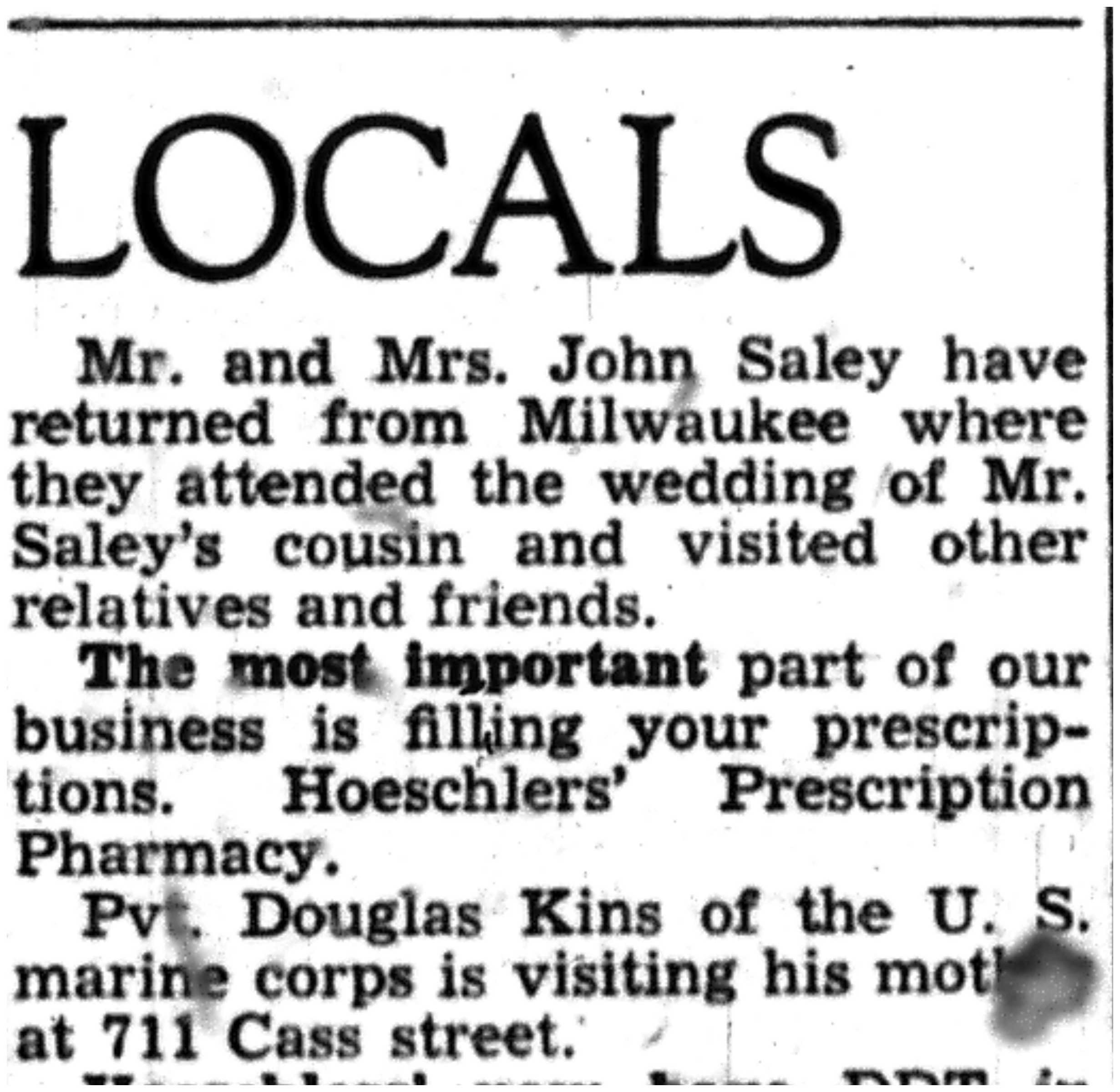 | 1945-9-30 | La Crosse Tribune p11 | |
