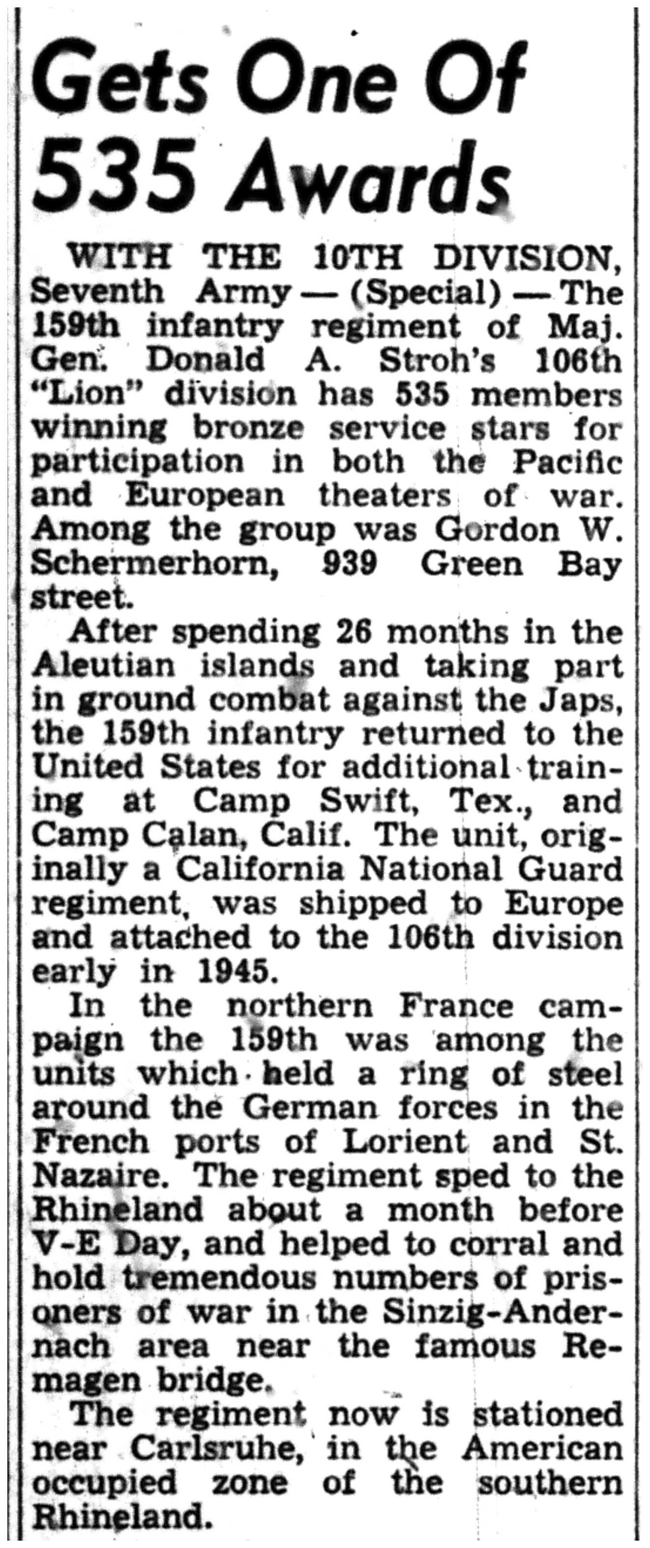 | 1945-9-4 | La Crosse Tribune p3 | |