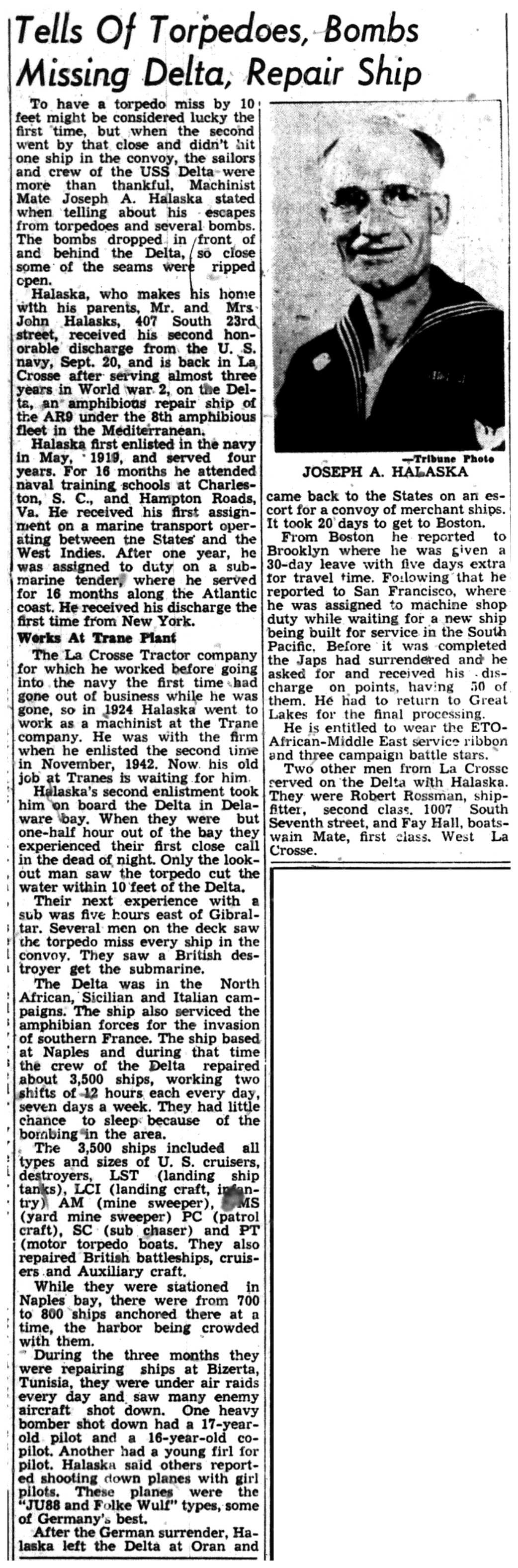 | 1945-9-4 | La Crosse Tribune p3 |