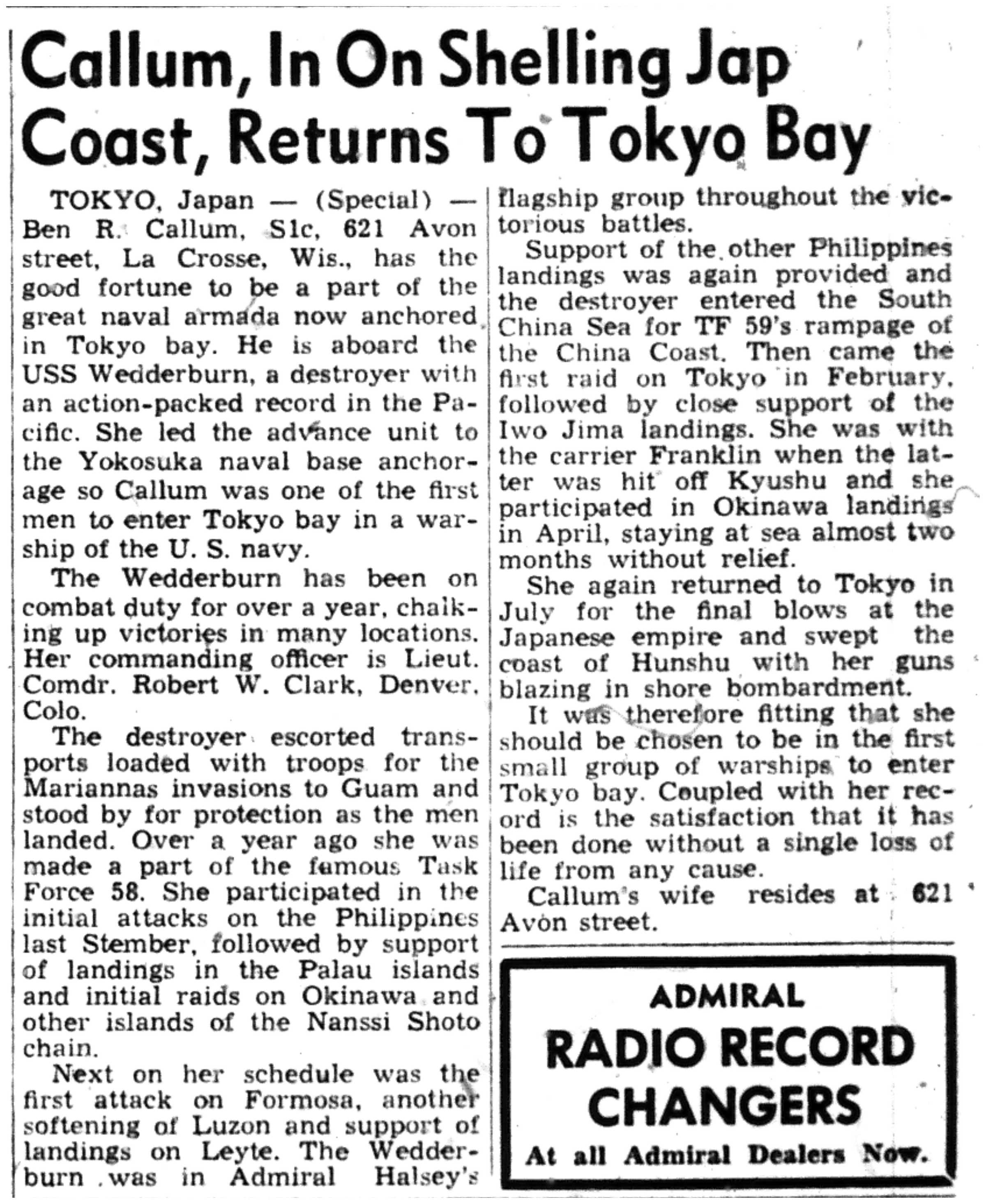 | 1945-9-4 | La Crosse Tribune p7 | |