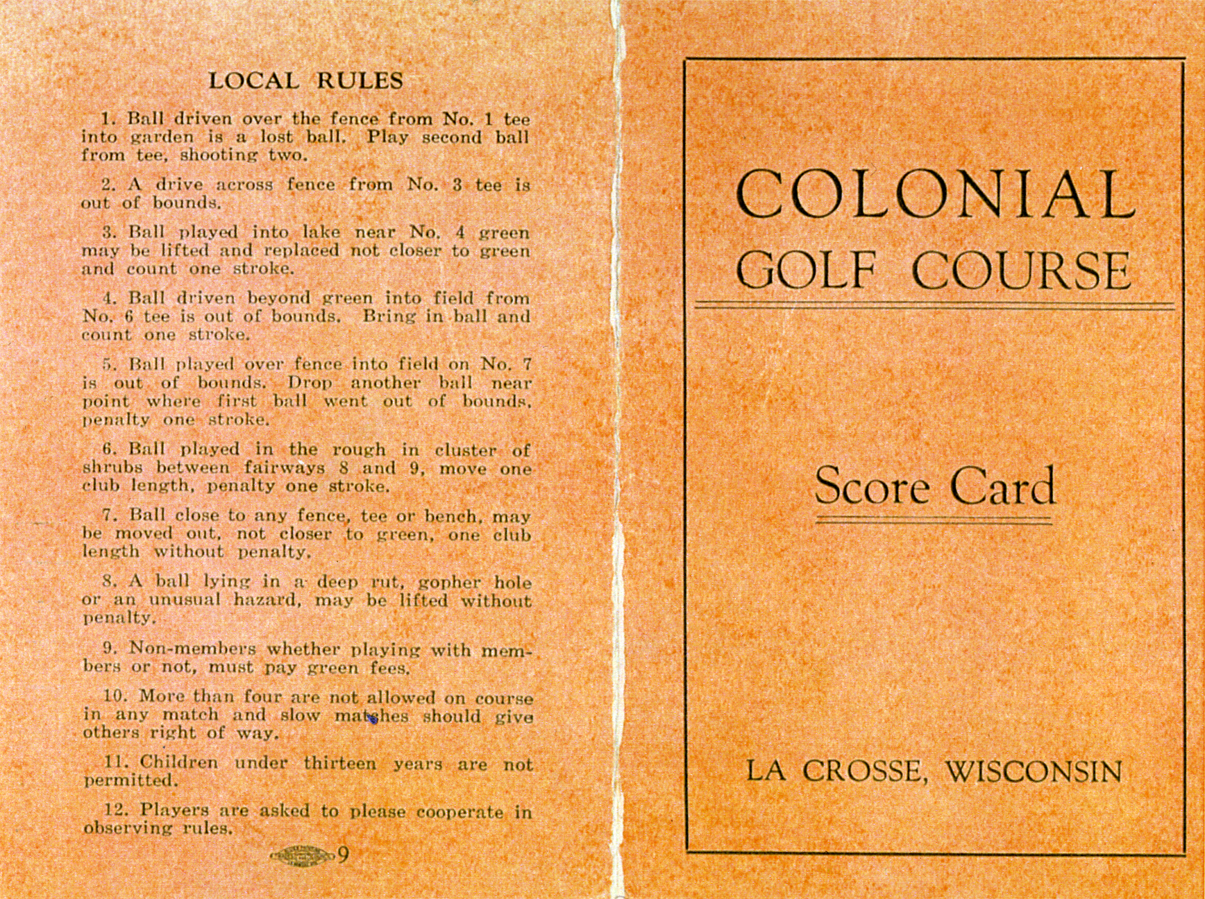 An undated score card from the nine-hole Colonial Golf Course from the collection of the La Crosse Public Library Archives. Click image for larger view.