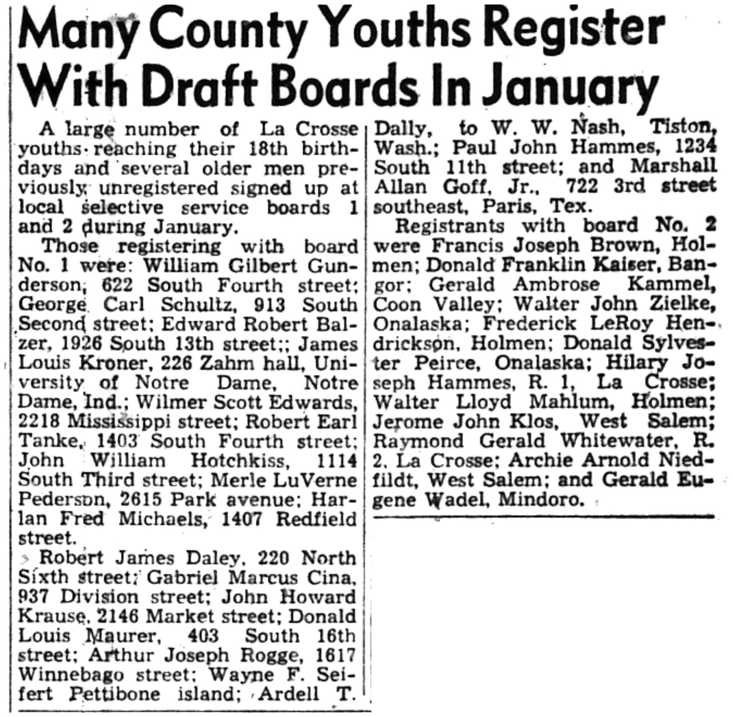 | 1945-2-16 | La Crosse Tribune p7 | |