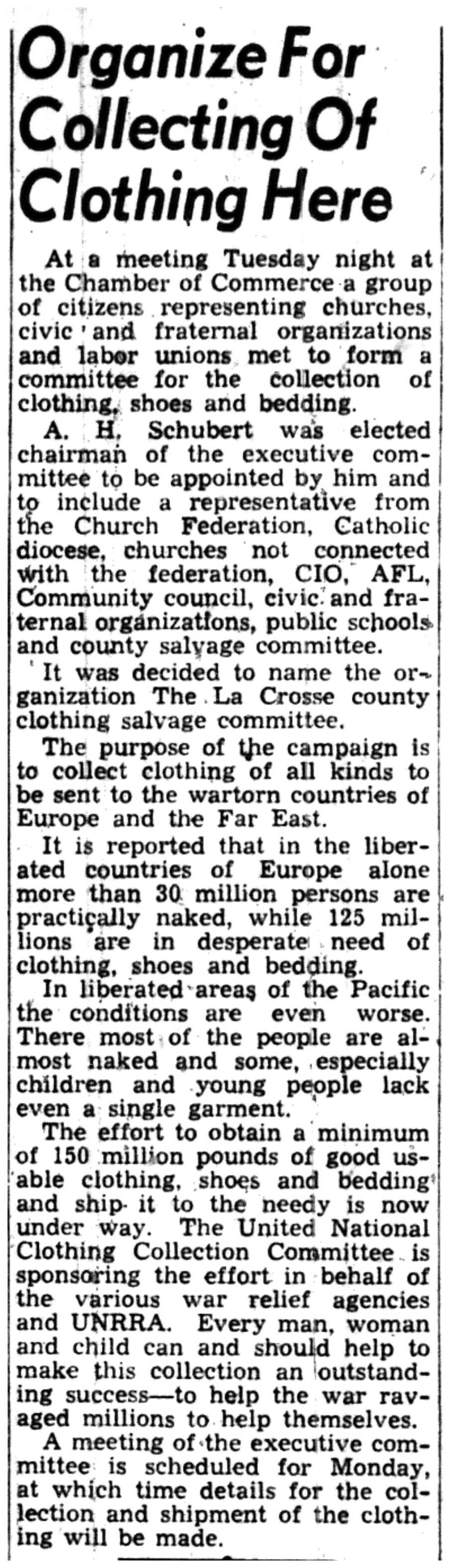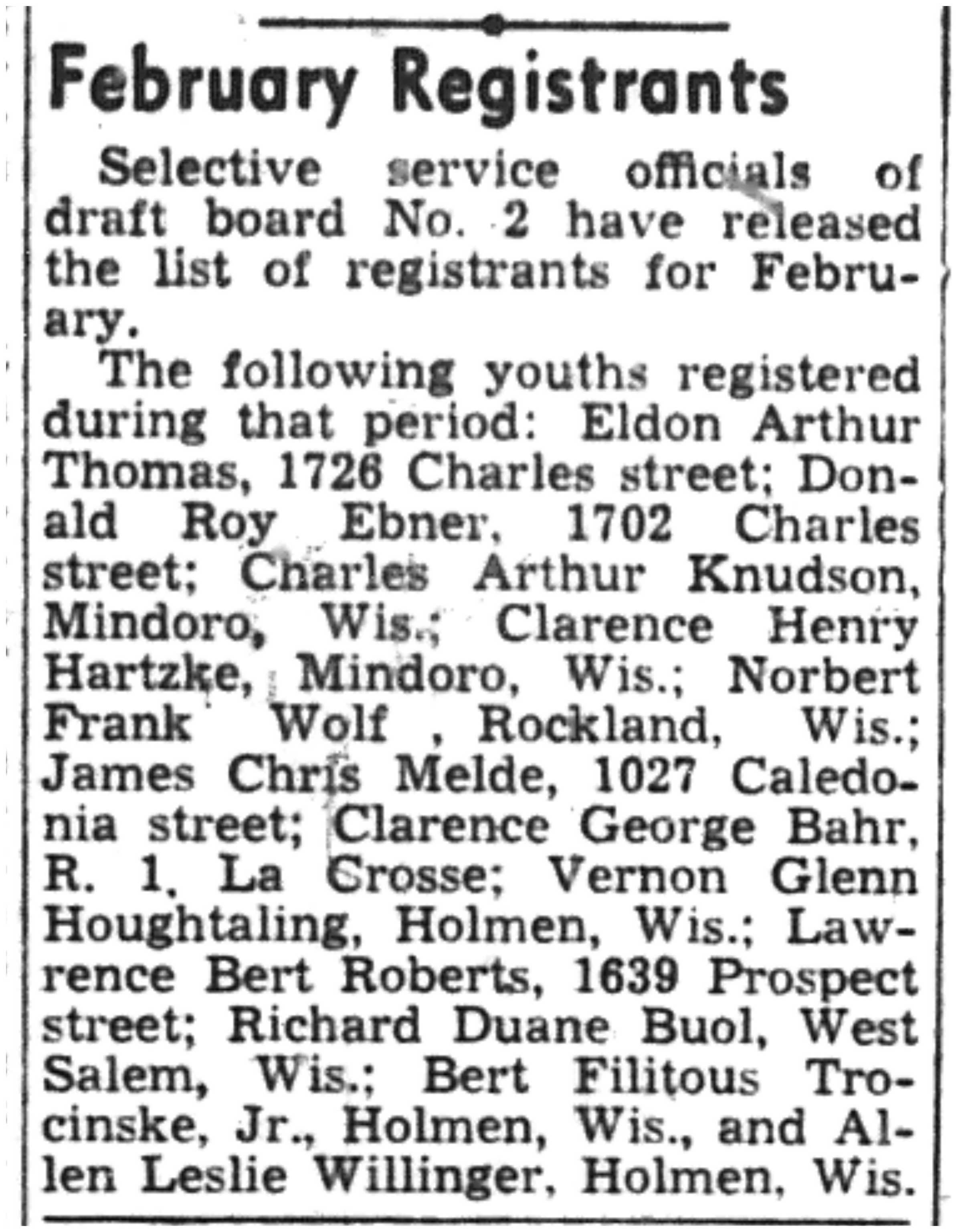 | 1945-3-1 | La Crosse Tribune p9 | |