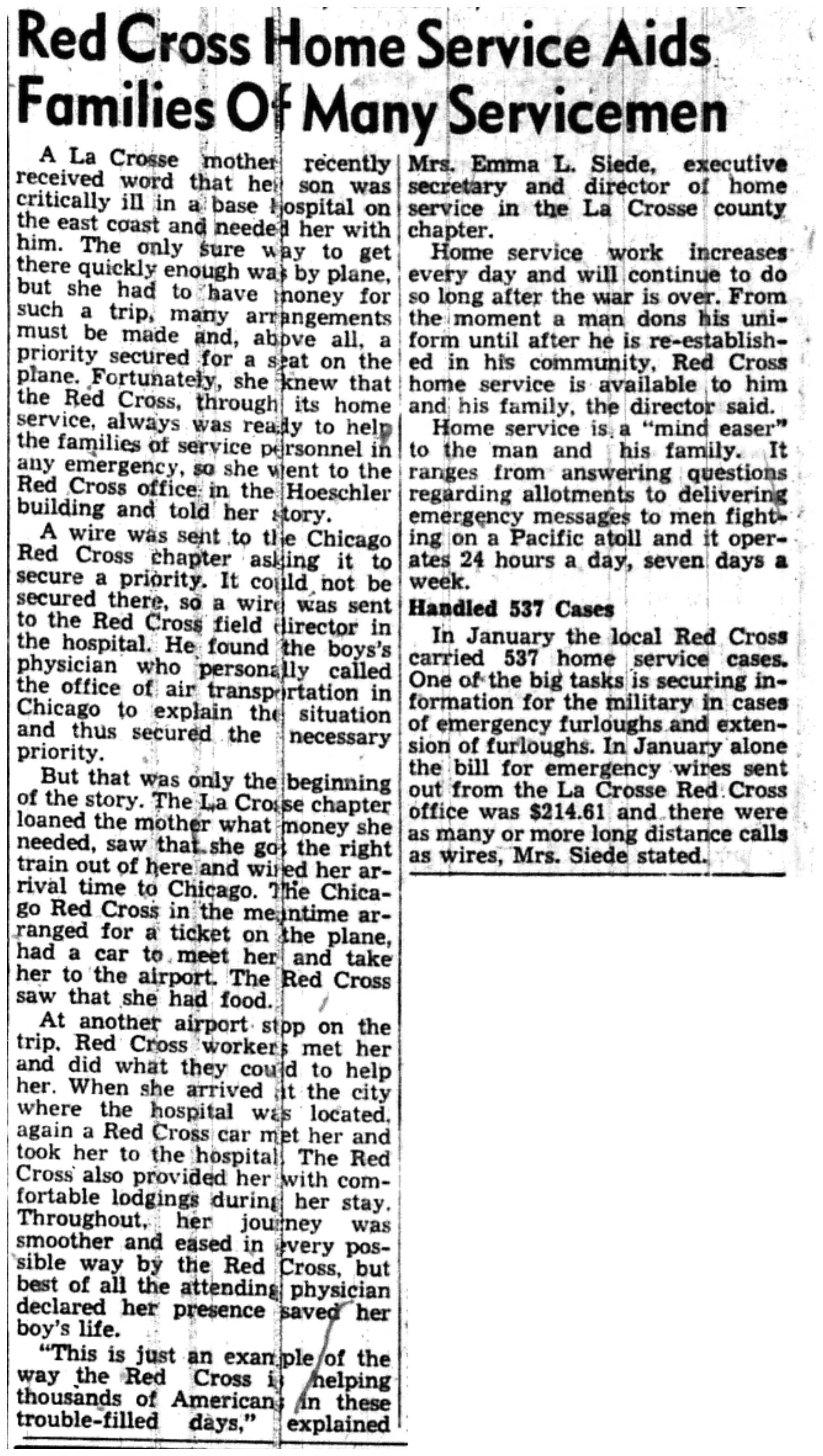 | 1945-3-22 | La Crosse County Record p1 |