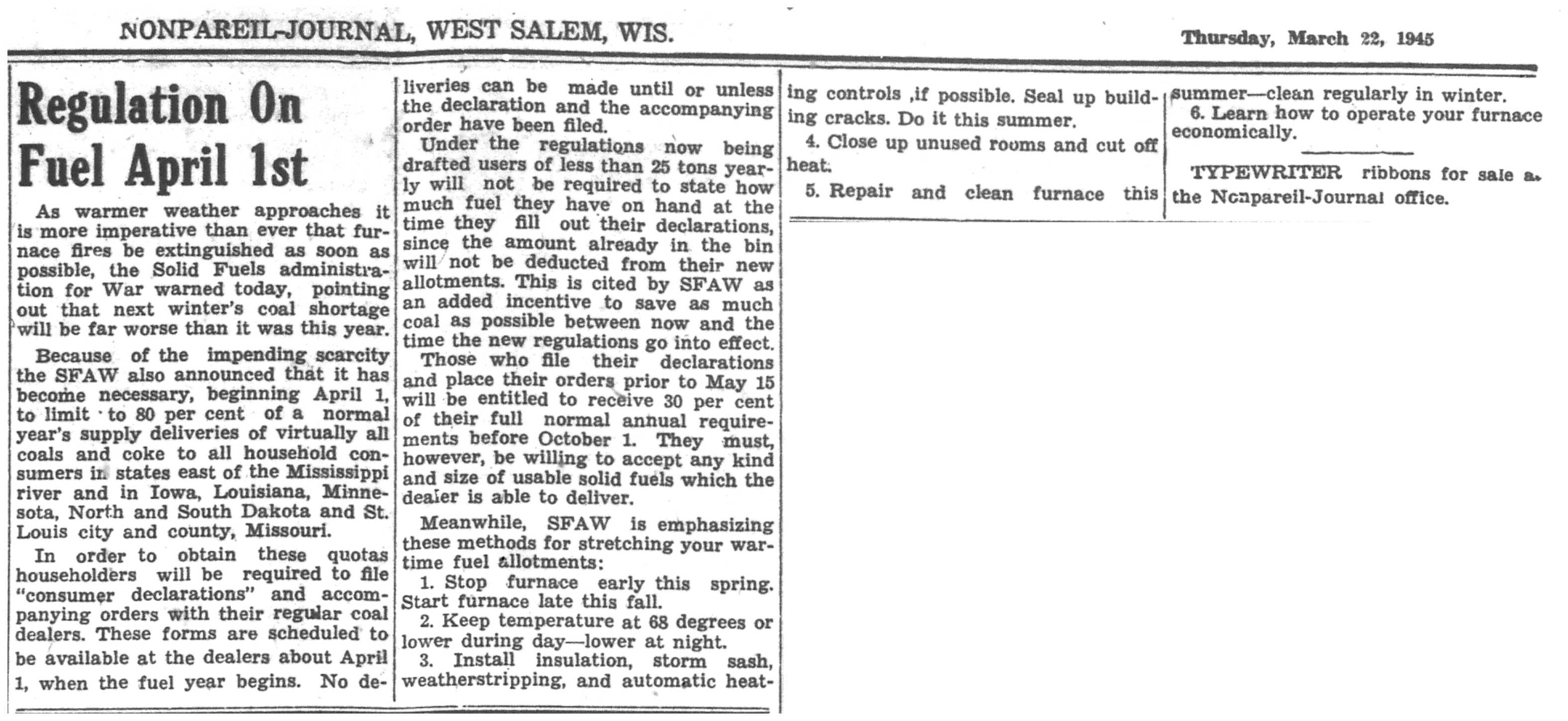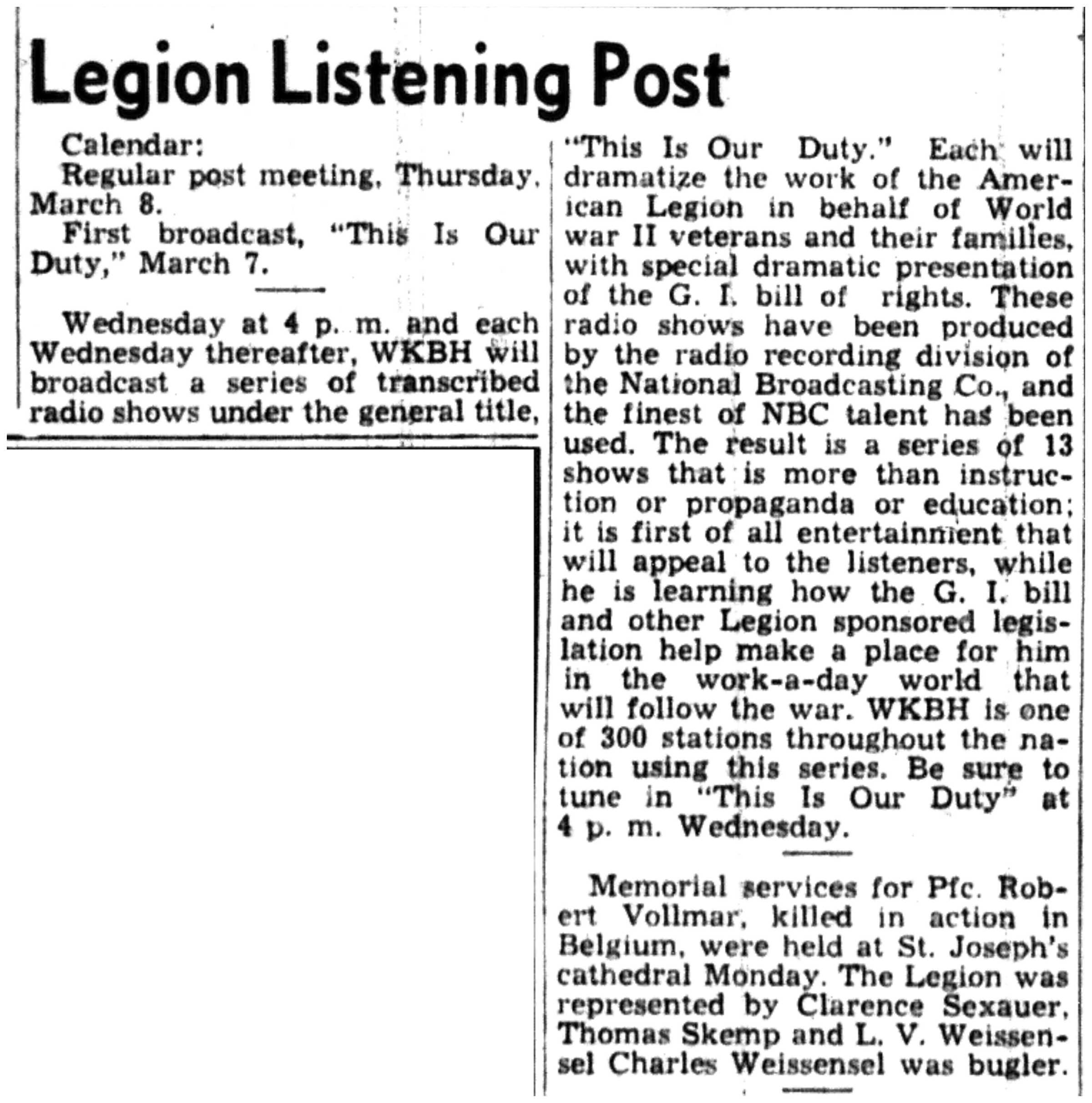 | 1945-3-1 | La Crosse Tribune p4 | |
