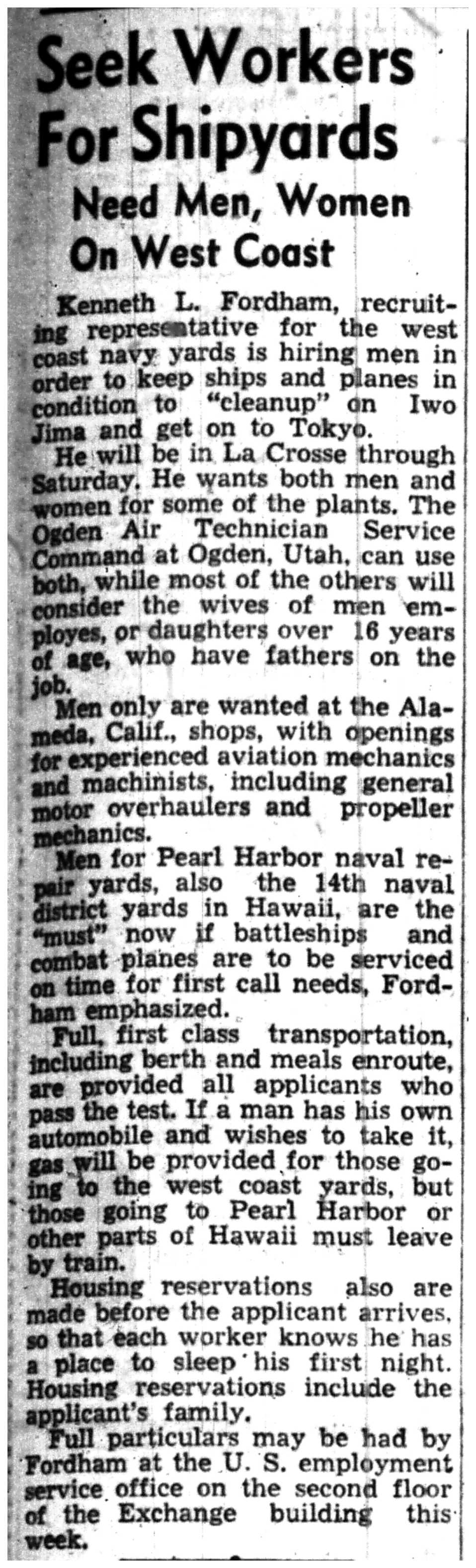 | 1945-3-15 | La Crosse Tribune p17 | |