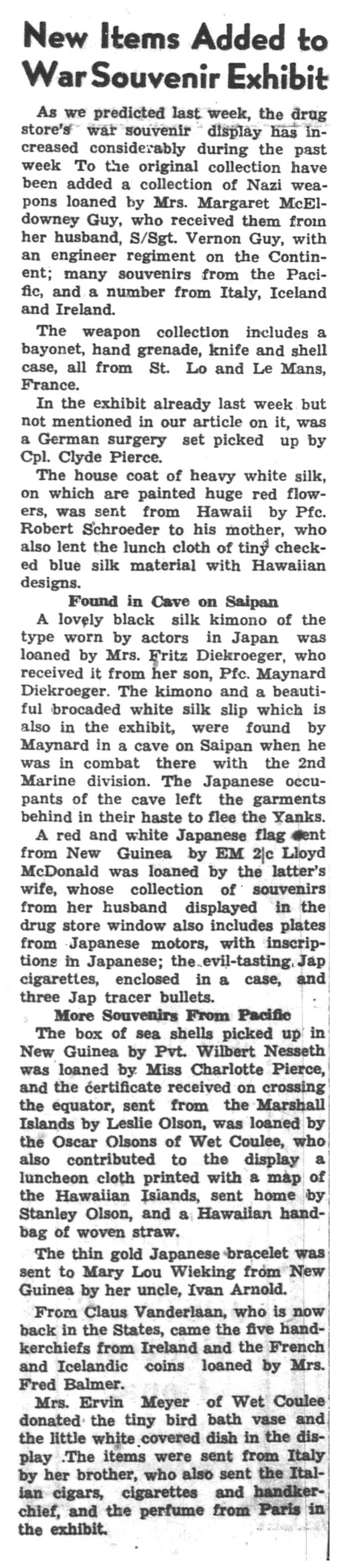 | 1945-3-20 | La Crosse Tribune p9 | |