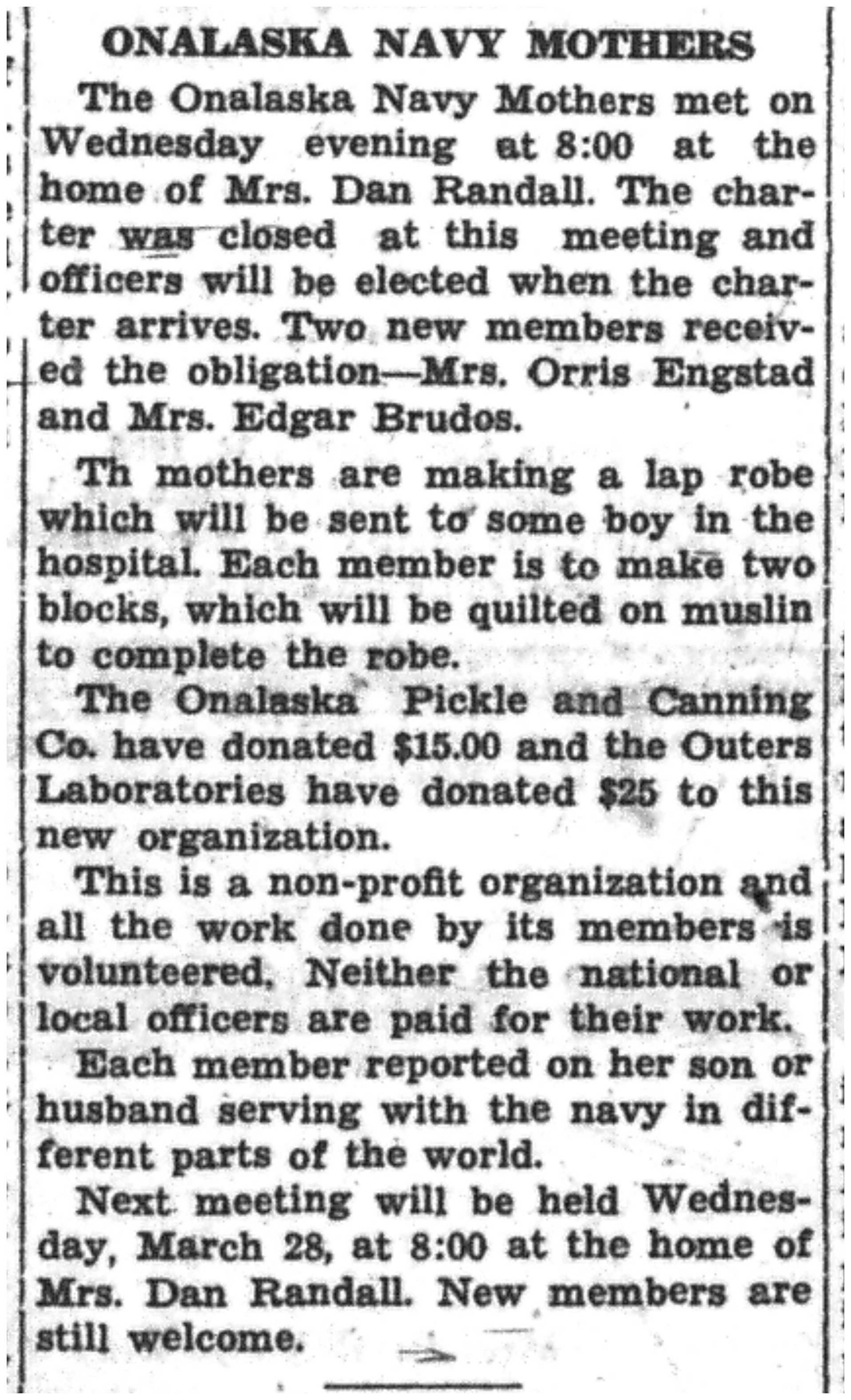 | 1945-3-22 | Non-Pareil Journal p8 | |