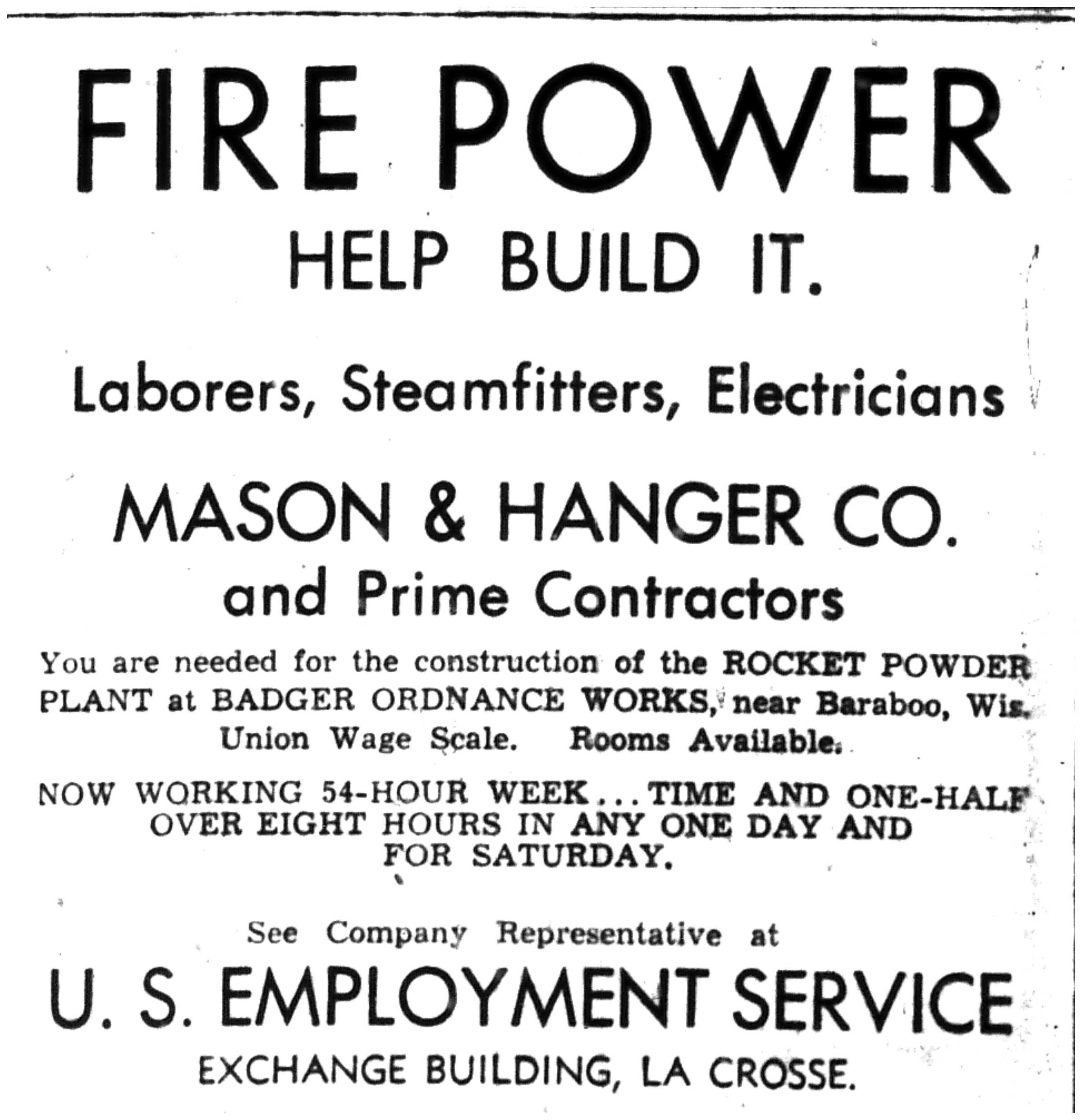 While military operations were going on all over the world, the people of La Crosse County were doing their part for the war effort. Local industries had switched from consumer goods to war material. With so many men in the armed forces, many jobs formerly performed by them were now done by women. Everyone had to deal with rationing of gasoline, rubber, food, and other essentials. The war touched almost every facet of life in some way or another.