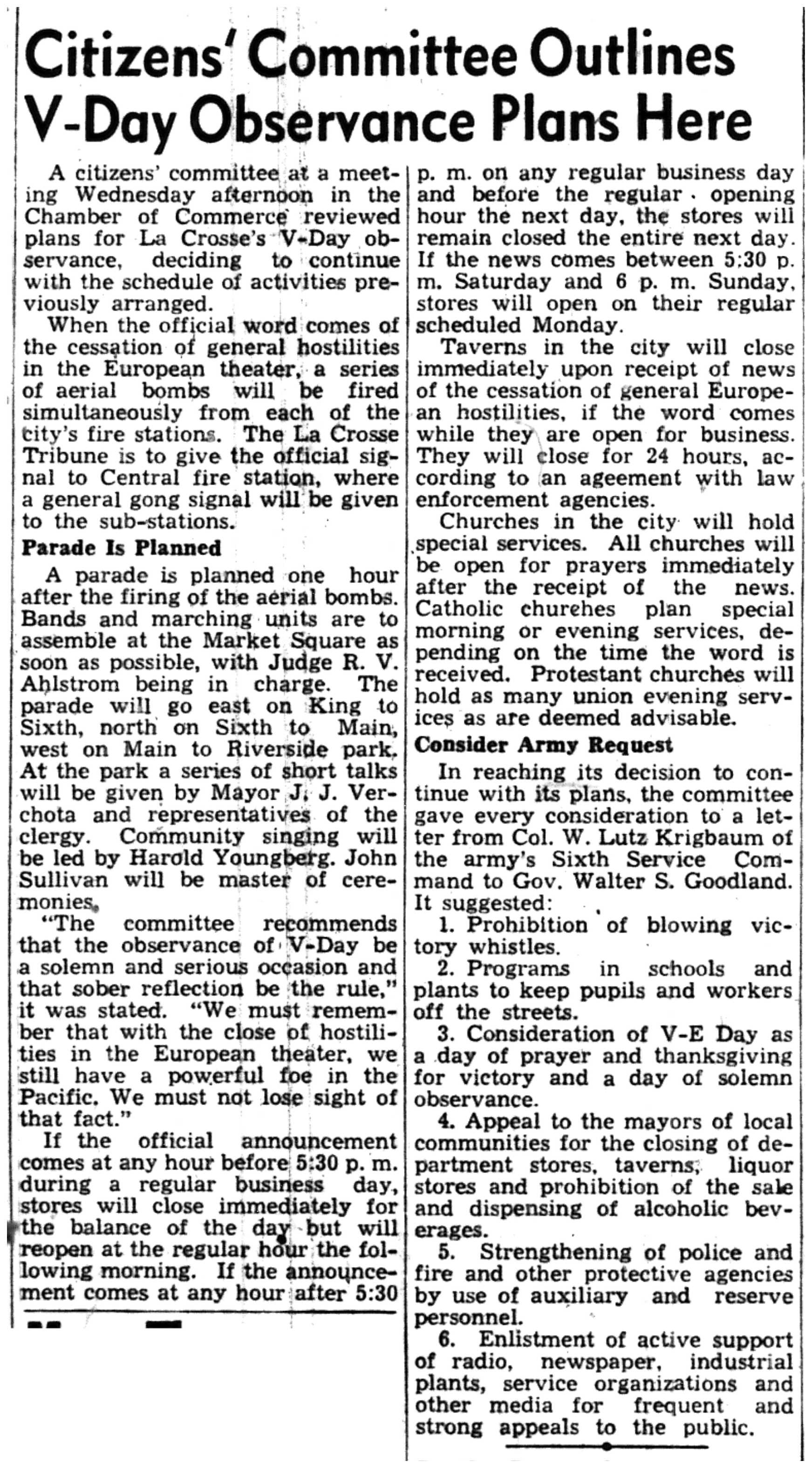 | 1945-3-8 | La Crosse Tribune p1 | |