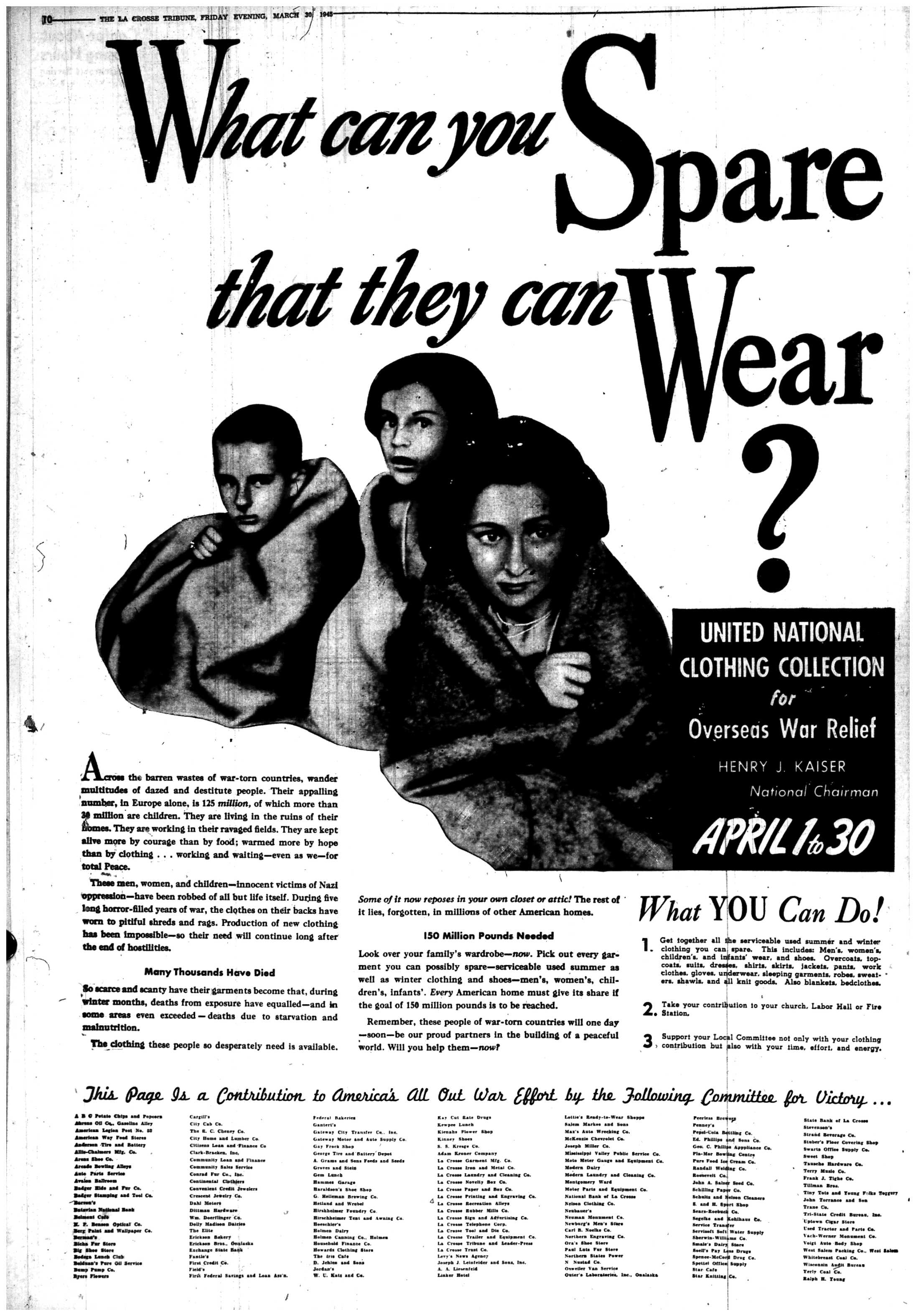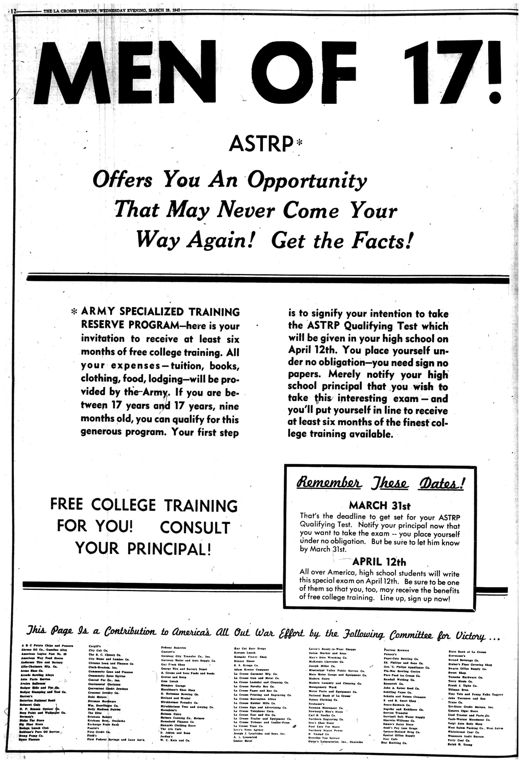 | 1945-3-31 | La Crosse Tribune p1 | |