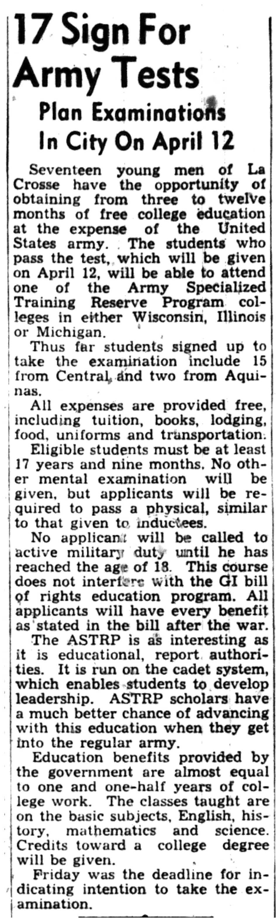 | 1945-3-17 | La Crosse Tribune p9 | |