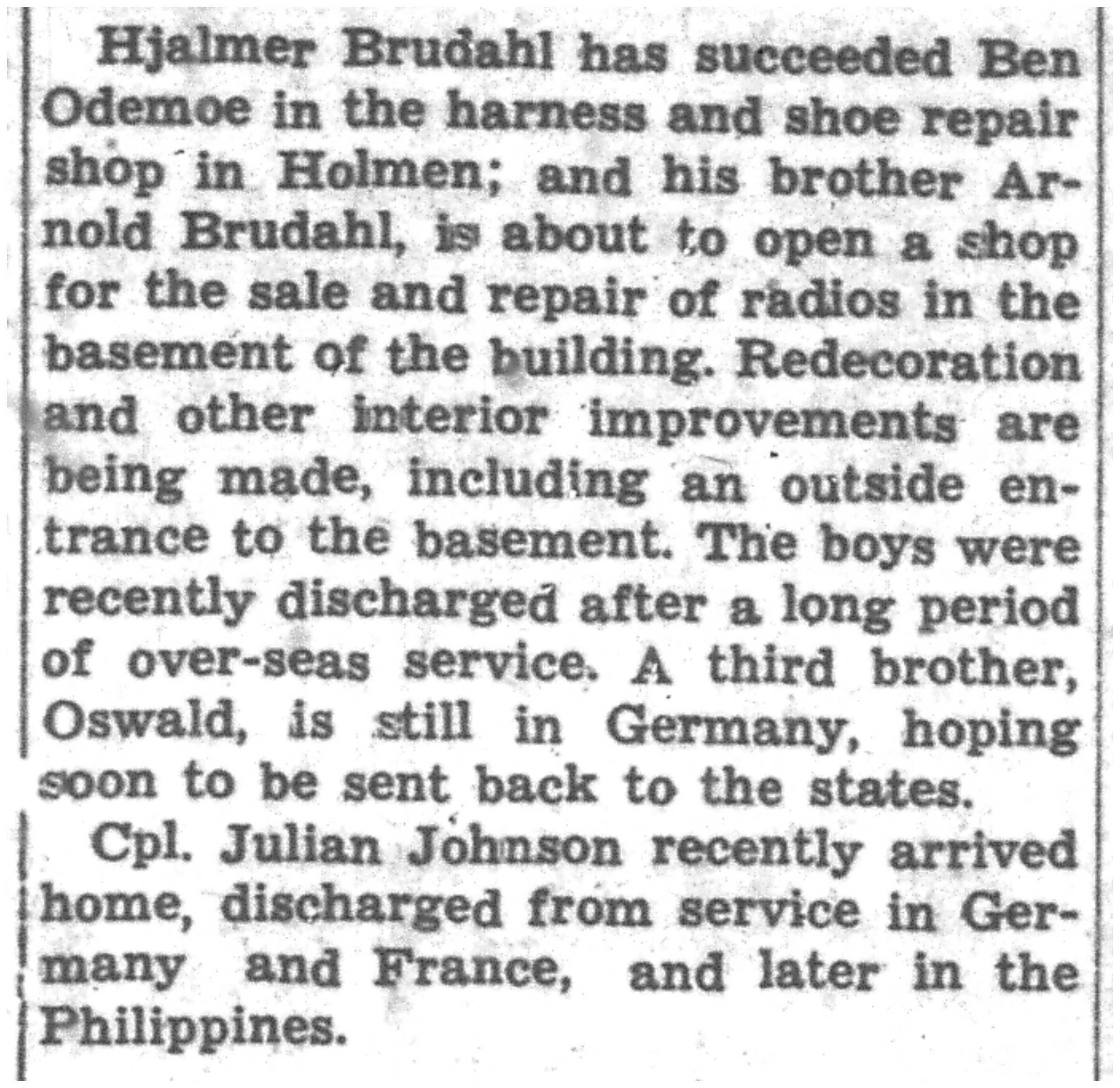 Hjalmer Brudahl, Arnold Brudahl, Oswald Brudahl, Julian Johnson