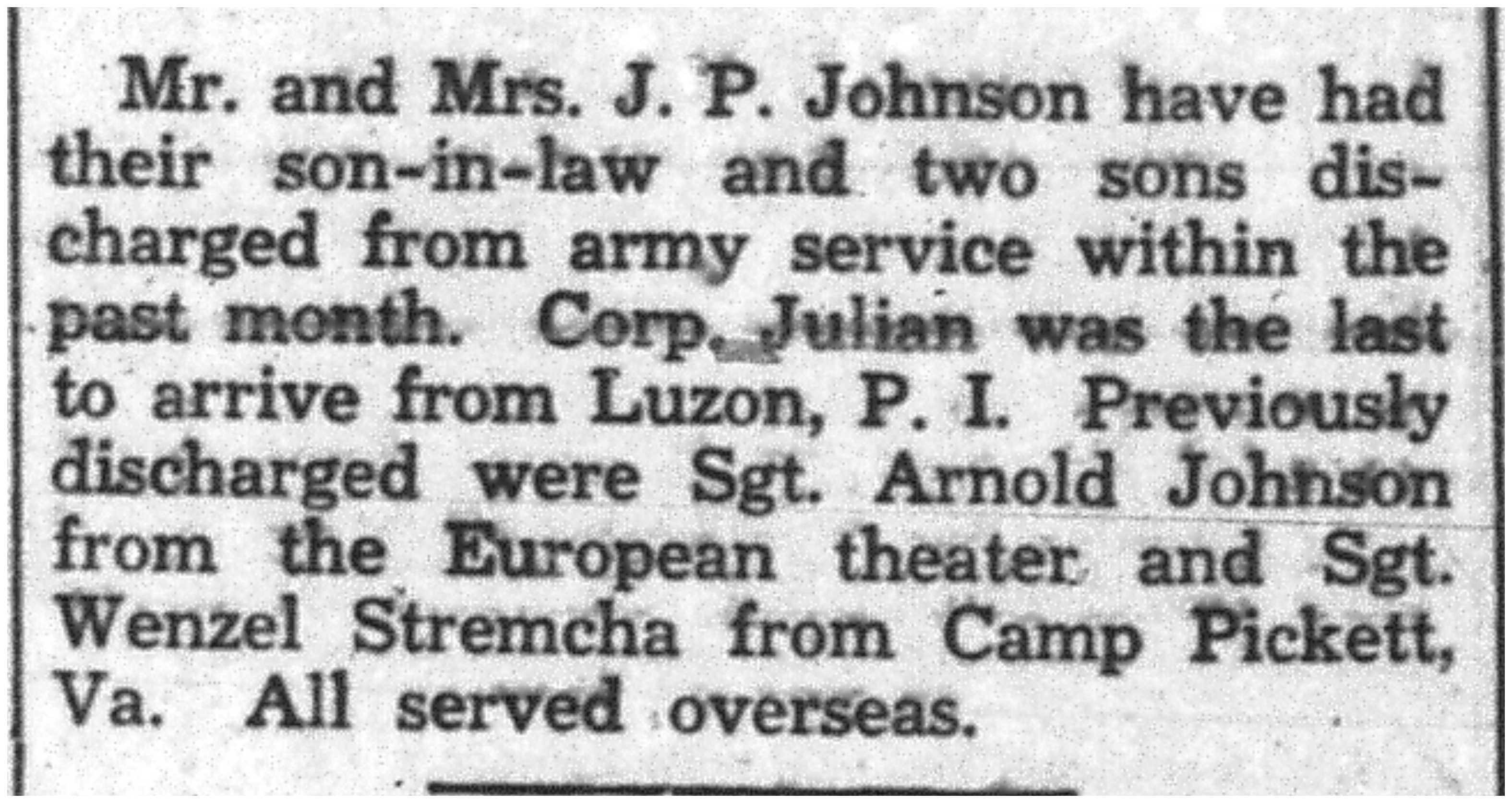 Julian Johnson, Arnold Johnson, Wenzel Stremcha
