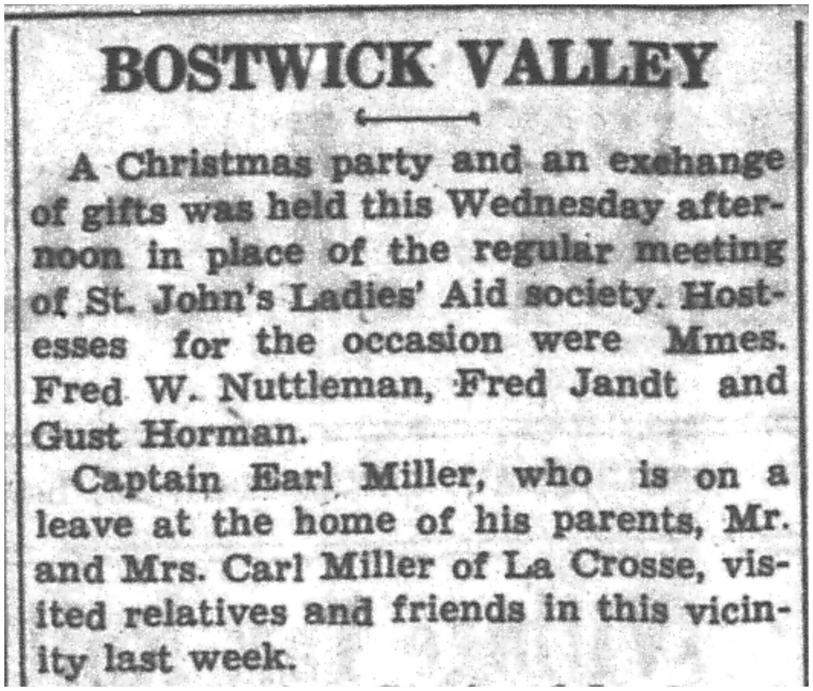 Donald Anderson, Robert Van Tassel, Roy Miller, Arthur Kelly, Grant Koch, Kenneth Doherty, Arthur Wittenberg, Patricia McLaughlin, R E Howland Jr, Warren Kuettel, Patrick Kelly, Marvin Philpot, Robert LaFleur, Raymond Waldel, Harold Evenson, Wilbur Spreiter, Robert Gibbons, Willard Parker, Bernard Hilke, Earl Hansen