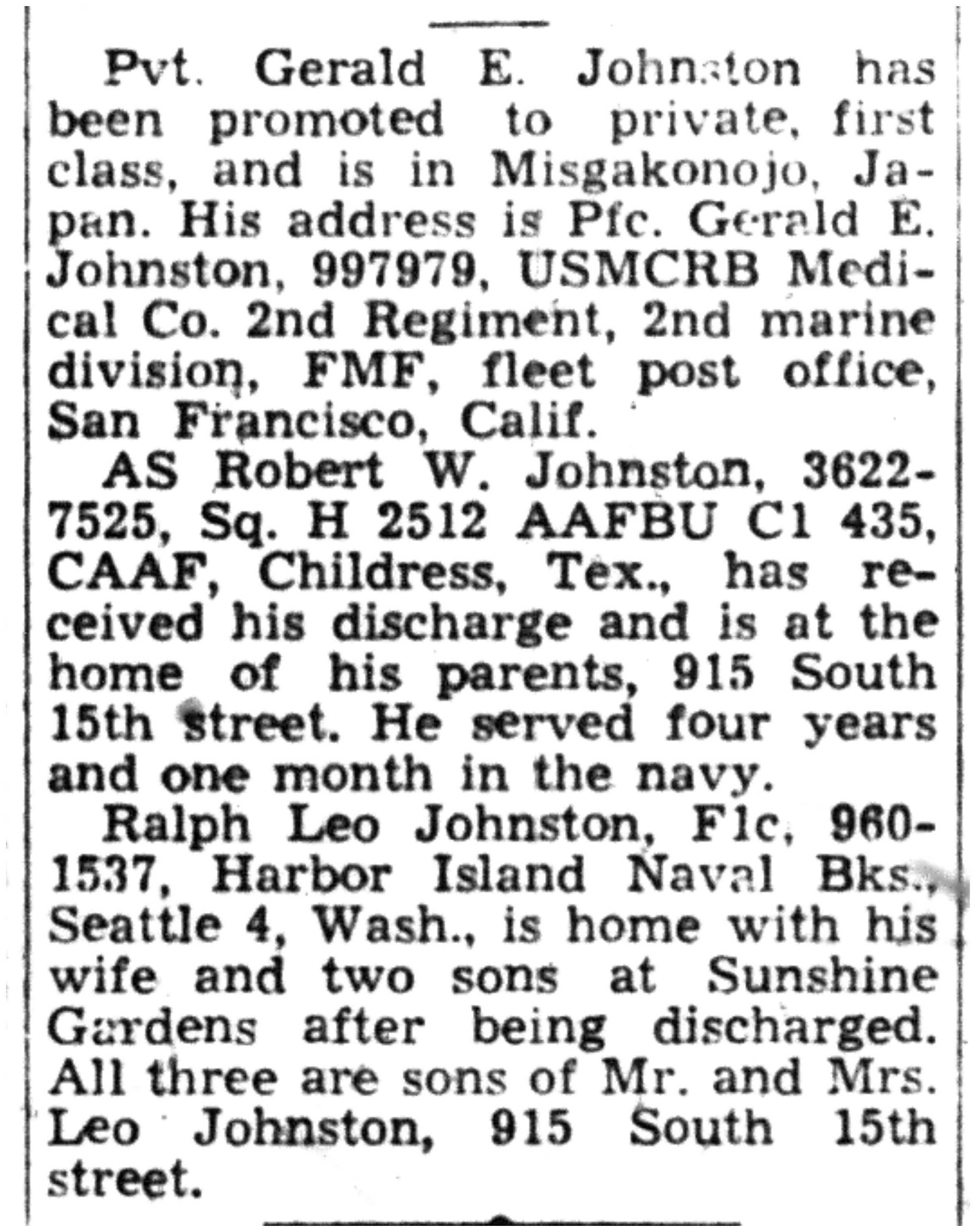 Gerald Johnston, Robert Johnston, Ralph Johnston