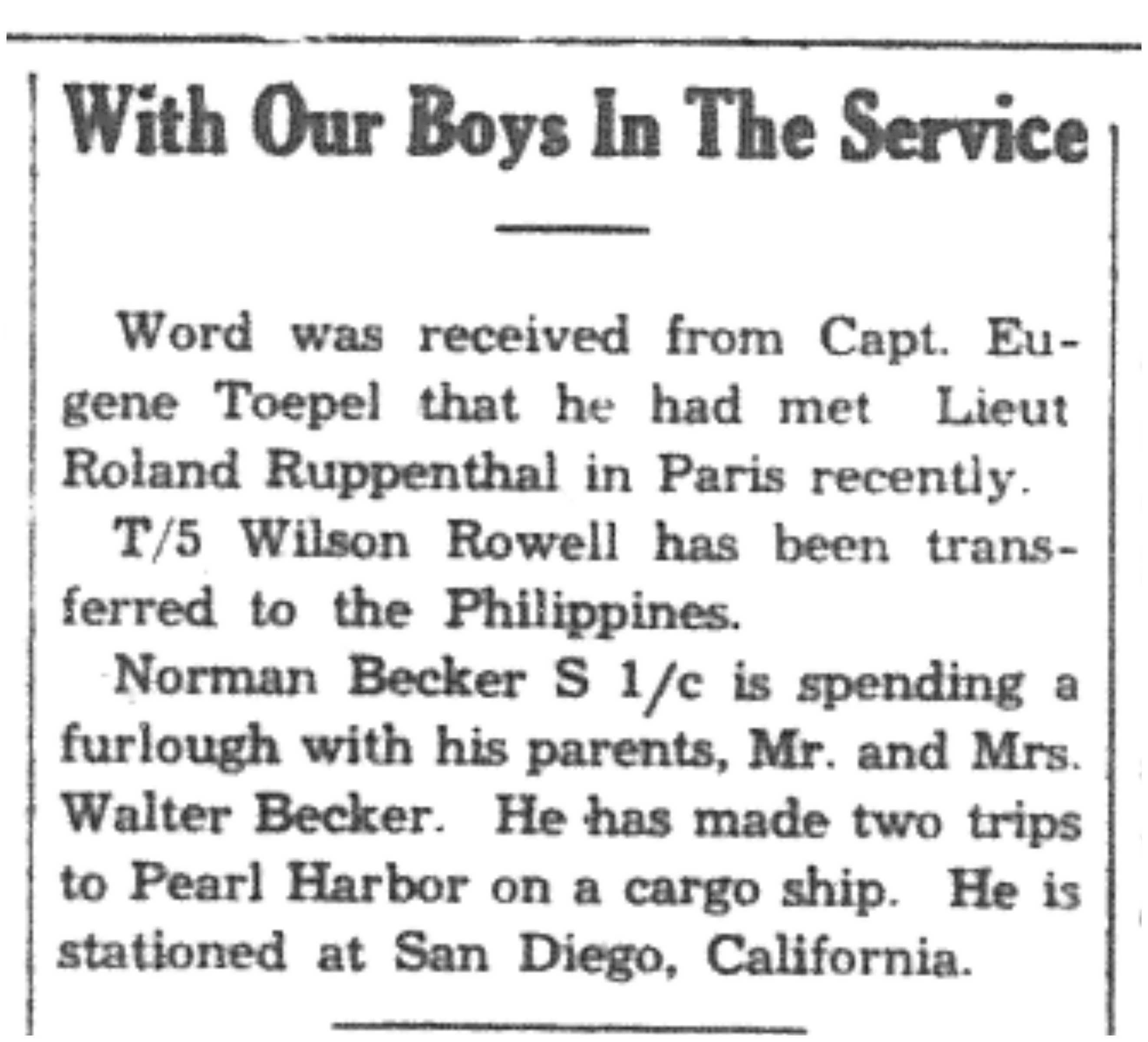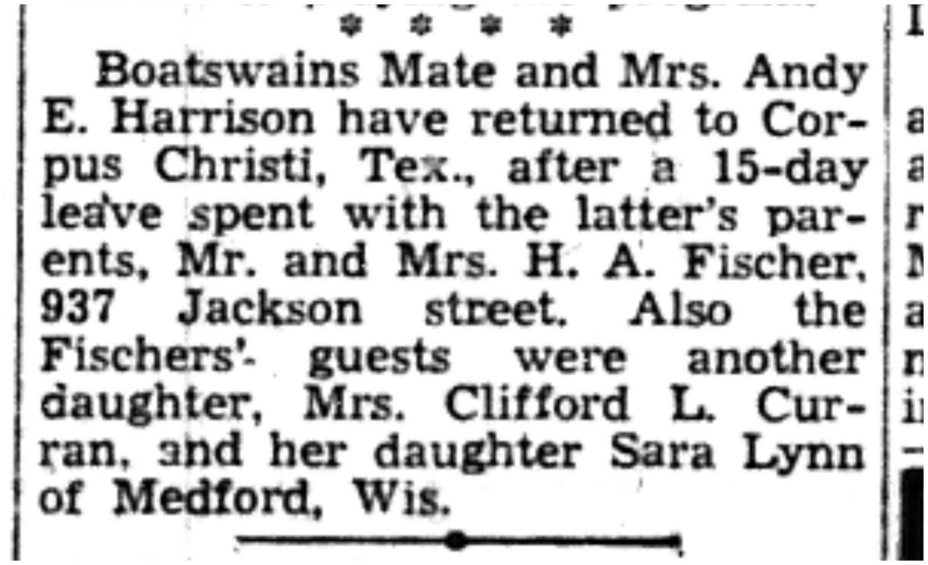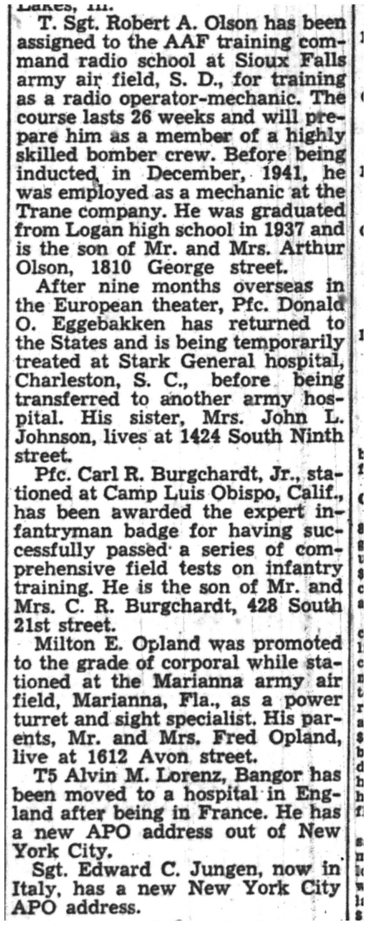 | 1945-2-6 | La Crosse Tribune p4 | |