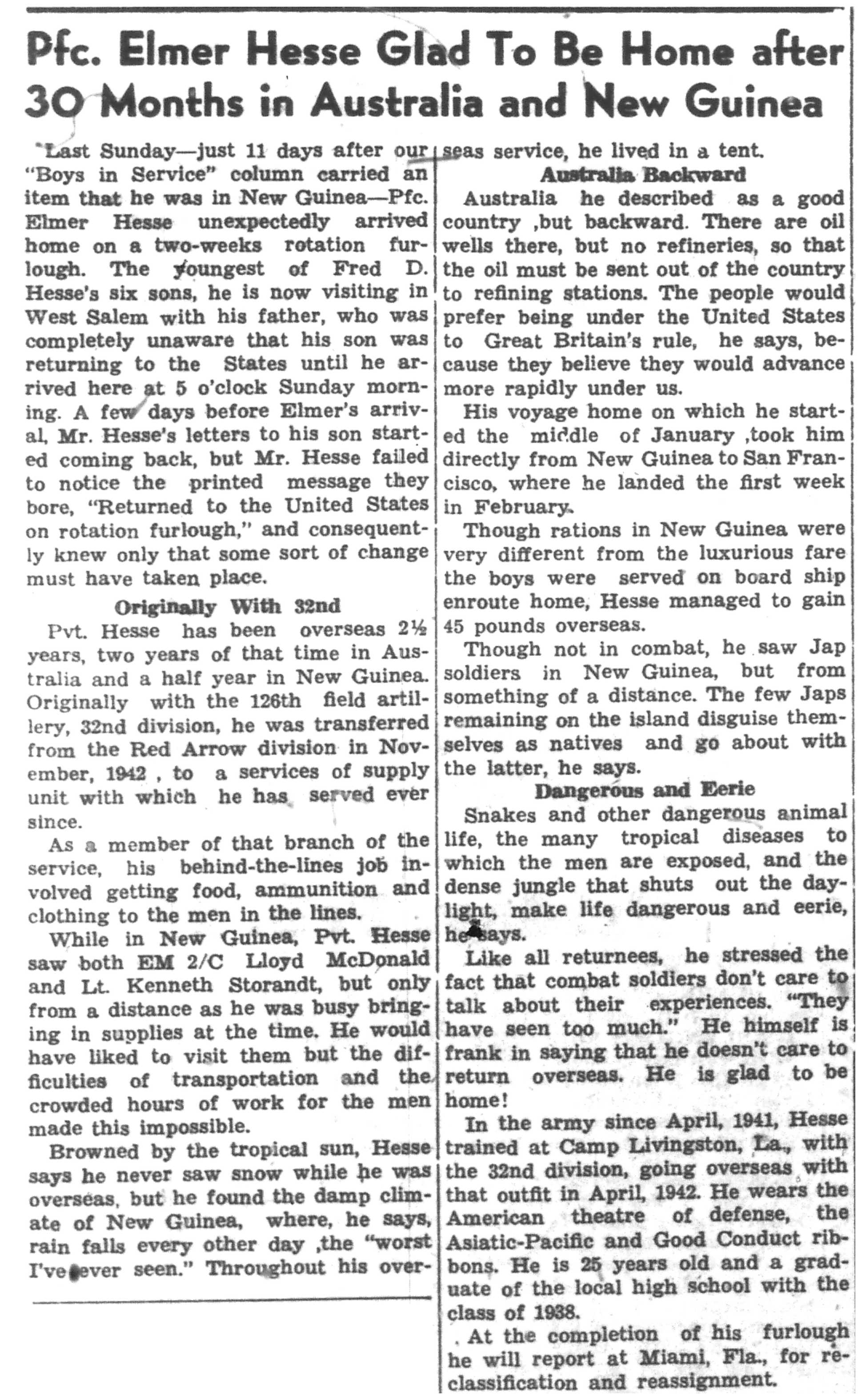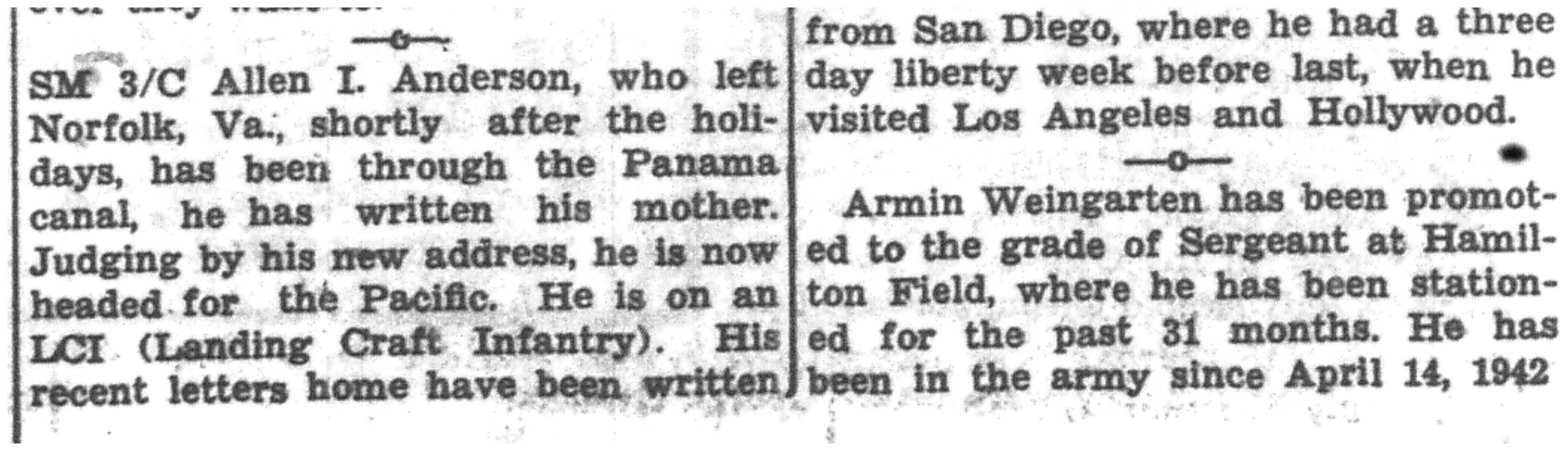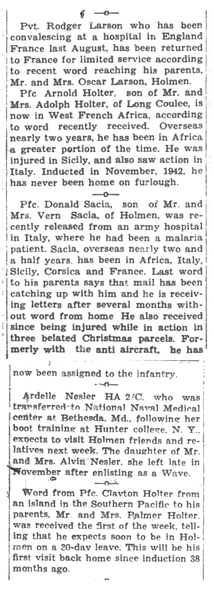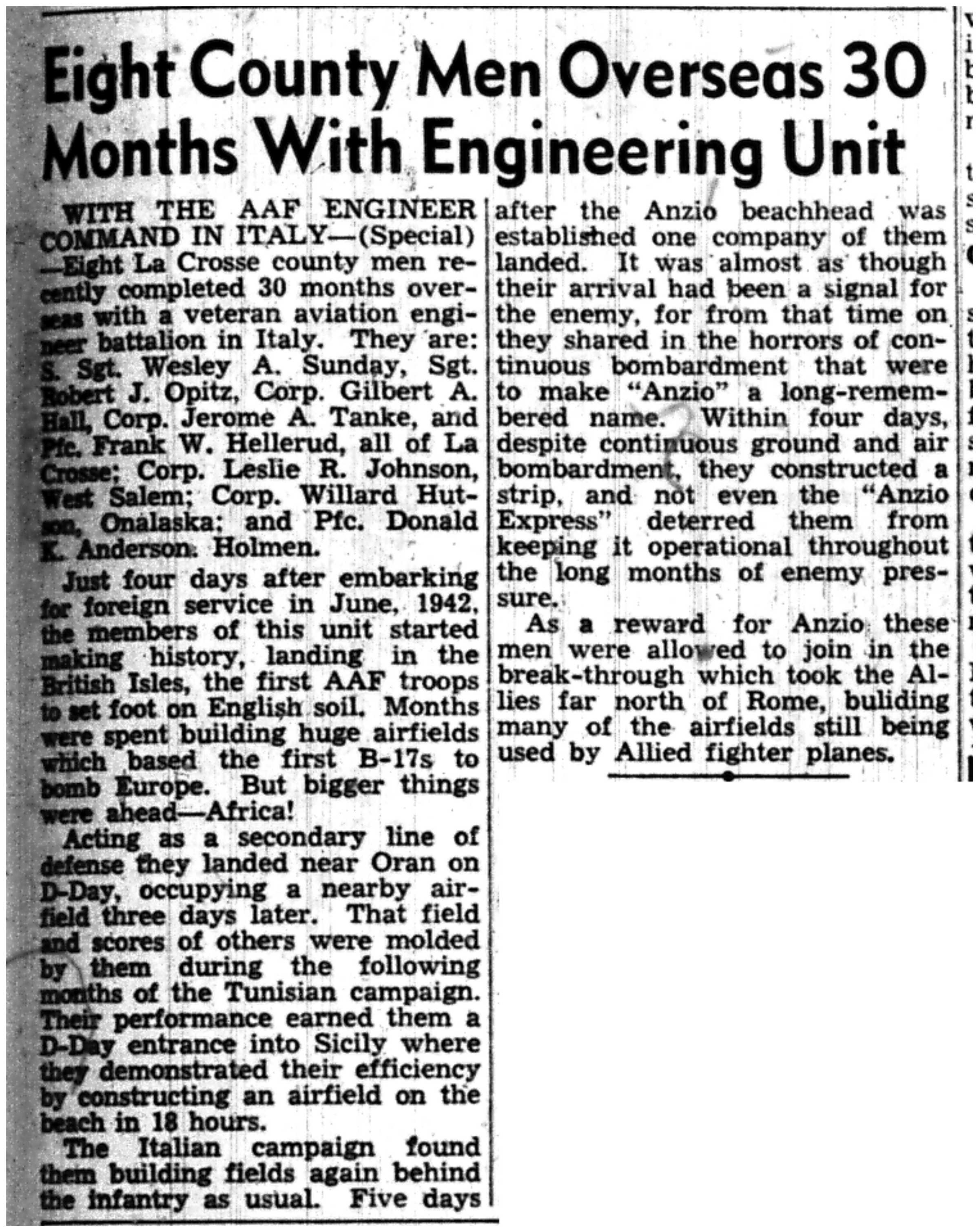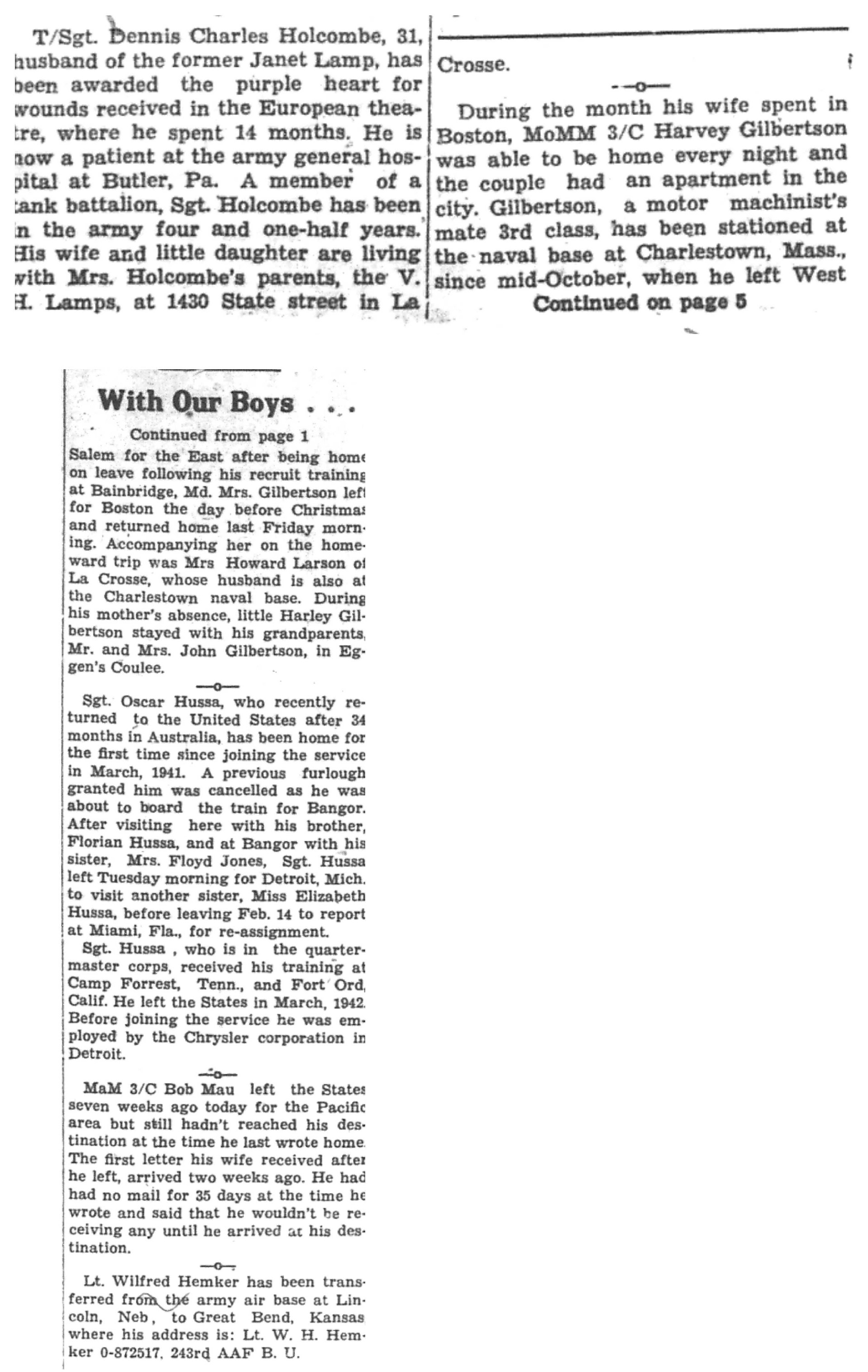 | 1945-2-2 | La Crosse Tribune p6 | |