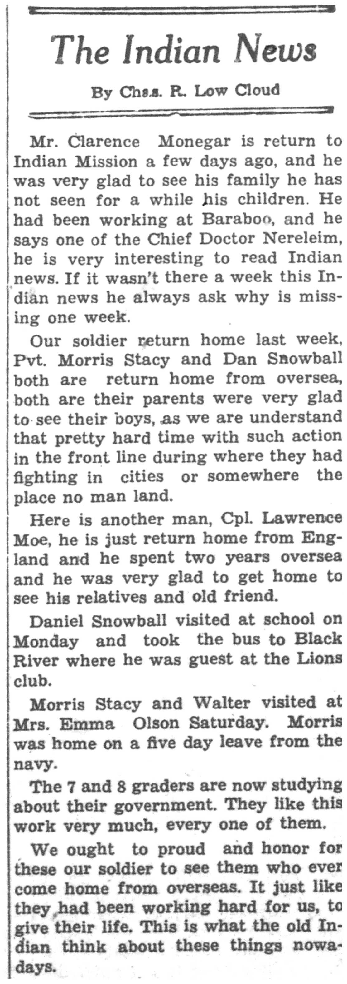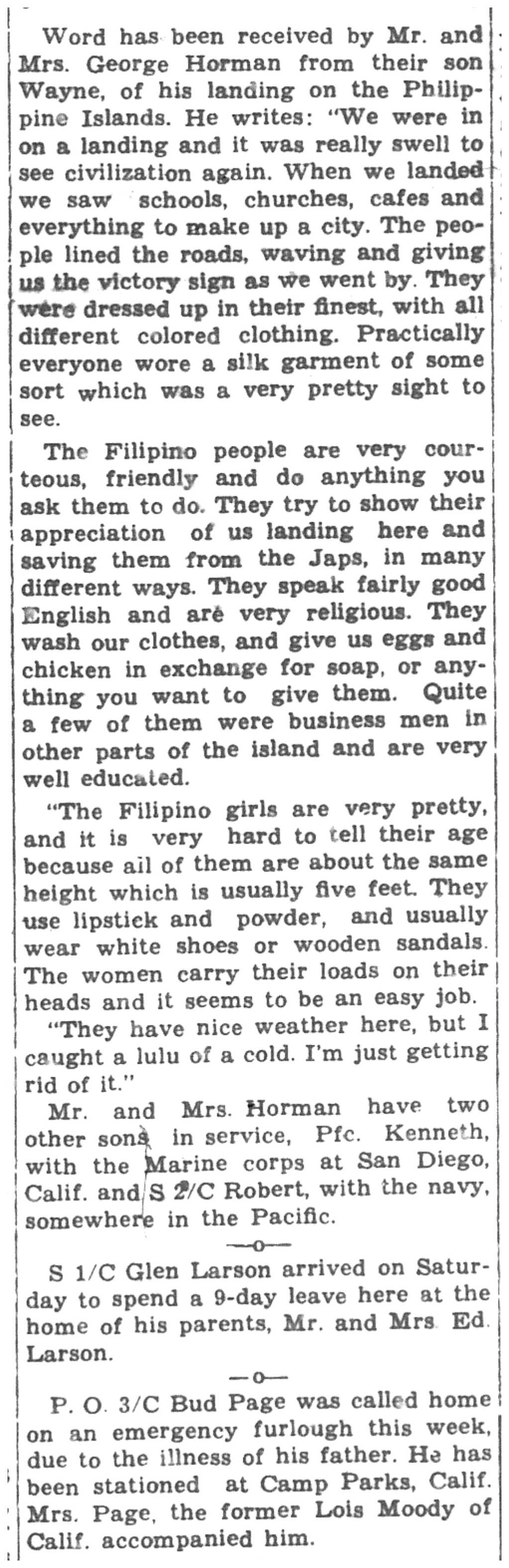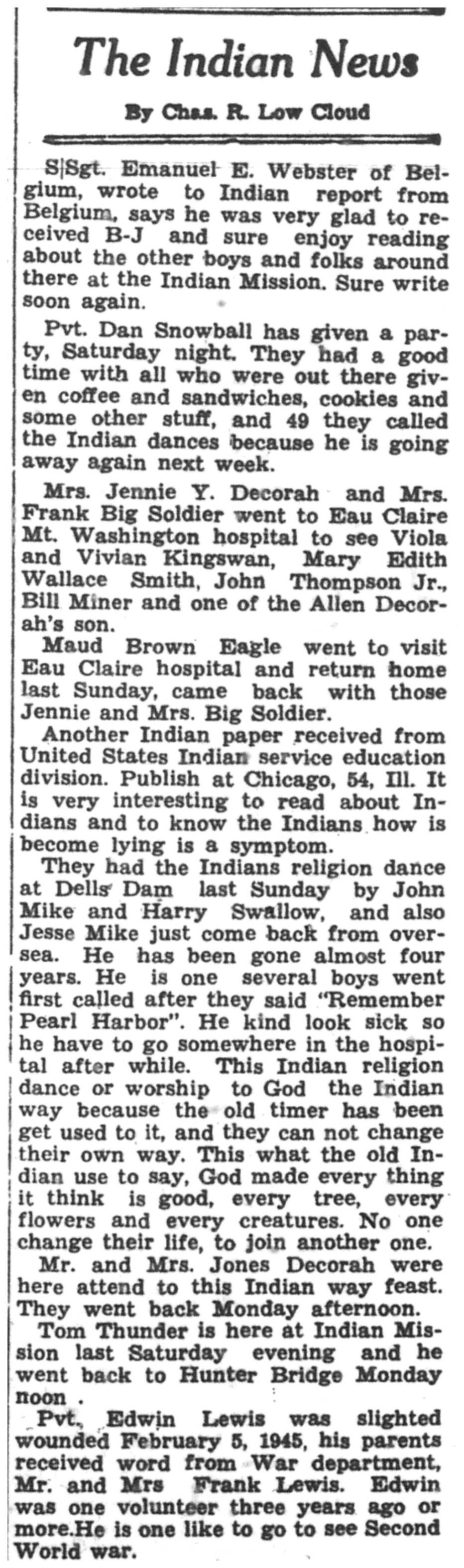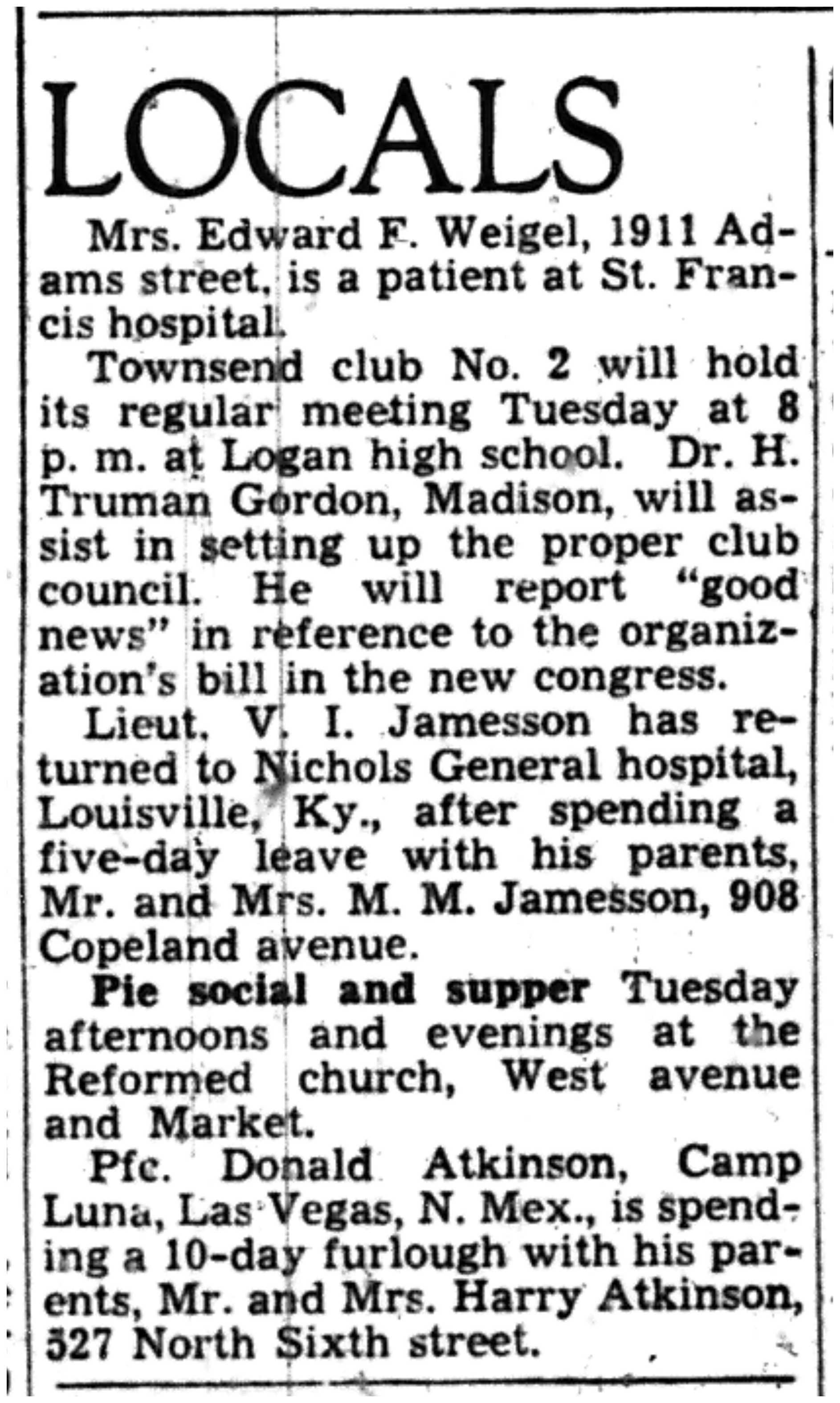 | 1945-2-8 | La Crosse Tribune p4 | |