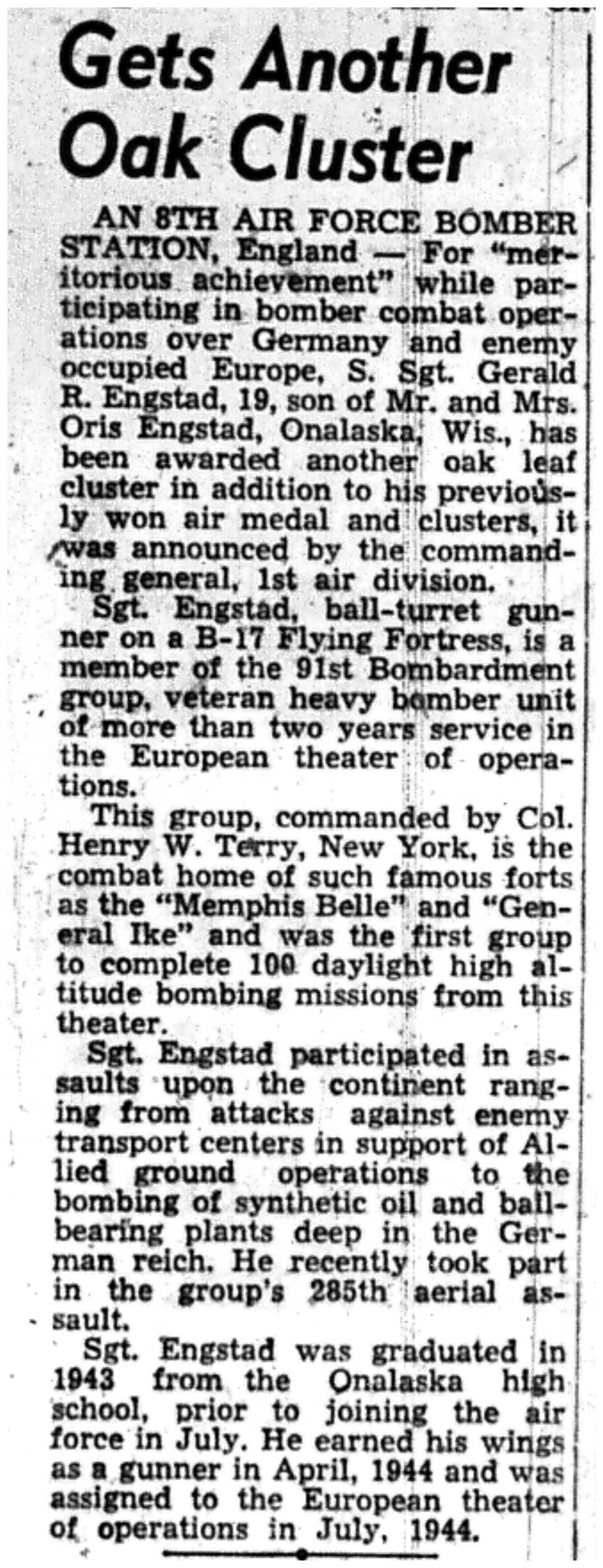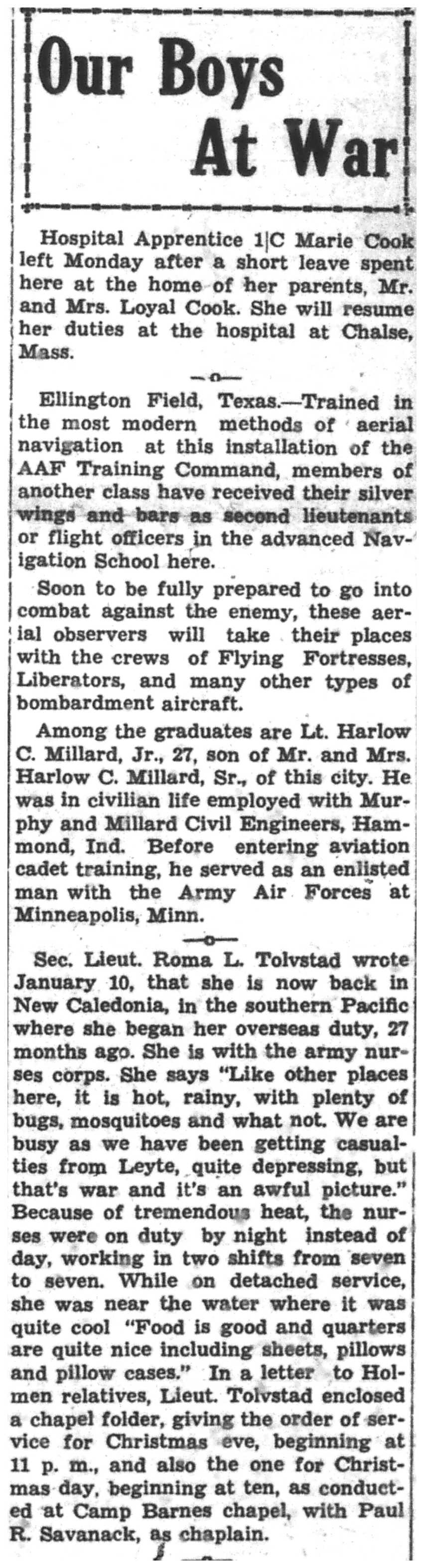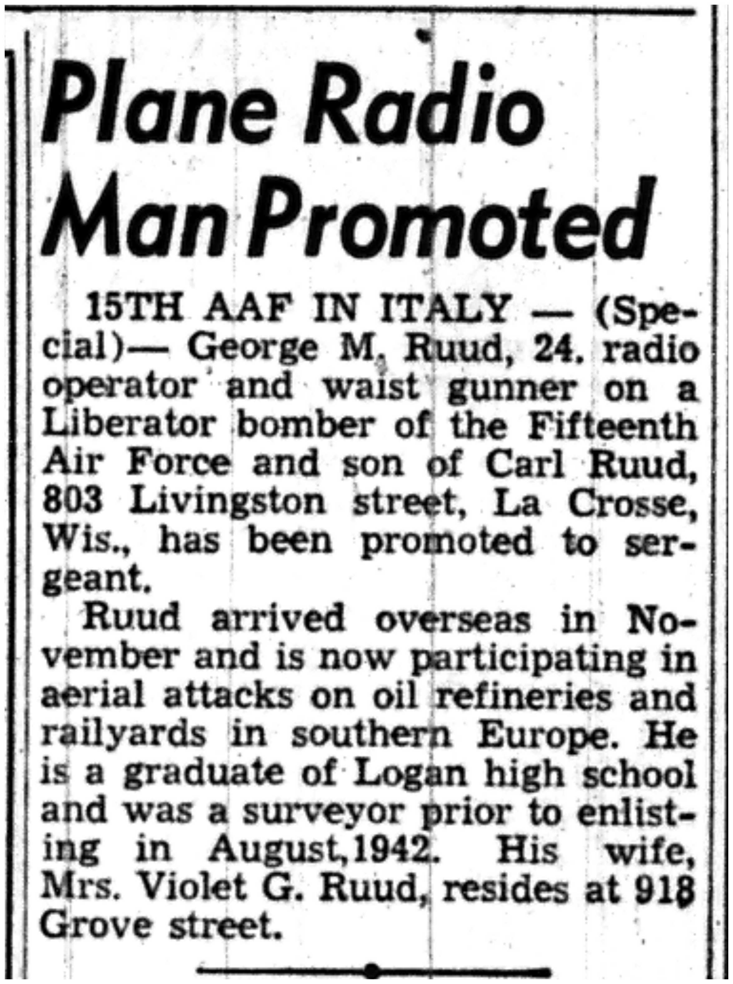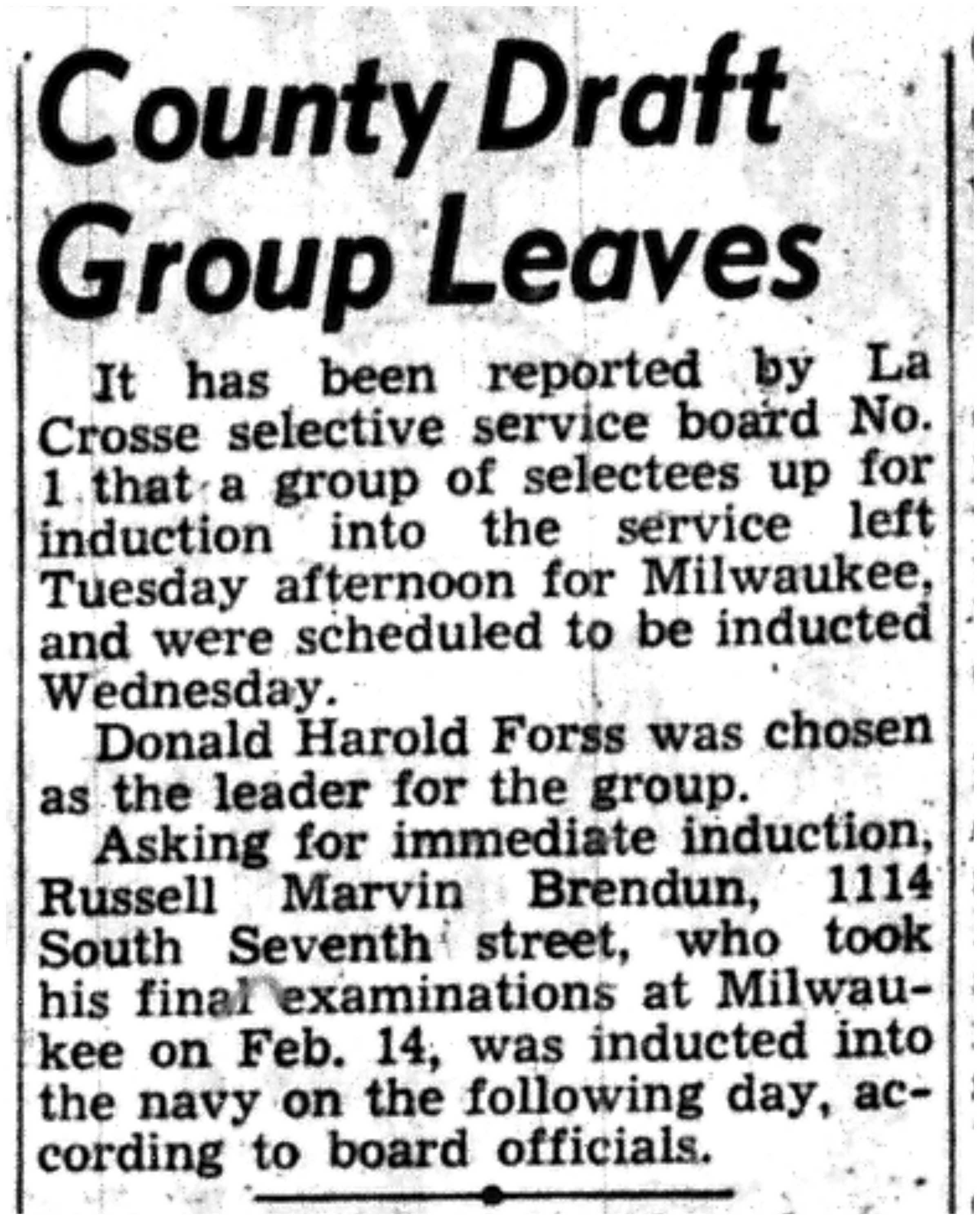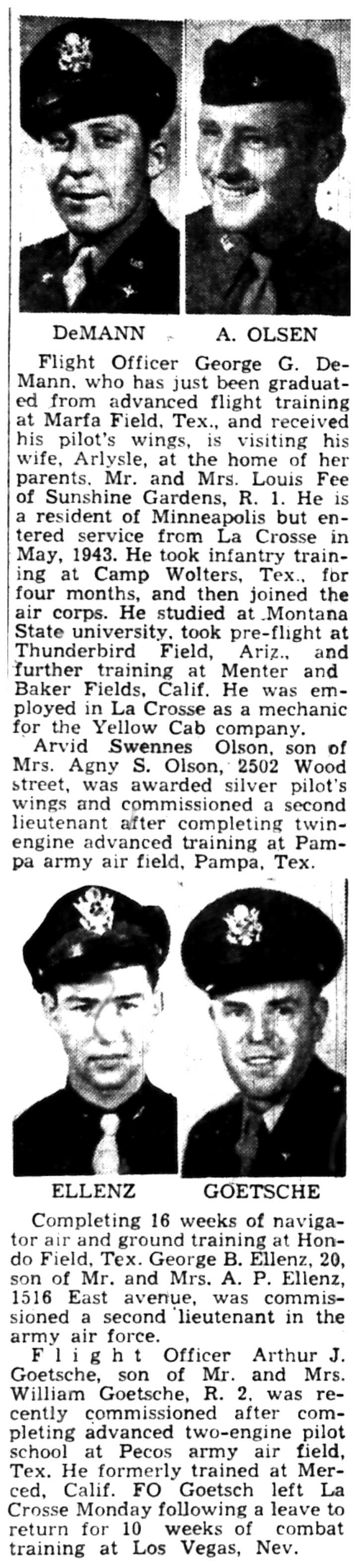 | 1945-2-2 | La Crosse Tribune p7 | |