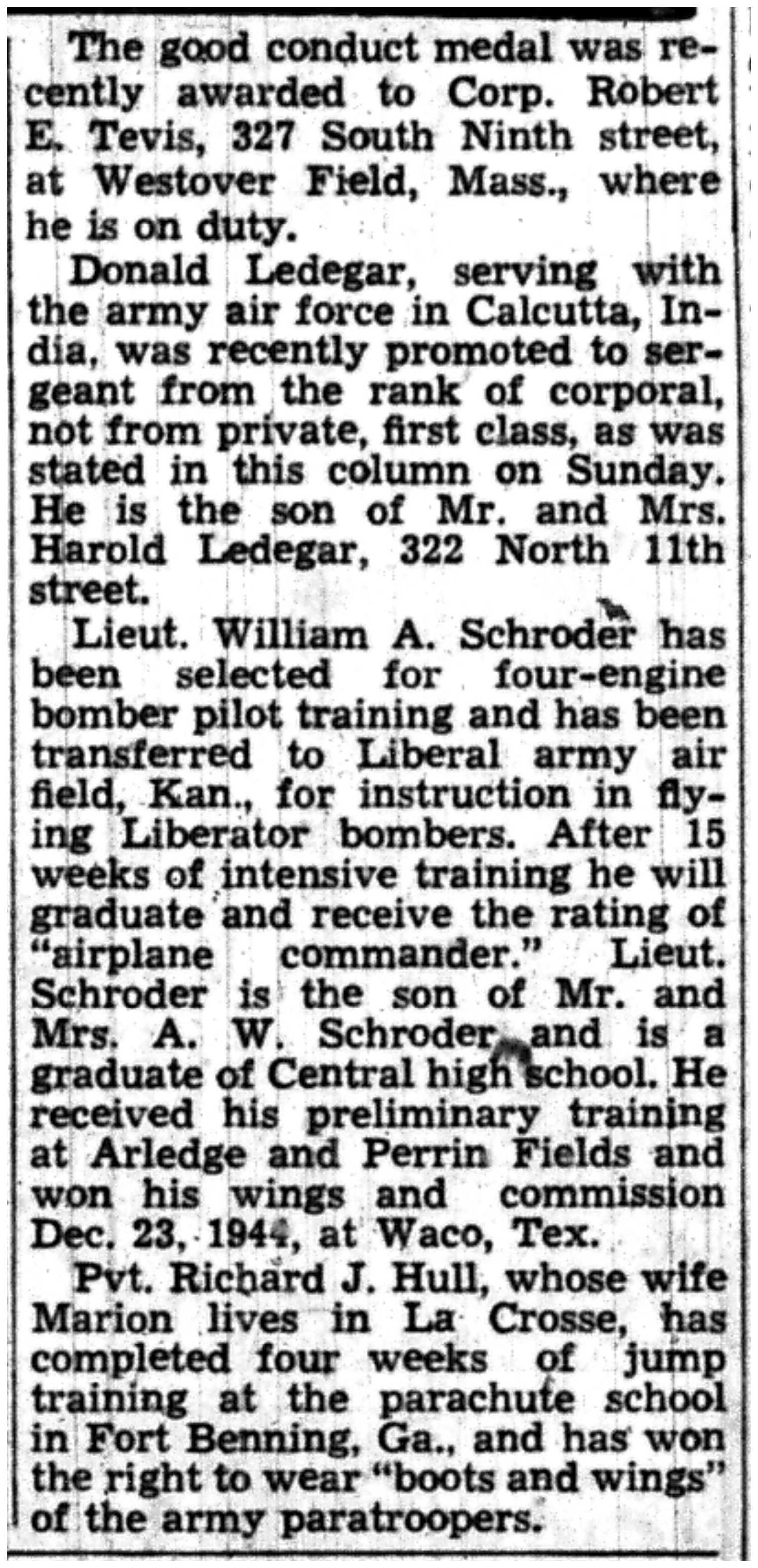 | 1945-2-28 | La Crosse Tribune p3 | |