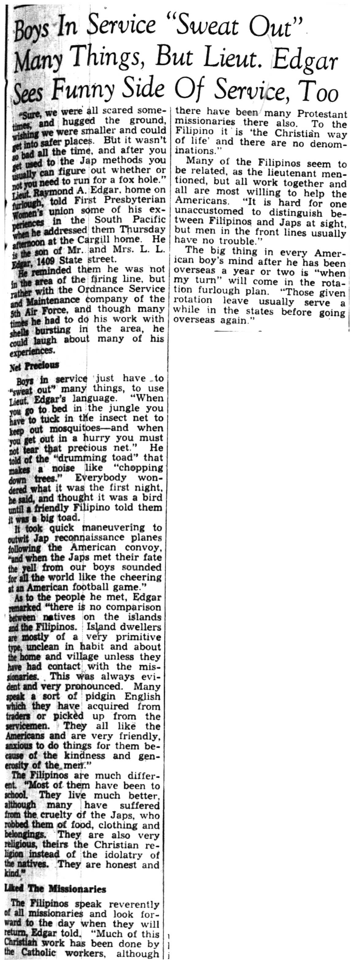 | 1945-2-8 | Non-Pareil Journal p5 |